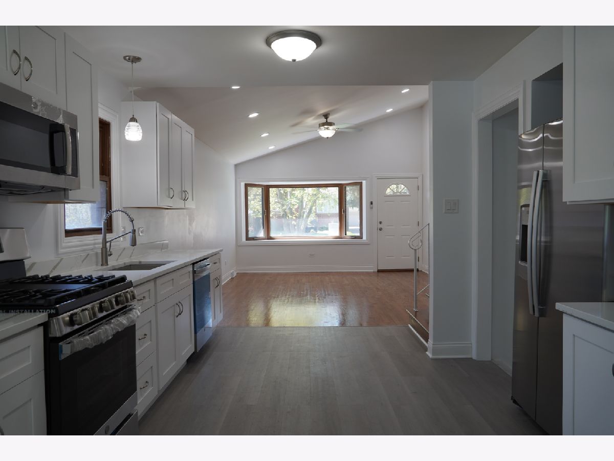 Beautiful revitalized and updated home with 3 bedrooms an 1.5 bathrooms Original oak hardwood floors on upper level and living room in addition to the vaulted ceilings in the living room. Kitchen is a site to see Quartz counter tops and stainless steel appliances . Large family room lower level and a large laundry room .There is a detached 2 car garage and side driveway.