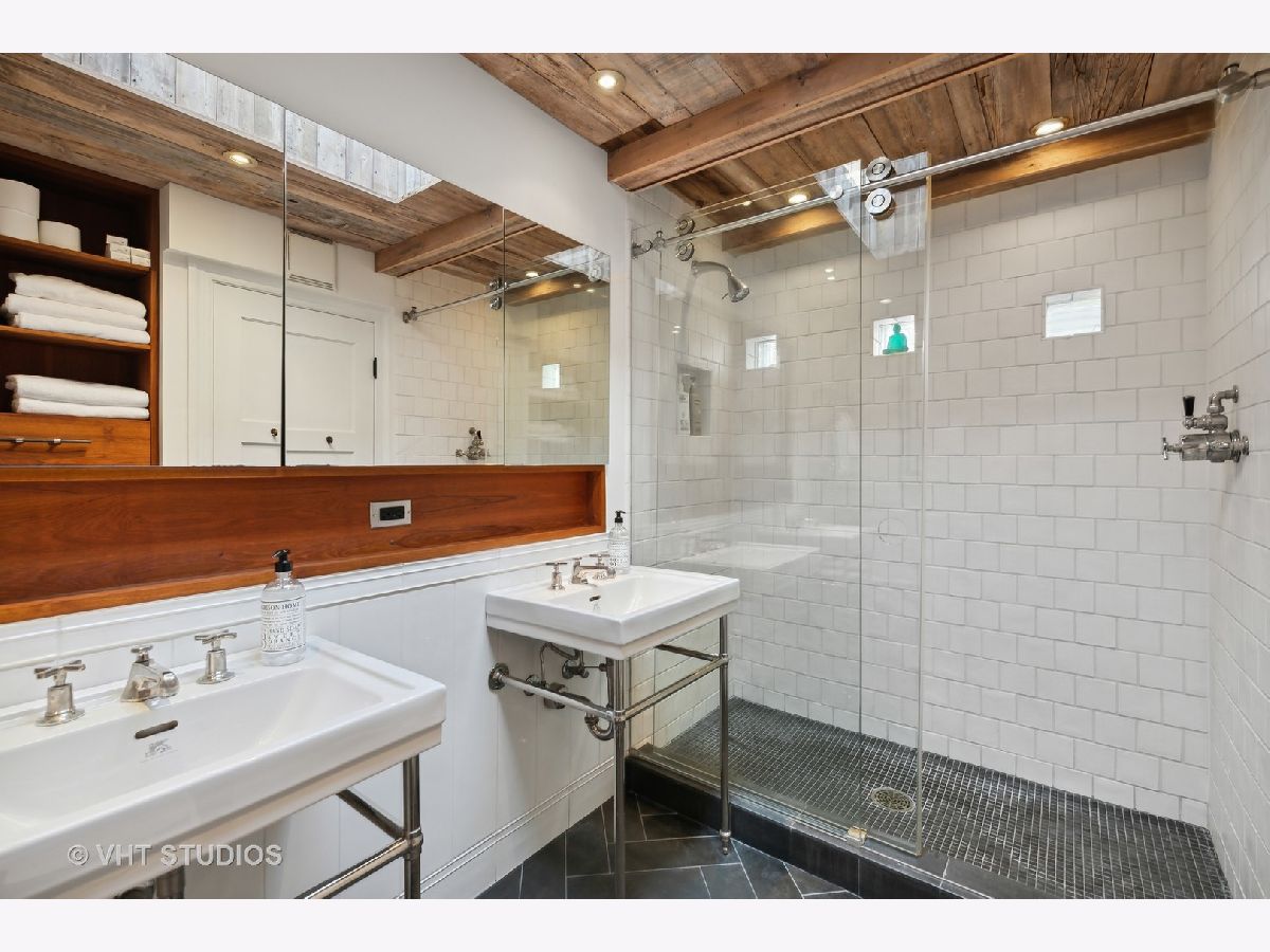 Tucked away in historic Old Town sits this one-of-a-kind home that dates back to 1903 when it was a two-story brick horse stable. This captivating home sits on an oversized 50 x 78 ft lot with an unbelievable side yard designed by the highly acclaimed landscape architect Hoerr Schaudt and photographed and published in Better Homes & Garden magazine. This south facing home with 3100 sq. ft, 17ft vaulted ceilings, exposed brick, wood clad ceilings is right out of Architectural Digest. Stunning and timeless De Giulio kitchen with 43" La Cornue stove and extra thick Calcutta Gold marble countertops with sliding marble backsplash for spice storage. The dining room features a custom Holly Hunt leather and fabric built-in banquette and a coffee & beverage bar with a Sub-Zero beverage drawer, built-in ice maker and a Miele coffee/espresso/cappuccino/latte maker! The living room offers custom shelves flanking the wood-burning fireplace and French doors that open to the beautiful yard. The spacious primary suite has a wood-burning fireplace, cedar clad walk-in closet and a gorgeous bathroom with Lefroy Brooks basins and plumbing fixtures, heated floor, heated towel rack, Robern mirrors and a rustic wood clad ceiling with skylight. The main level features a family room that opens to the yard and built-in bookshelves along with 2 spacious bedrooms and an attached heated garage that is used as an office but could be a 3rd garage spot. A separate 2 car garage is also included. Very rare offering in Old Town - come see why this home is currently featured in the 2023 HGTV Ultimate House Hunt Awards in the "Homes with History" category! Lincoln Elementary School district.
