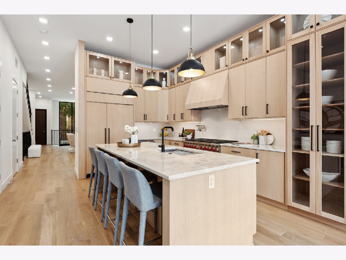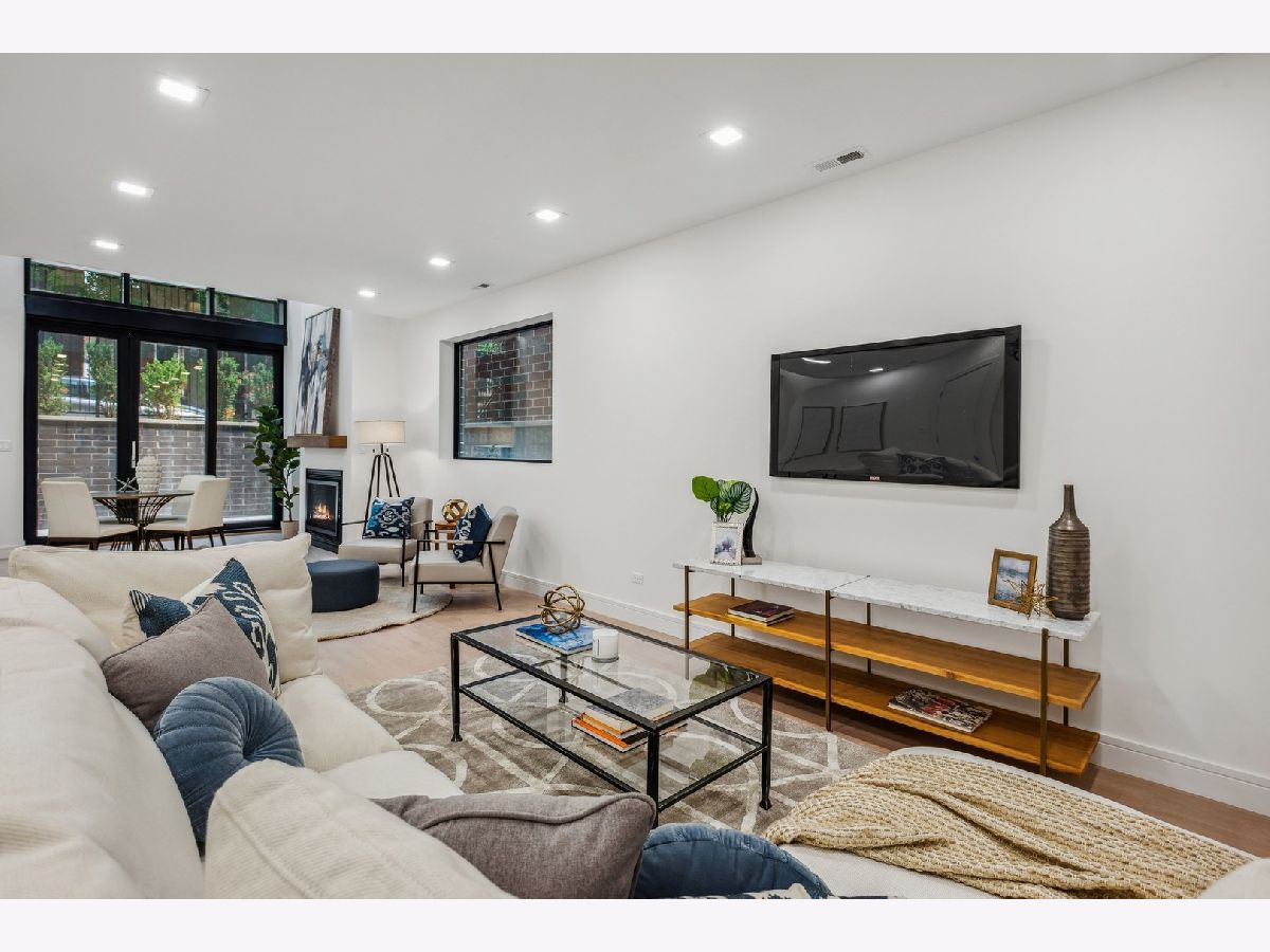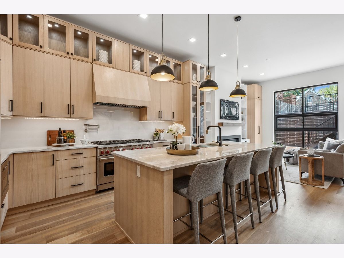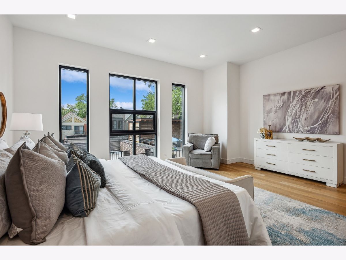 This masterfully executed contemporary, new construction 5-bedroom single-family home in the heart of Bucktown is a thing of beauty. The solid Atlas brick house with a 32' tall window makes for a statement from the street. Inside - abundant natural light and high ceilings (11' on main level) accentuate a floor plan that supports modern day living and elevated entertaining. Moving from the foyer into the home's expansive living/dining room, past a custom staircase and through to the open-concept kitchen and family room, it is apparent that only first-class finishes and fixtures were incorporated throughout: 6" white oak floors, solid oak doors, custom built-ins, integrated lighting, and more. The chef's kitchen features rift-sawn oak cabinetry, polished quartzite countertops, oversized island, 48" Sub-Zero, 48" Wolf range / double oven, integrated Wolf microwave, beverage refrigerator in bar, and a walk-in pantry. Upstairs a spacious primary bedroom with a large walk-in closet, opportunity for a wall of custom built-ins, and an en-suite spa bath with Barclay/Kohler/Brizo fixtures, a custom split vanity, heated floors, and a skylight. On the third floor, there's an additional space that can flex as an office, bar/kitchenette for a roof deck, or yoga. This home also comes complete with an above-grade lower level that features a large recreation room with a wet bar and fireplace, two guest bedrooms and another full bath. Additional amenities include two laundry areas, two gas-burning fireplaces, surplus storage throughout, and a two-car garage. Outdoor spaces include an oversized rear deck with IPE composite decking plus the deck above the garage, the deck on the rooftop, and a stone paver patio in front of the house just below the sidewalk. Design-forward and close to world-class dining and shopping in Wicker Park and Bucktown, 1722 N. Hermitage Ave. is uncompromising, single-family living at its finest.