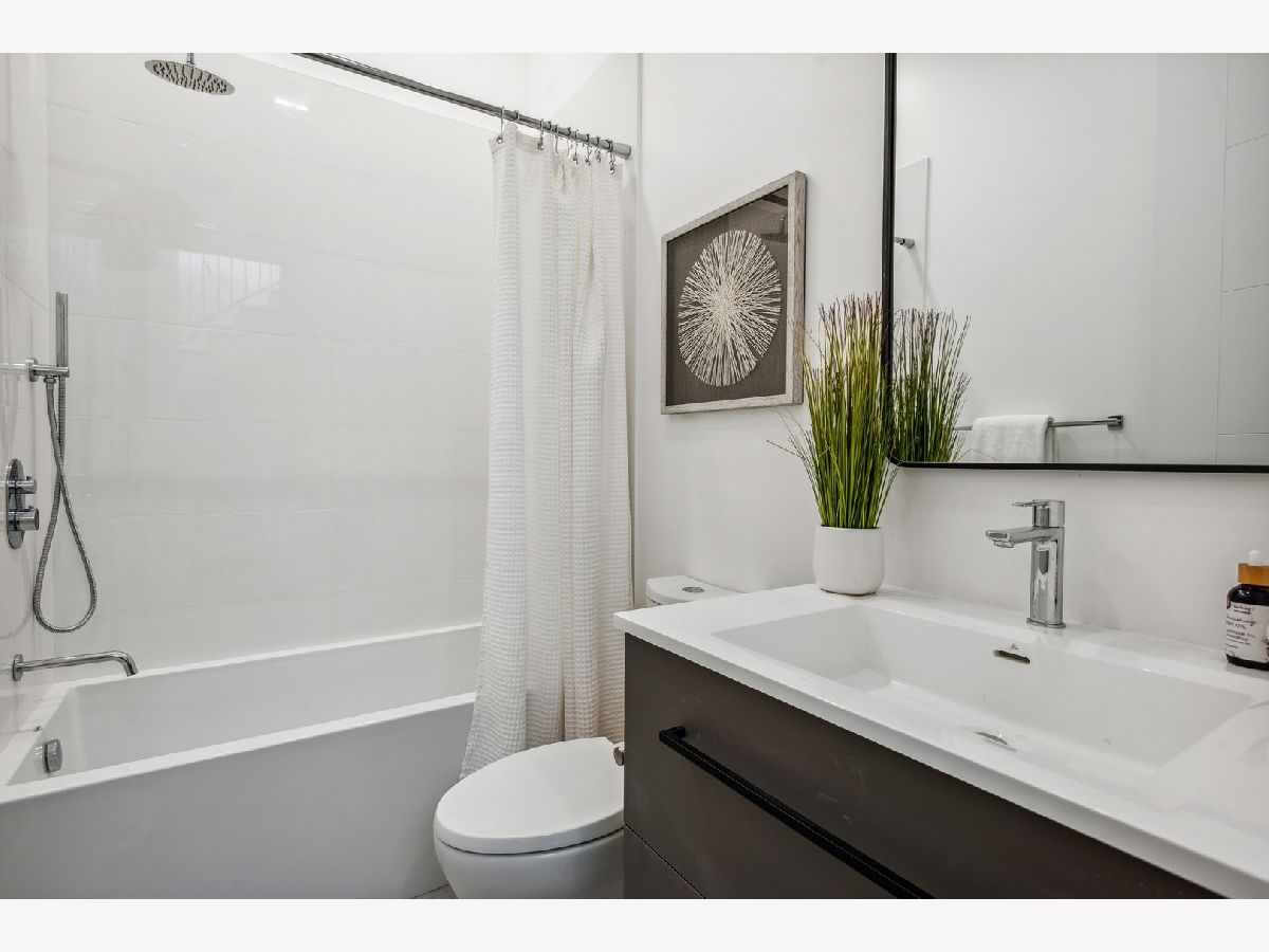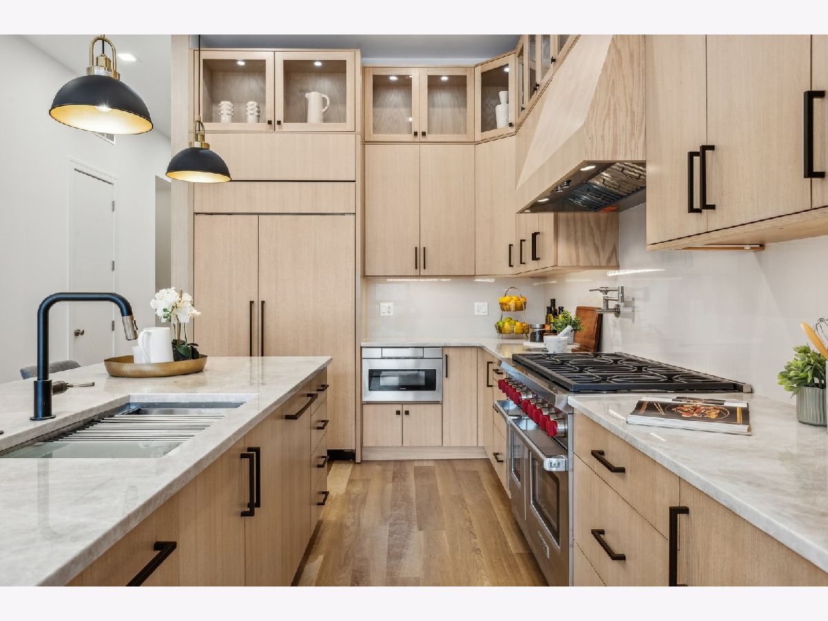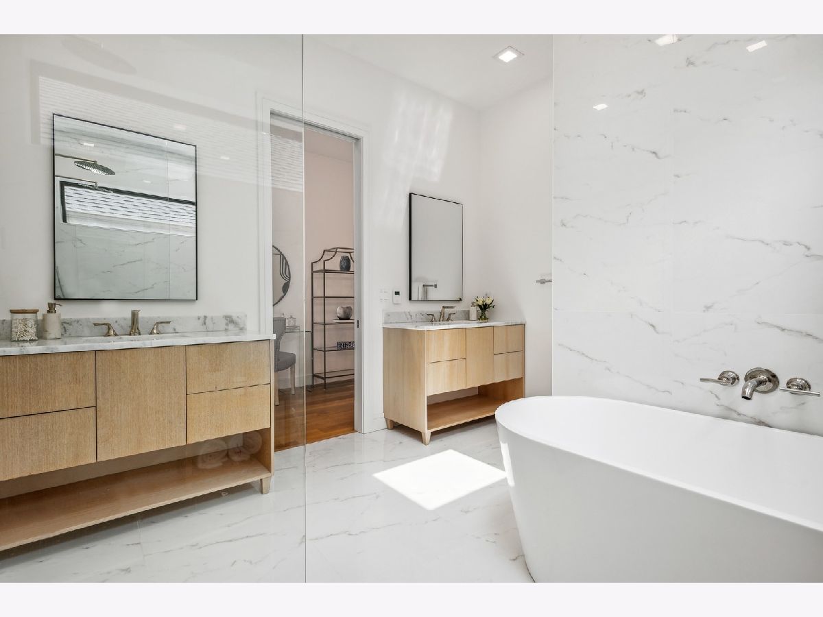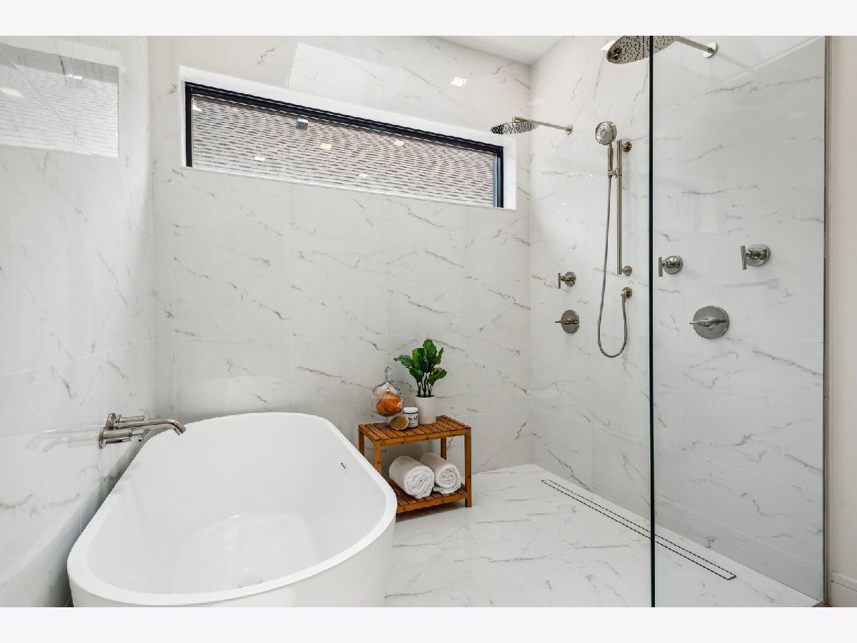 This masterfully executed contemporary, new construction 5-bedroom single-family home in the heart of Bucktown is a thing of beauty. The solid Atlas brick house with a 32' tall window makes for a statement from the street. Inside - abundant natural light and high ceilings (11' on main level) accentuate a floor plan that supports modern day living and elevated entertaining. Moving from the foyer into the home's expansive living/dining room, past a custom staircase and through to the open-concept kitchen and family room, it is apparent that only first-class finishes and fixtures were incorporated throughout: 6" white oak floors, solid oak doors, custom built-ins, integrated lighting, and more. The chef's kitchen features rift-sawn oak cabinetry, polished quartzite countertops, oversized island, 48" Sub-Zero, 48" Wolf range / double oven, integrated Wolf microwave, beverage refrigerator in bar, and a walk-in pantry. Upstairs a spacious primary bedroom with a large walk-in closet, opportunity for a wall of custom built-ins, and an en-suite spa bath with Barclay/Kohler/Brizo fixtures, a custom split vanity, heated floors, and a skylight. On the third floor, there's an additional space that can flex as an office, bar/kitchenette for a roof deck, or yoga. This home also comes complete with an above-grade lower level that features a large recreation room with a wet bar and fireplace, two guest bedrooms and another full bath. Additional amenities include two laundry areas, two gas-burning fireplaces, surplus storage throughout, and a two-car garage. Outdoor spaces include an oversized rear deck with IPE composite decking plus the deck above the garage, the deck on the rooftop, and a stone paver patio in front of the house just below the sidewalk. Design-forward and close to world-class dining and shopping in Wicker Park and Bucktown, 1722 N. Hermitage Ave. is uncompromising, single-family living at its finest.