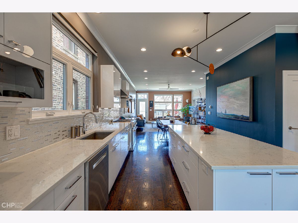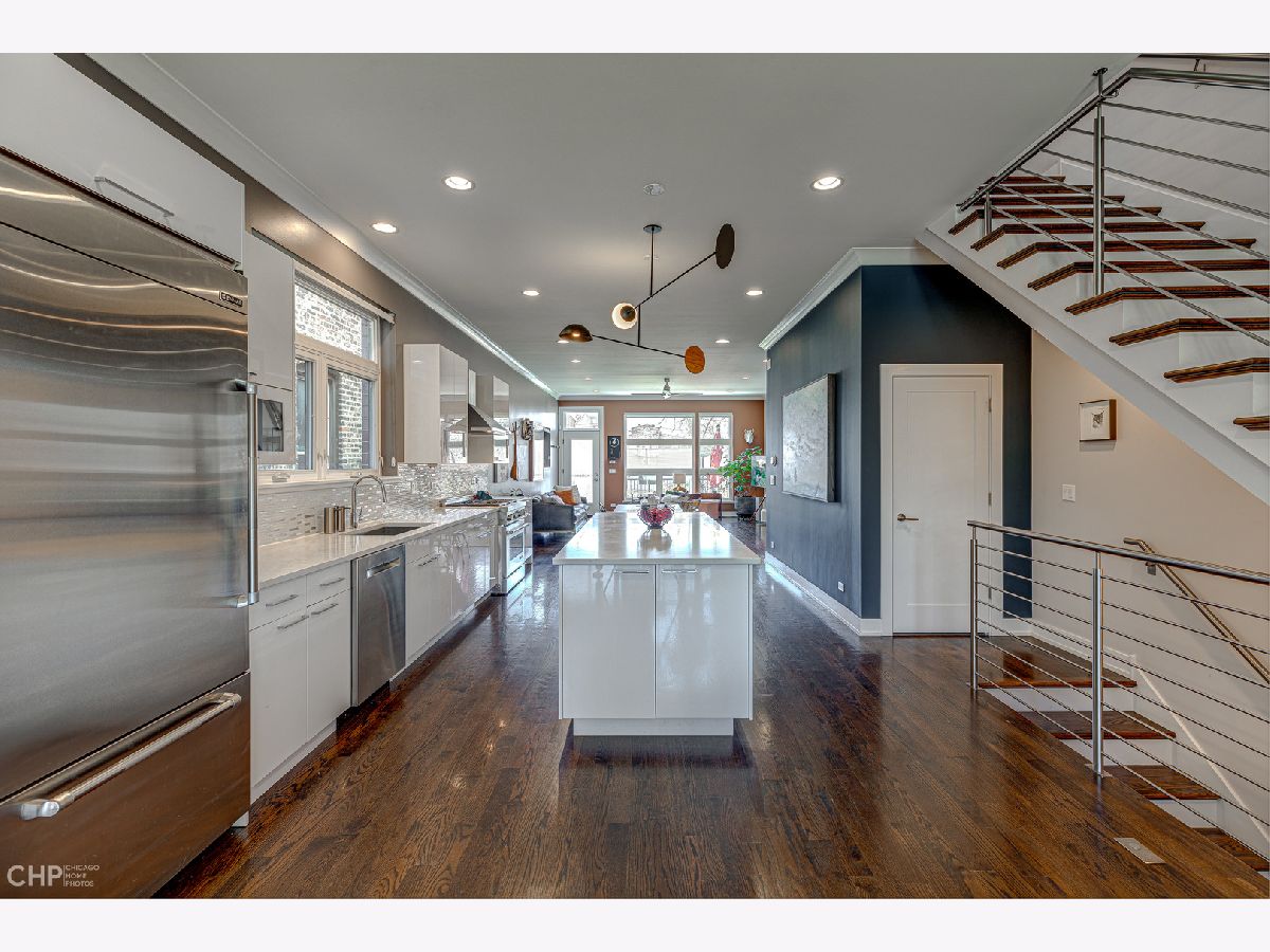Stunning newer construction (2017) 5 bedroom, 3.5 bath all brick home on an extra deep 177' lot. Flooded with natural light and high ceilings, the open concept main level is perfect for entertaining. The main level offers walnut floors and a stainless steel surround gas fireplace. The designer kitchen has a large quartz island with white cabinetry, JennAir stainless steel appliances, tons of storage and custom Andrew Neyer lighting. The extra deep great room off the kitchen leads to a large Trex deck and gardener's dream backyard. Upper level offers an expansive primary bedroom finished with an Italian Carrara marble shower, double vanity and organized closets. Upper level also includes 2 additional bedrooms, full bath and laundry hook-ups for a second laundry room. Lower-level features double story windows overlooking a large family room, 2 well-sized bedrooms serviced by a full bath, spacious laundry room and lots of additional storage. Other features include HUE smart lighting system, 220 EV line to 2 car garage, Ecobee thermostats, Nest Protect smoke alarms and hard-wired security system. Situated on a quiet, tree-lined street, half a block from the 606 Bloomingdale Trail and three blocks from Humboldt Park, and close to so many local restaurants & hotspots including Giant, Scofflaw, Parson's and Kimball Arts Center! Multiple offers received - BEST AND FINAL DEADLINE SUNDAY AT 6 PM.