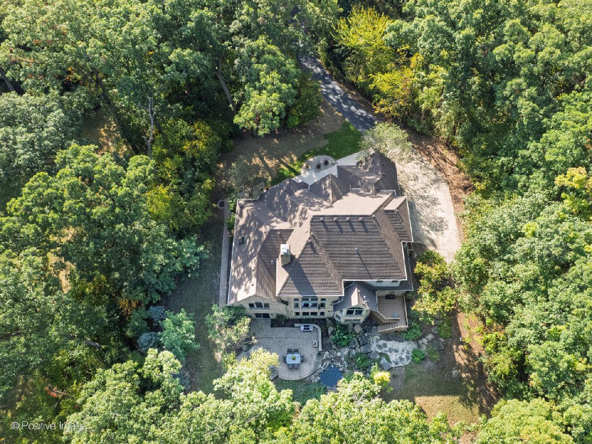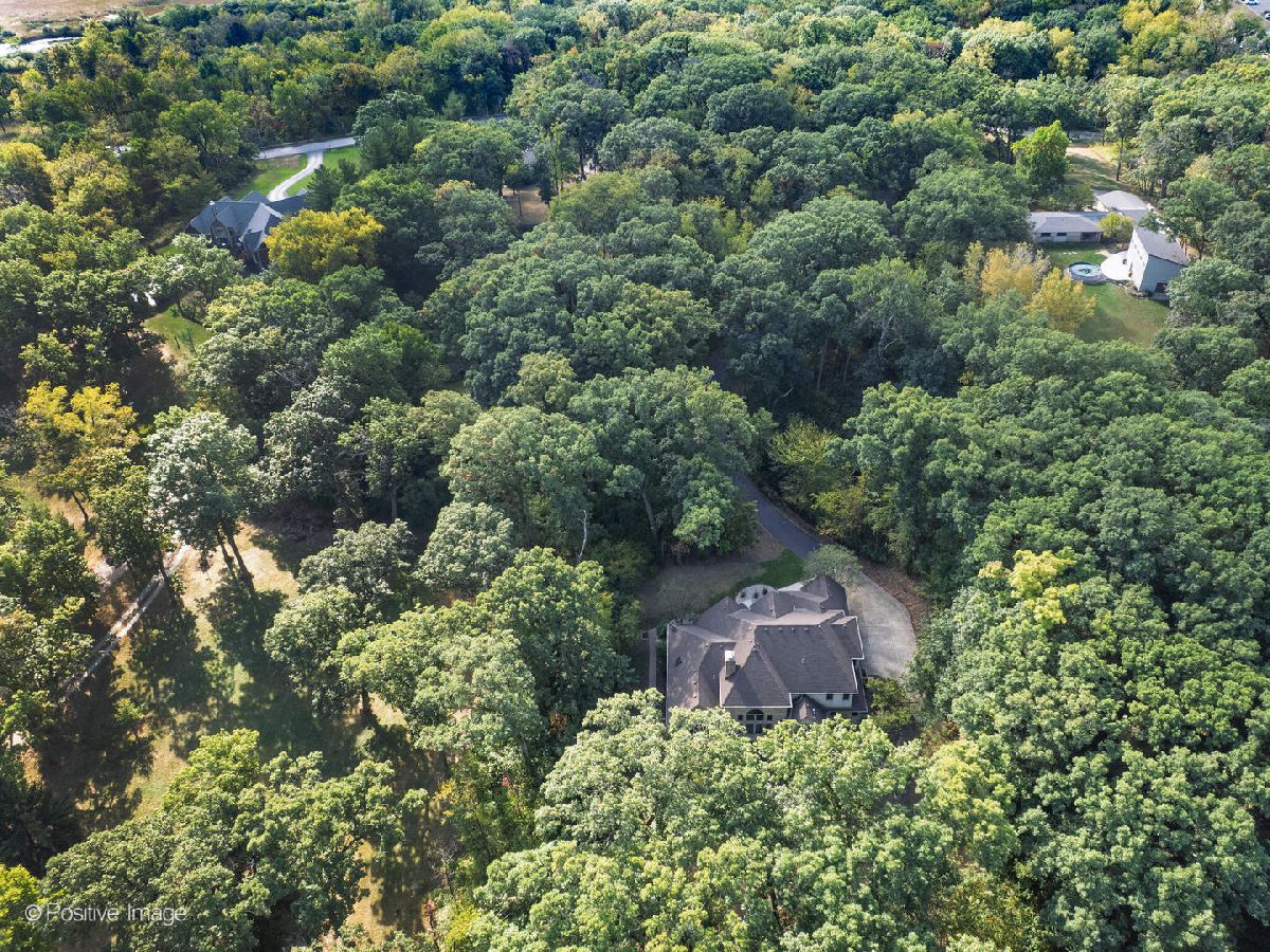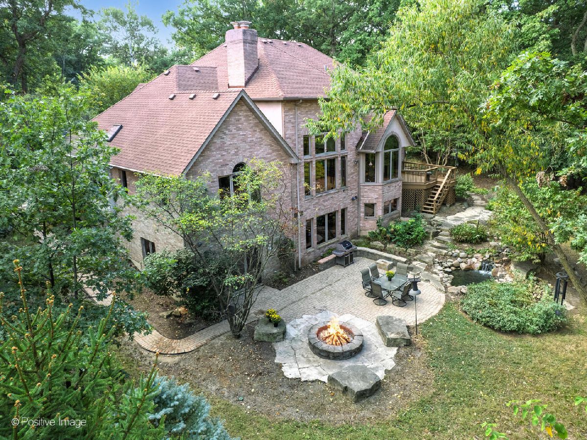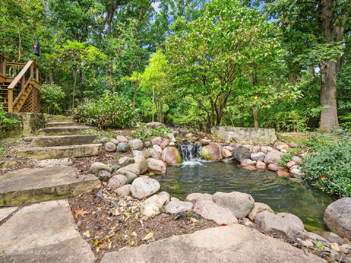 Ultimate privacy and seclusion define this exceptional custom residence, gracefully set amid approximately 2.6 acres of majestic, wooded grounds. Perfect for multigenerational living, this meticulously maintained 4 Bedroom, 3.5 bath home radiates warmth and timeless elegance throughout. A welcoming two-story foyer sets the tone, leading to a formal dining room ideal for refined entertaining and an office with a sunny front window. The dramatic great room features soaring ceilings, a dramatic two story fireplace and a striking wall of windows that frame serene, picturesque views of the surrounding landscape. The spacious first-floor primary suite offers a private retreat, complete with a luxurious primary bath. A large eat-in kitchen with generous pantry and first floor laundry flow beautifully for easy entertaining. Generously sized bedrooms feature ample closet space. The finished walk-out lower level expands the living space with a second kitchen, full bath, bar area, and versatile rooms ideal for recreation, fitness, storage, or gaming. A large movie room could be easily converted into a 5th bedroom for additional family members. Tucked away at the end of a private drive, far from the main road, the setting is truly priceless. The ultra-private backyard showcases a tranquil koi pond and expansive patio-perfect for quiet relaxation or elegant outdoor entertaining. Three car side load garage and close to expressways, and downtown Lemont. Thoughtfully designed and well built, this home is truly special. Many new updates.