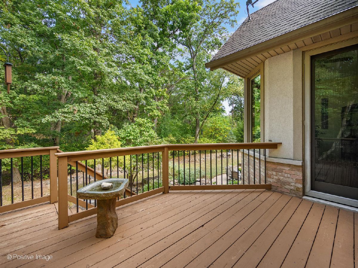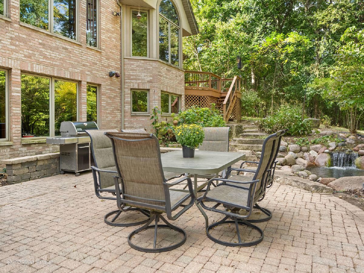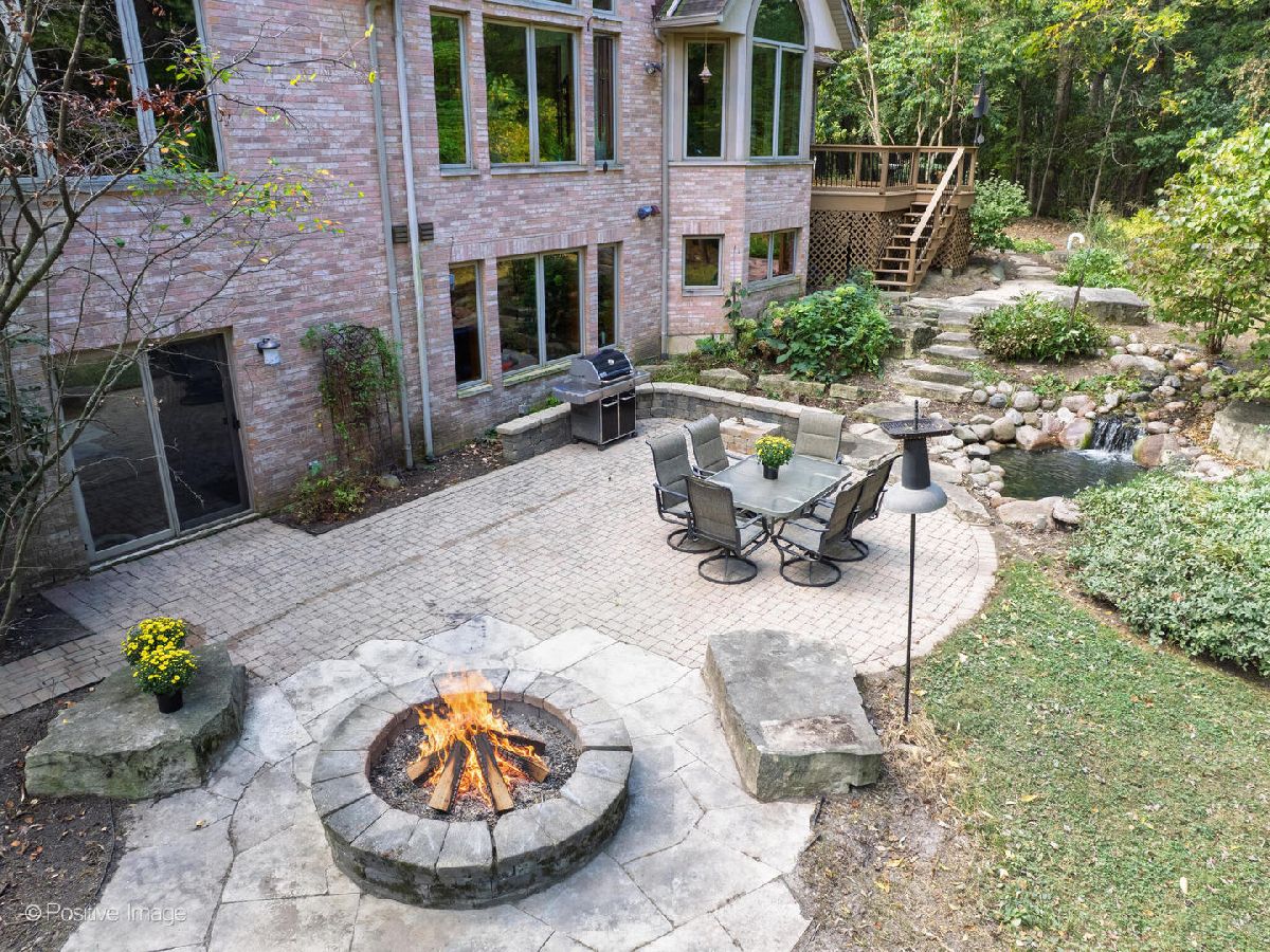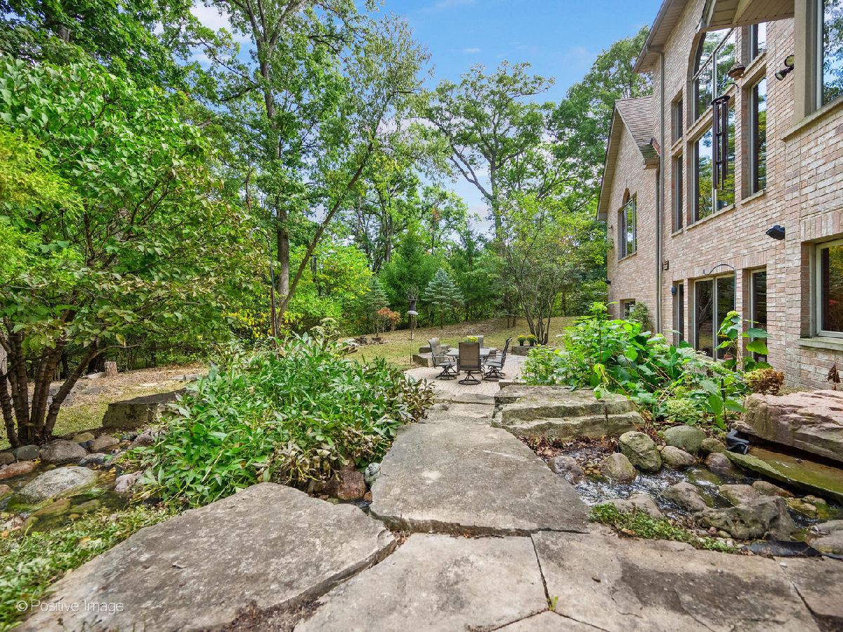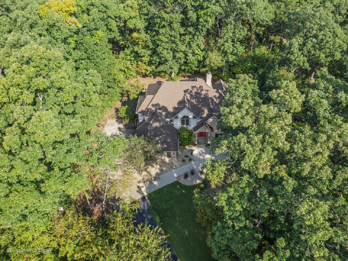 Ultimate privacy and seclusion define this exceptional custom residence, gracefully set amid approximately 2.6 acres of majestic, wooded grounds. Perfect for multigenerational living, this meticulously maintained 4 Bedroom, 3.5 bath home radiates warmth and timeless elegance throughout. A welcoming two-story foyer sets the tone, leading to a formal dining room ideal for refined entertaining and an office with a sunny front window. The dramatic great room features soaring ceilings, a dramatic two story fireplace and a striking wall of windows that frame serene, picturesque views of the surrounding landscape. The spacious first-floor primary suite offers a private retreat, complete with a luxurious primary bath. A large eat-in kitchen with generous pantry and first floor laundry flow beautifully for easy entertaining. Generously sized bedrooms feature ample closet space. The finished walk-out lower level expands the living space with a second kitchen, full bath, bar area, and versatile rooms ideal for recreation, fitness, storage, or gaming. A large movie room could be easily converted into a 5th bedroom for additional family members. Tucked away at the end of a private drive, far from the main road, the setting is truly priceless. The ultra-private backyard showcases a tranquil koi pond and expansive patio-perfect for quiet relaxation or elegant outdoor entertaining. Three car side load garage and close to expressways, and downtown Lemont. Thoughtfully designed and well built, this home is truly special. Many new updates.