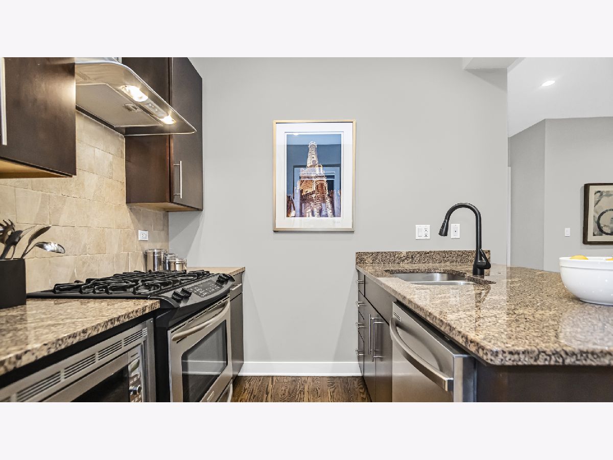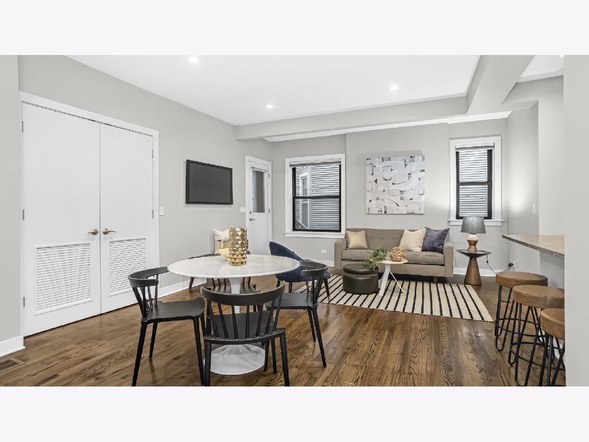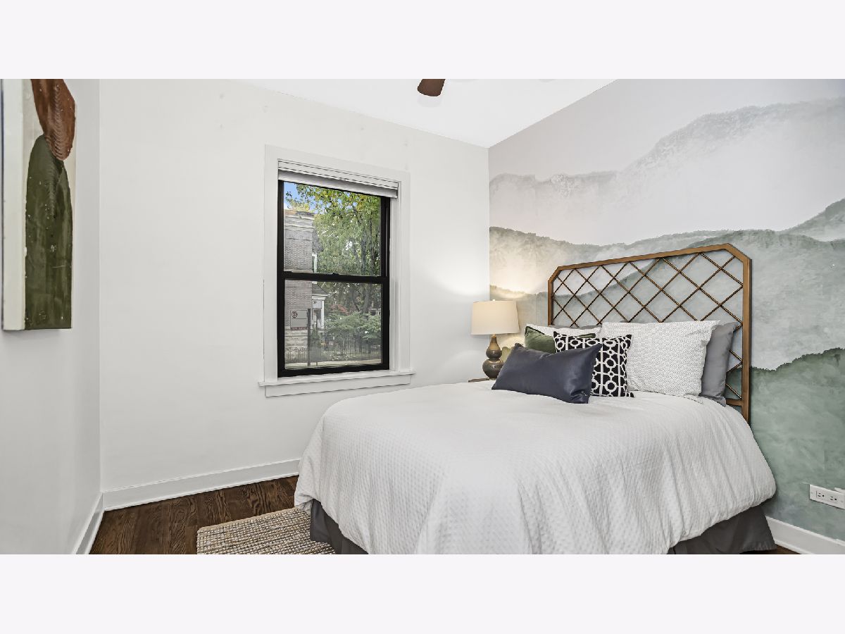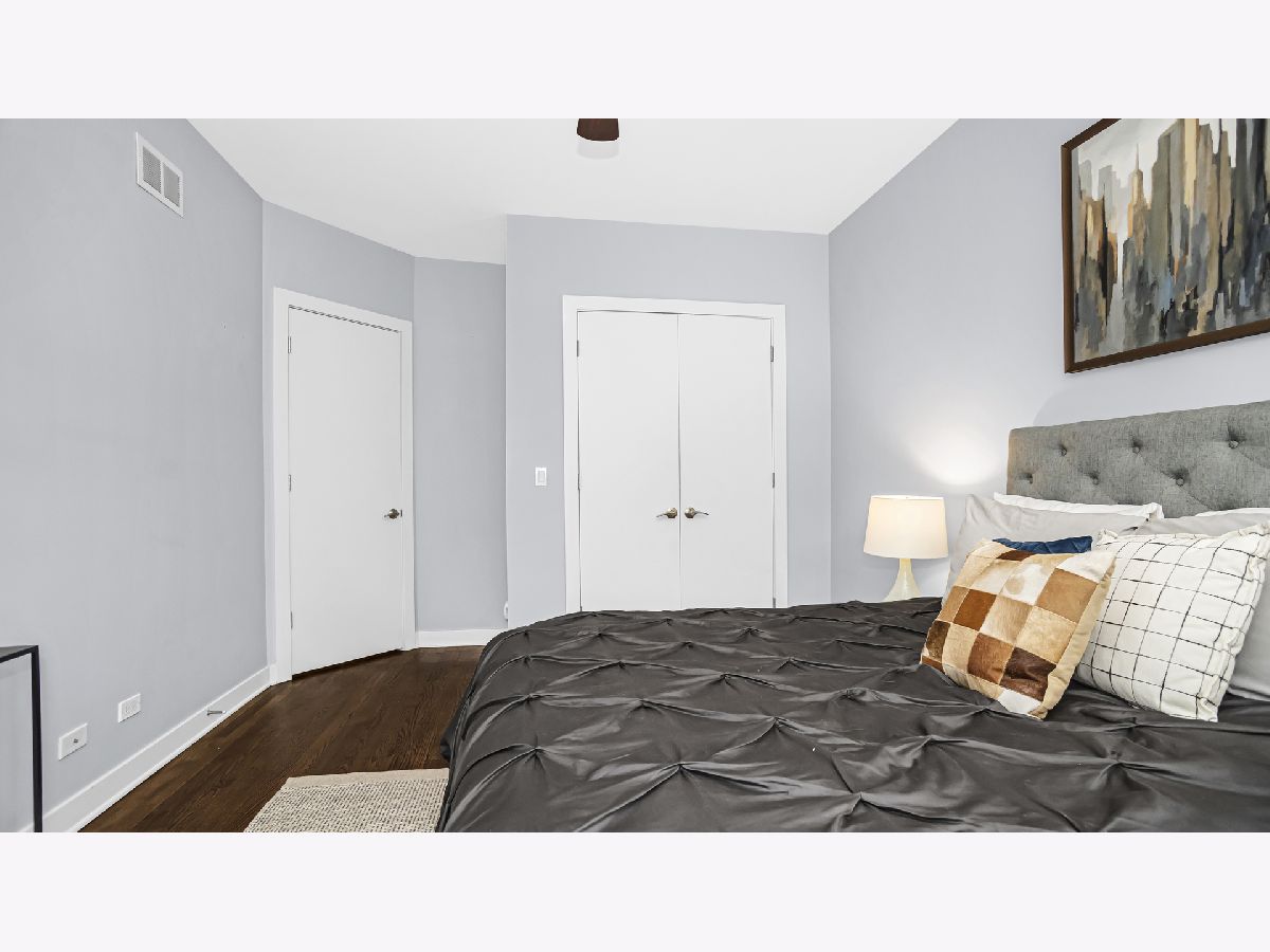 Cozy and well planned 2 bedrooms, 1 bath unit with convenient location close to restaurants, bars, coffee shops and the Brown "L". Walk in and be greeted by an open layout perfect for entertaining and living. Beautiful dark stained hardwood floors and high ceilings thoughout. The kitchen features chocolate-colored cabinets, stainless steel appliances and granite countertops with a practical breakfast bar. Large primary bedroom with space for a king-sized bed. Both bedrooms have ample storage with an organized closet. The bathroom offers jacuzzi tub and quartz countertops. Outside area perfect for all your barbecue needs or morning coffee. Enjoy in unit washer and dryer, private approx. 10x10 storage unit and custom window treatment. This location is unbeatable with walking distance to Southport Corridor, Roscoe Village, North Center, Trader joe's and Brown "L". Easy street parking. Welcome Home!