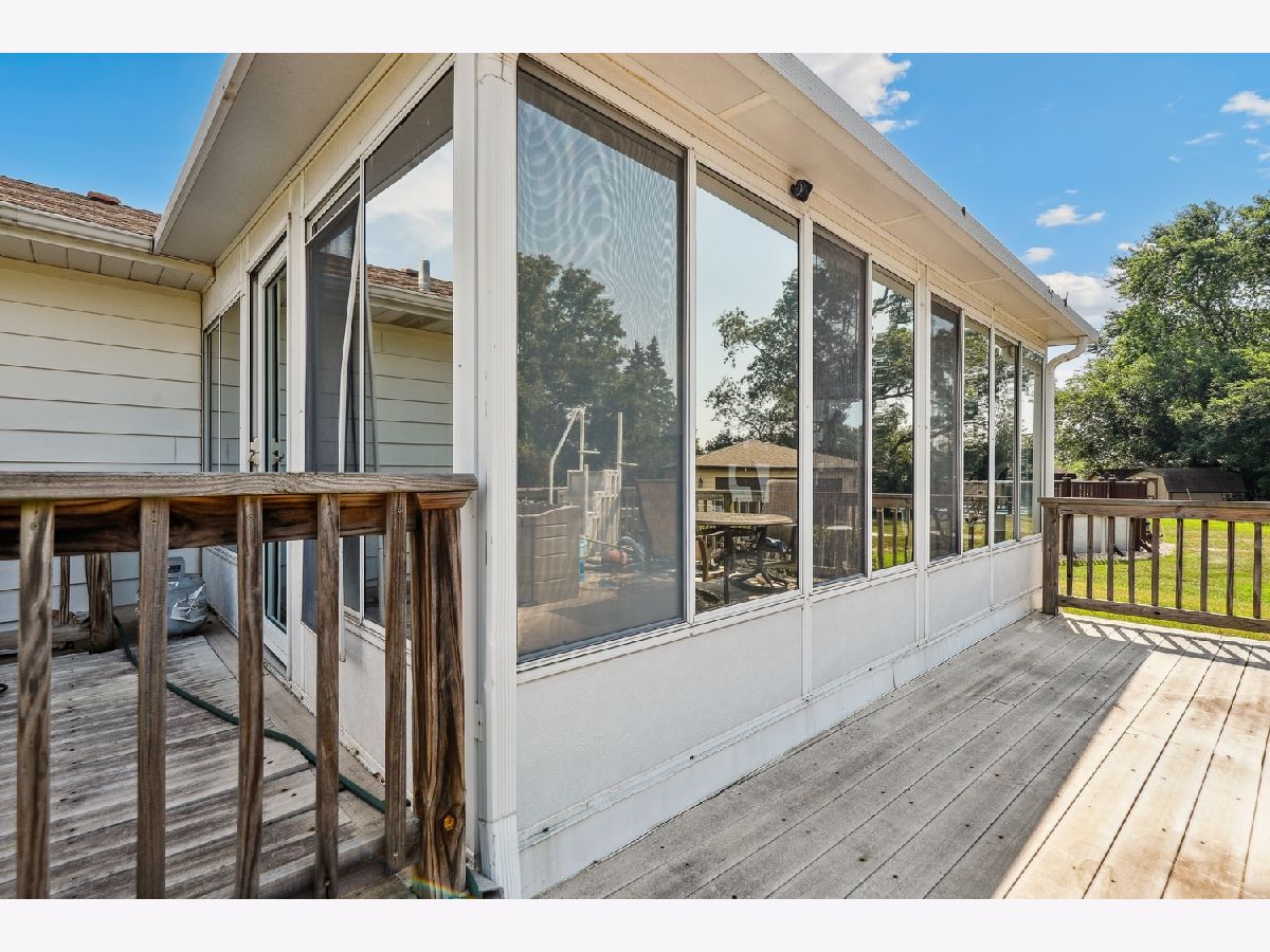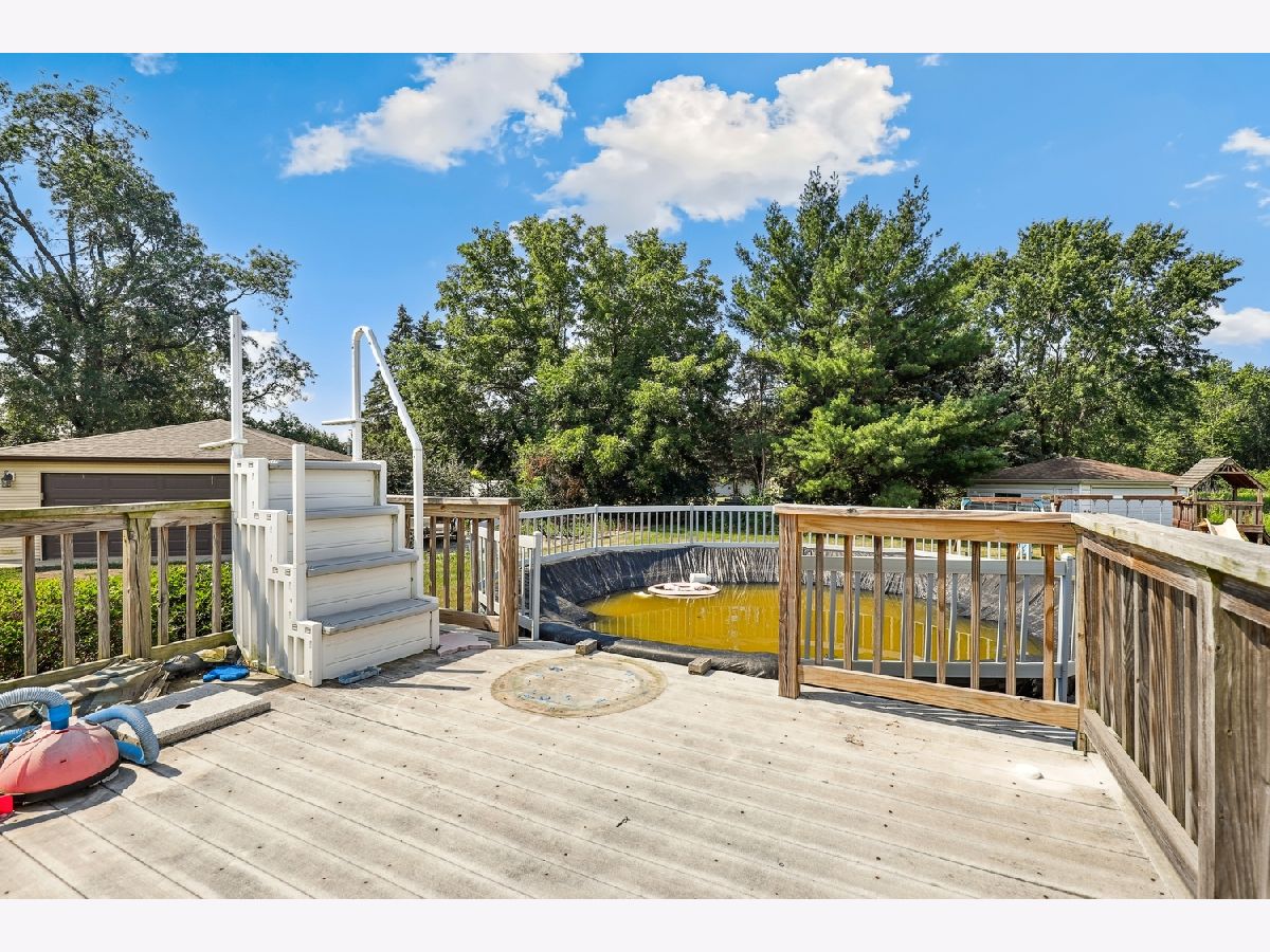 Discover the potential in this 3-bedroom, 3-bathroom ranch home with a full basement, nestled in a quiet cul-de-sac and located in the highly desirable Lincoln-Way West High School district. Step inside to find a large living room, a separate formal dining room, and a fully updated kitchen featuring luxury vinyl plank flooring, new cabinets, granite countertops, and a stylish tile backsplash. The home offers a split floor plan, with two generously sized bedrooms and a full hall bathroom on one side, and a private primary suite with its own full bath and LVP flooring on the other. Enjoy the additional living space in the bright 3-seasons room, complete with an electric heater-perfect for relaxing or entertaining. The partially finished basement offers a full bathroom, a flex room, a recreation area, and a large storage space. Please note: cosmetic repairs are needed due to a sump pump failure approximately 10 years ago. The issue was fully remediated at the time, but finishing work was not completed. Outside, the home sits on an expansive lot with a maintenance-free deck, an above-ground pool, and a large storage shed equivalent in size to a 2-car garage-ideal for extra storage or hobby space. This is an AS-IS estate sale, offering a fantastic opportunity to personalize and add value in a sought-after location. Schedule your showing today; this one won't last long!