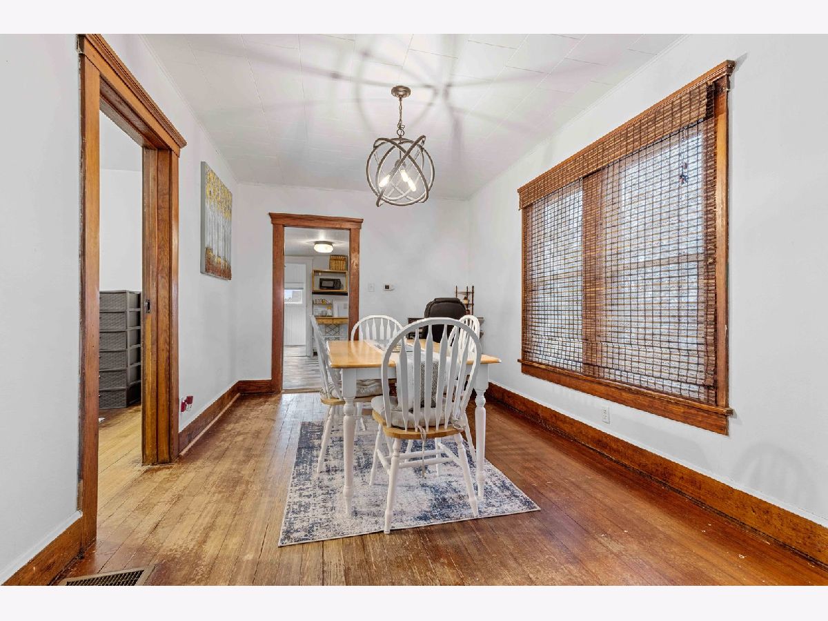 Charming 2-bedroom bungalow with a screened-in front porch, showcasing original hardwood floors and woodwork throughout. Convenient main-floor laundry and a formal dining room add to the appeal. The spacious living room leads to a large deck with views of the fenced backyard. The well-appointed kitchen features 2-tone cabinetry and a stylish subway tile backsplash. One bedroom is situated on the main floor for easy accessibility, while the second bedroom on the upper level offers privacy. Outside, two detached garages-a 2-car and an additional 1-car-provide ample storage. A perfect blend of vintage charm and modern amenities in a cozy home.
