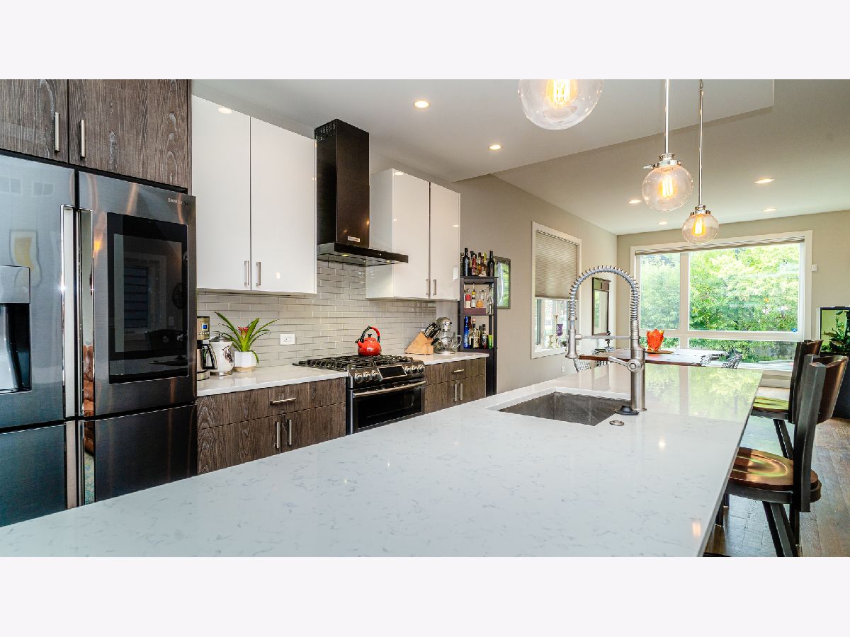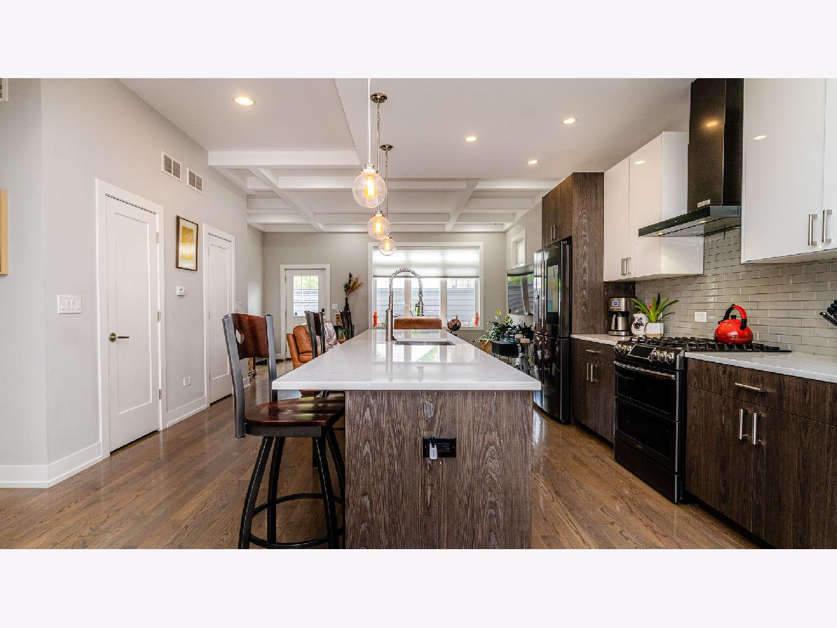 Don't miss your opportunity to live in this like-brand new construction in desirable East Pilsen! Enjoy living in the perfect location, settled between the bustling shops and restaurants on 18th street as well as the serenity of Chinatown's Ping Tom park. This 2-story home with contemporary design features include: open floor plan on the 1st floor with oversized windows front and back, motorized blinds, two tone euro-style close-soft cabinets in kitchen, Carrera quartz countertops, black stainless steel smart appliance package, extra-long island, 10' ceiling on main floor, fully finished basement with 4th bedroom, full bath, and REC room, with separate exterior access perfect for relatable living. Dual systems of heating and air. Fully fenced yard with modern farmhouse style gate. Full 2-car garage with option to create private outdoor living area on roof. Too many great features to list. Truly a MUST SEE!