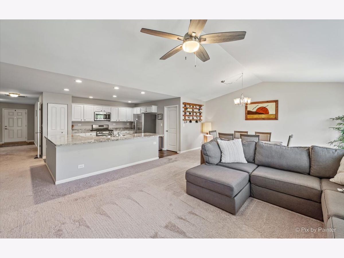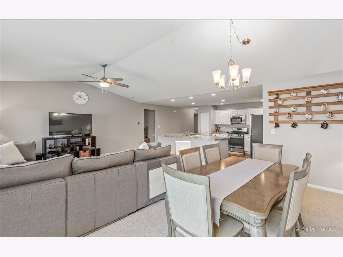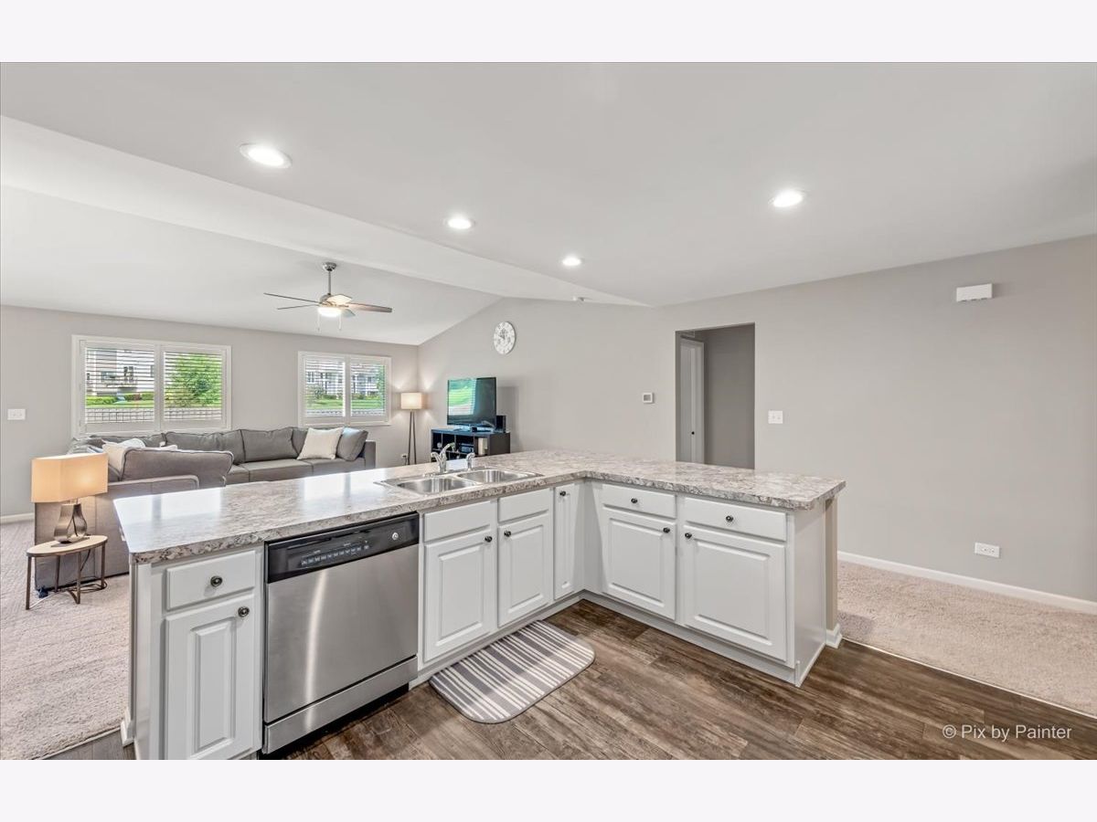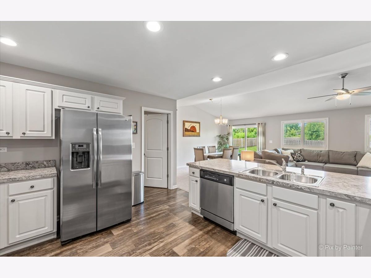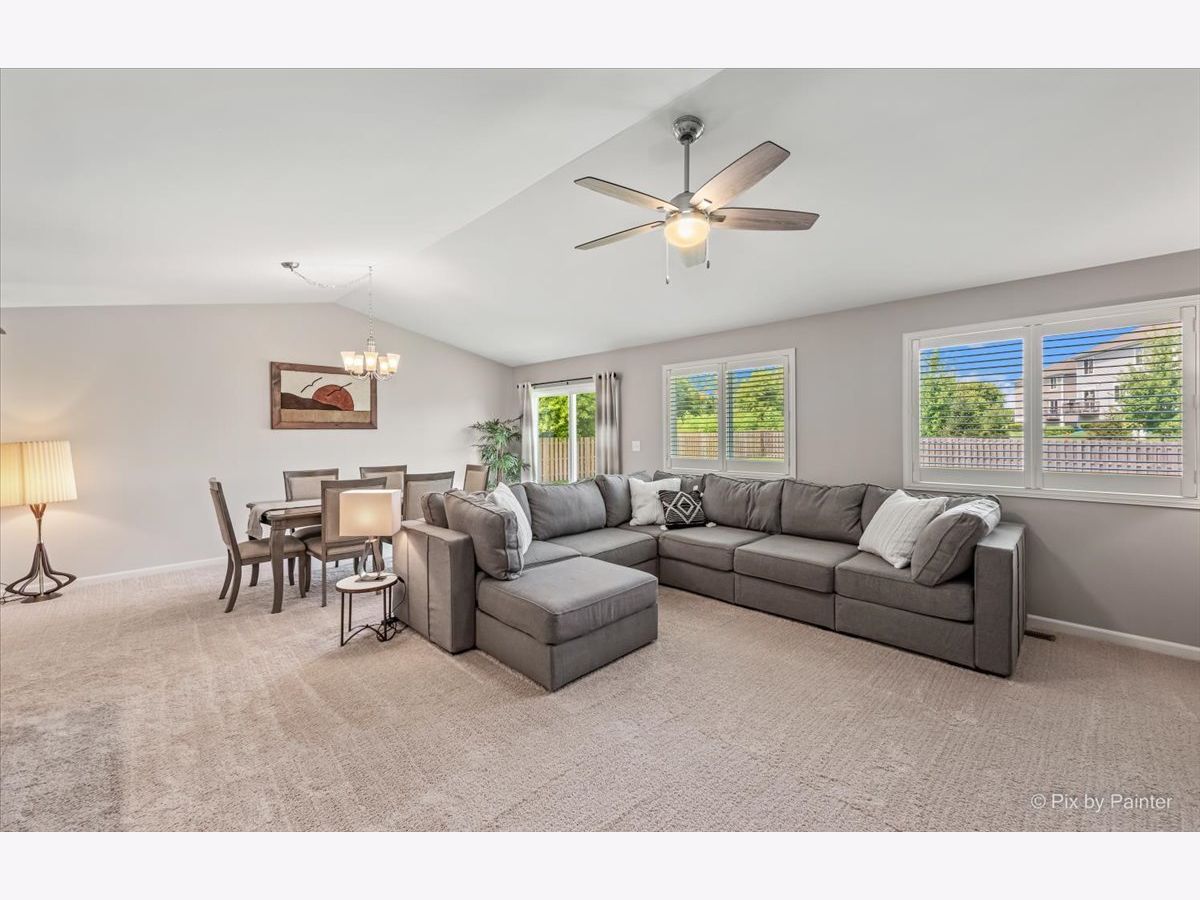 RARE & DESIRABLE RANCH HOME in Cambridge Lakes Subdivision and DO NOT need to be 55 & older! Cambridge Lakes offers all the amenities that include: 12 lakes, 12 parks, clubhouse, pool, fitness center, exercise room & gym, party room & miles of walking paths! This great home is located on a culdesac! Mostly fenced oversized lot & extra long driveway! Professional landscaping added (in 2020)! This OPEN FLOOR PLAN home has all the features that are wanted today! Vaulted living & dining rooms, wood look vinyl floors, white panel doors/trim & light grey paint throughout (in 2017)! To top it off, plantation shutters can be found throughout the home (in 2017)! Step into the open kitchen with loads of recessed lighting, white cabinets with crown moldings & knobs, under cabinet LED lighting that changes colors (in 2018) & stainless steel appliances! Kitchen overlooks vaulted living room with ceiling fan & also overlooks vaulted dining room with sliding glass doors that lead to extra large yard! Large laundry room with NEW washer & dryer (in 2022) & notch out for a closet has access to the 2 car attached garage with added garage door opener, finished drywall & epoxy floors (all done in 2017)! LARGE master bedroom with added ceiling fan (in 2017) & 2 walk-in closets! Master bathroom with double sink white vanity & added knobs, stand up shower, linen closet, toilet bidet & NEW light fixture (in 2022)! Move towards the front of the home to find the other 2 bedrooms! 2nd bedroom with walk-in closet & 3rd bedroom/den with double door entry & notch out for future closet! Hall bathroom with white cabinet vanity with knobs & new light fixture (in 2022)! HUGE unfinished basement with painted floors (in 2017), battery backup sump pump (in 2018) plus cemented floor crawl space for all your needed storage! Additional improvements include: front storm door (in 2018), cabinetry knobs throughout (in 2017 & 2022), window well covers (in 2017) AND there is fiber internet to the home which is present in the living room, master bedroom & 3rd bed/office.