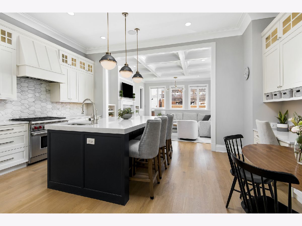 Sold off market! Gorgeous all-brick custom built home on best block of Bucktown. Main level features high ceilings, white oak flooring, amazing kitchen with commercial grade appliances, walk-in pantry, and built-in banquette and desk area. Generous family room off of kitchen with fireplace and coffered ceilings. 2nd level features 3 great sized bedrooms, 2 baths and laundry. Luxurious primary suite with walk-in closet, built-ins, and spa-like bathroom with steam shower, separate soaking tub and dual vanities. Lower level features radiant heated flooring, spacious family room with wet bar, 2 additional bedrooms, bathroom, and abundant storage. Ideal new construction floorplan with mudroom off the back leading to large patio and synthetic turf yard with putting green, built-in grill and garage roof deck with pergola over 2 car garage. A+ location on the most sought after Bucktown block near cafes and shopping on Damen, Churchill Park, blue line and 606 trail.