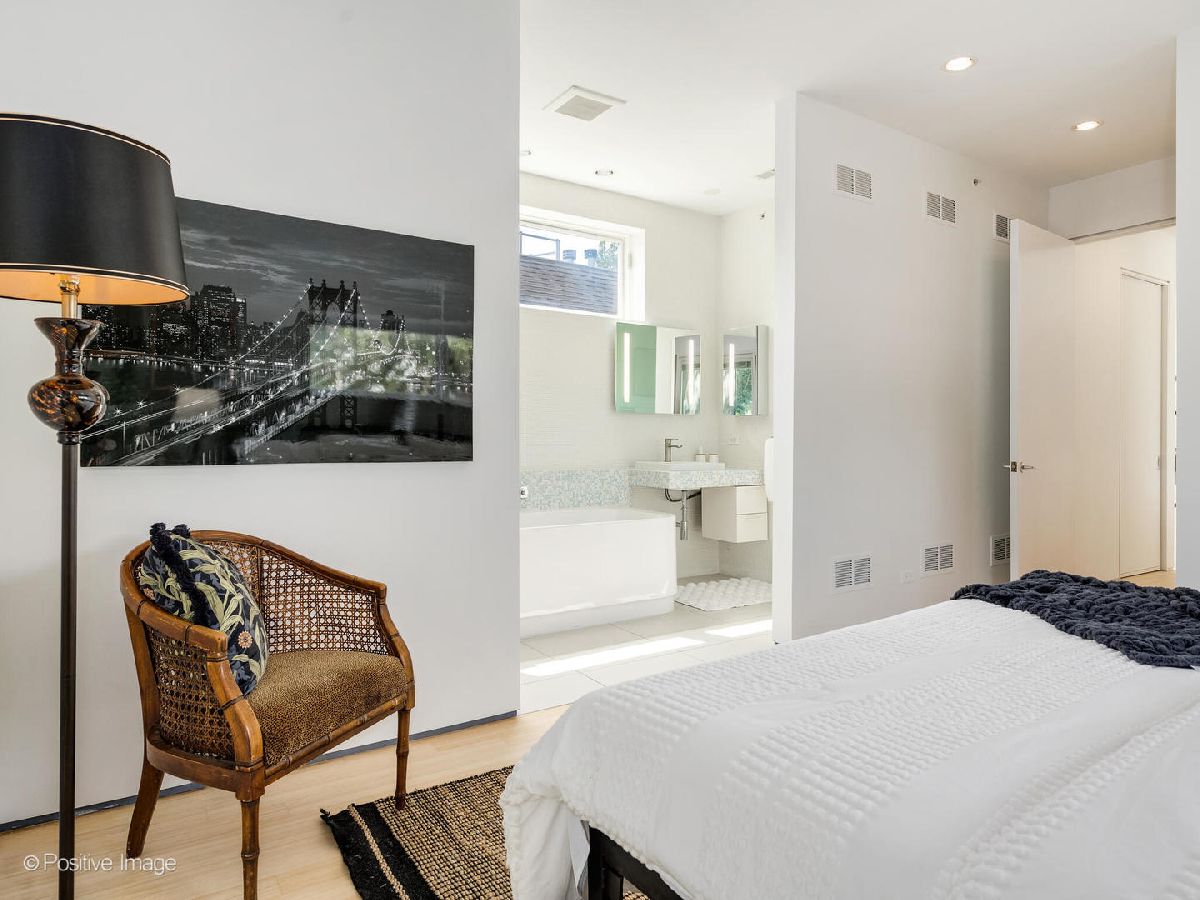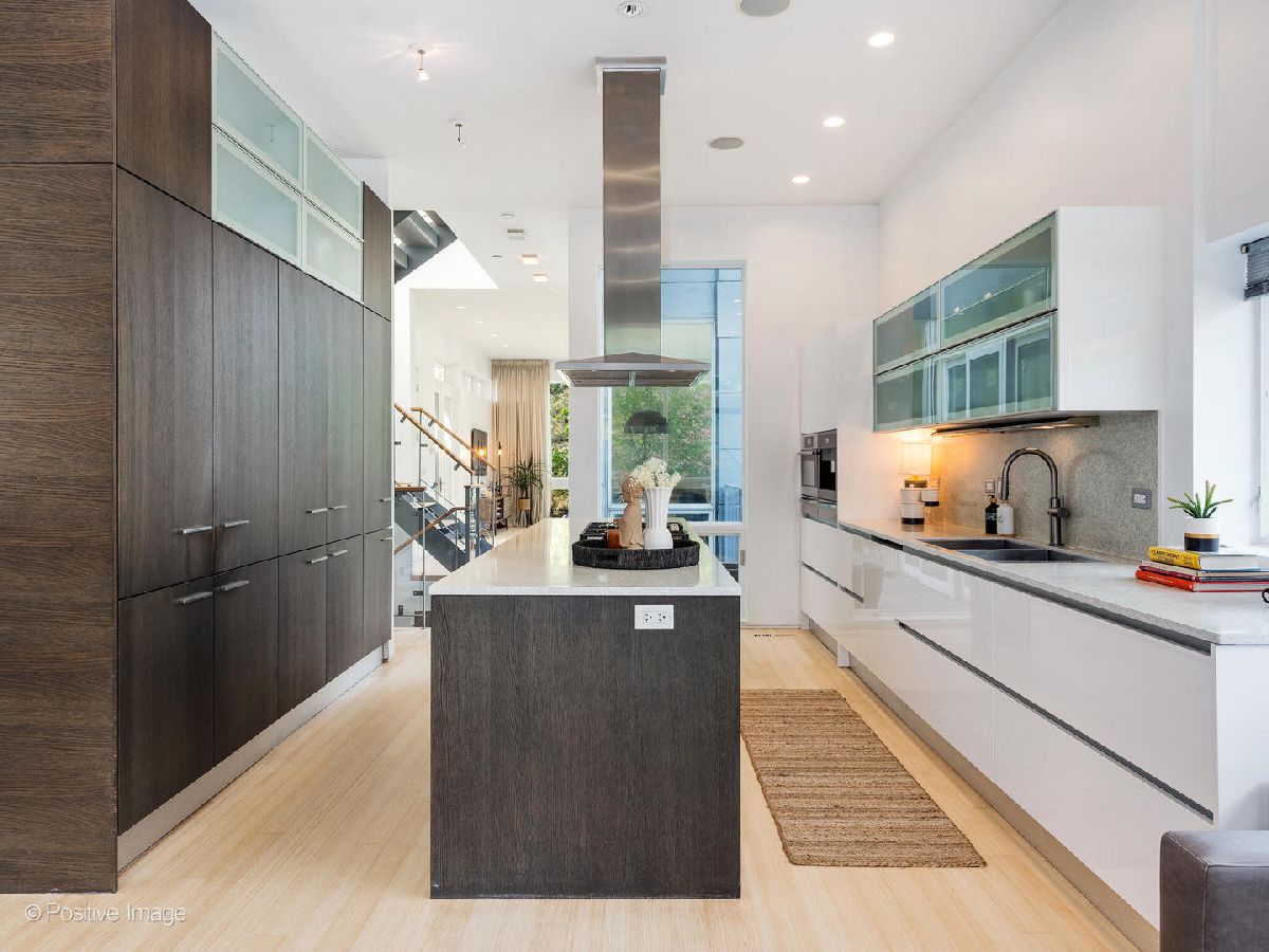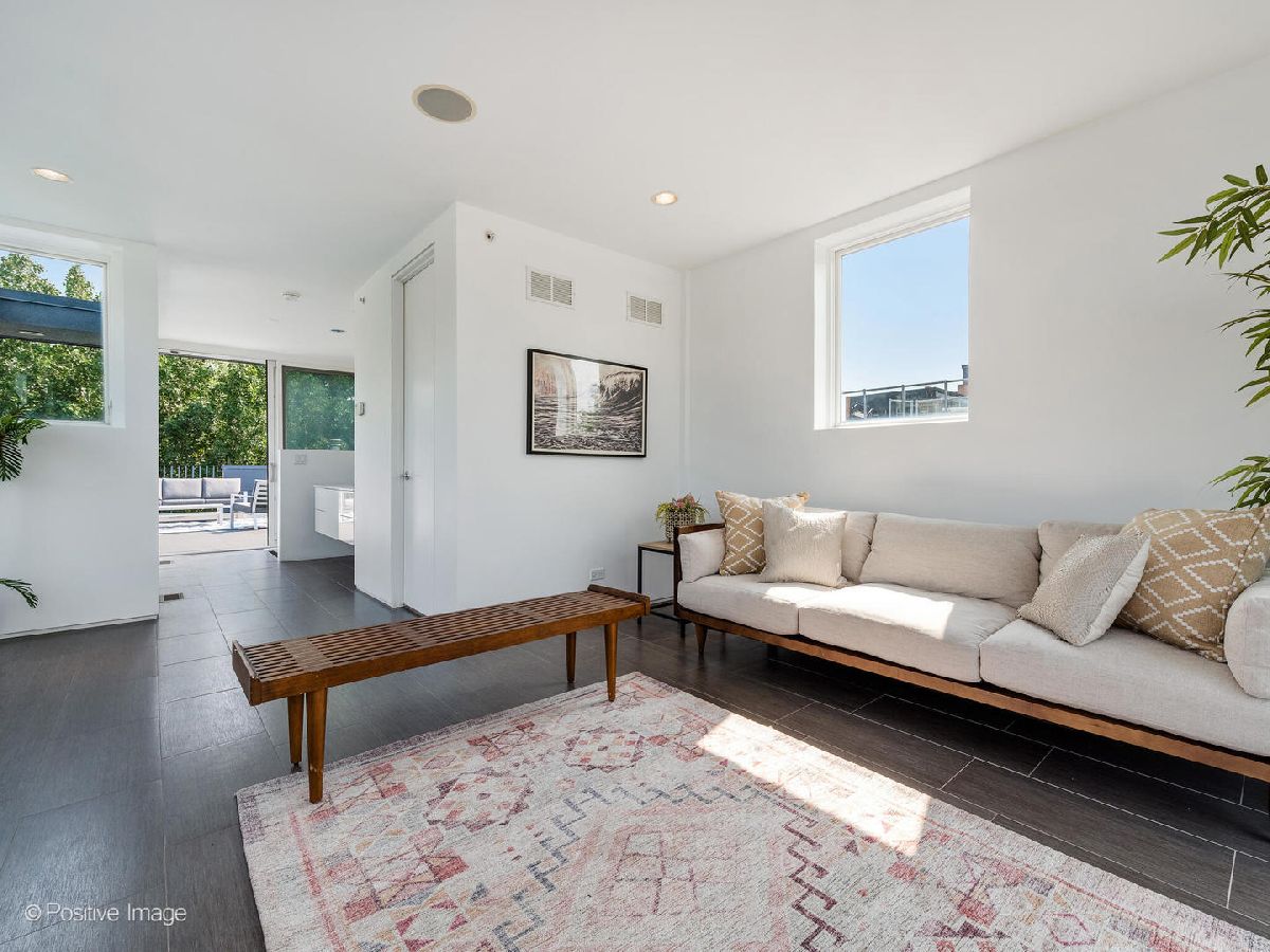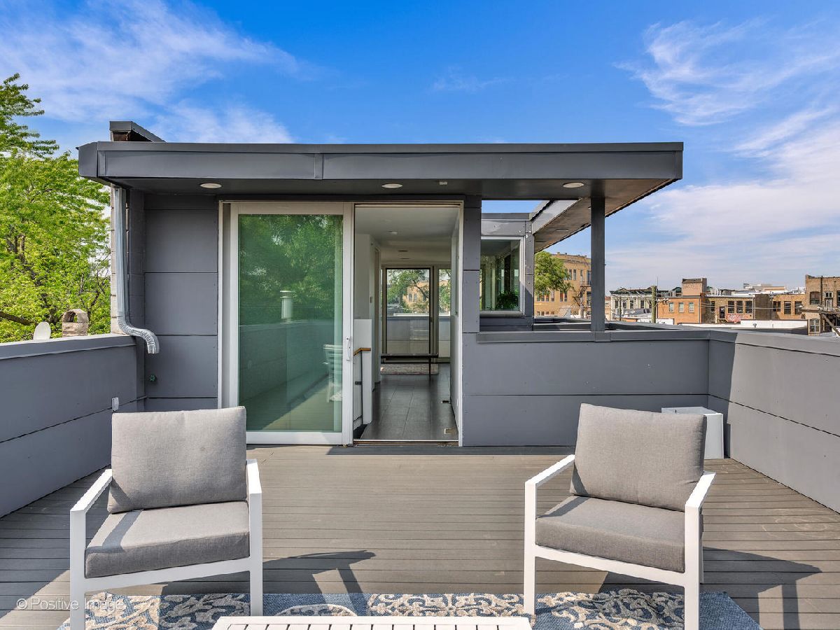 Architect-designed modern masterpiece in the heart of Wicker Park. This sun-drenched 5 bed, 4.1 bath home offers nearly 4,000 sq ft of custom luxury, wrapped in ten distinct outdoor spaces for unmatched indoor-outdoor living. Every detail is elevated: soaring 10'9" ceilings, walls of glass, radiant-heated concrete floors, and warm hardwoods throughout. The chef's kitchen is both sleek and functional, with Italian cabinetry, an oversized island with recycled aluminum countertops, and integrated Miele appliances-including a built-in coffee station and paneled fridge. Just off the kitchen, slide open the doors to a private rooftop deck above the attached two-car garage. The primary suite feels like a boutique hotel: a spa-style bath with dual vanities and a walk-in shower, and a jaw-dropping custom closet with built-in island. Upstairs, a sunlit flex room opens to three rooftop terraces with sweeping city views-perfect for lounging, working, or entertaining. The lower level is built for modern living, featuring radiant heated floors, a spacious media room, custom office space, a sauna, guest suite, and abundant light. Additional highlights include a mudroom entry, second-floor laundry, dual-zone HVAC, and updated decking throughout. Located on a quiet, tree-lined street just steps from Division, Milwaukee, and the Blue Line, this one-of-a-kind home delivers the perfect blend of architectural vision, privacy, and city lifestyle.