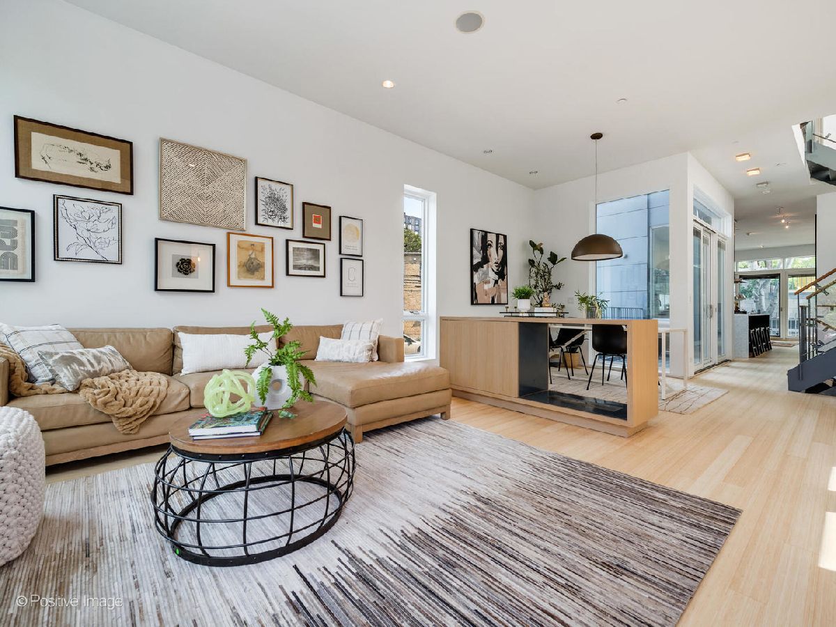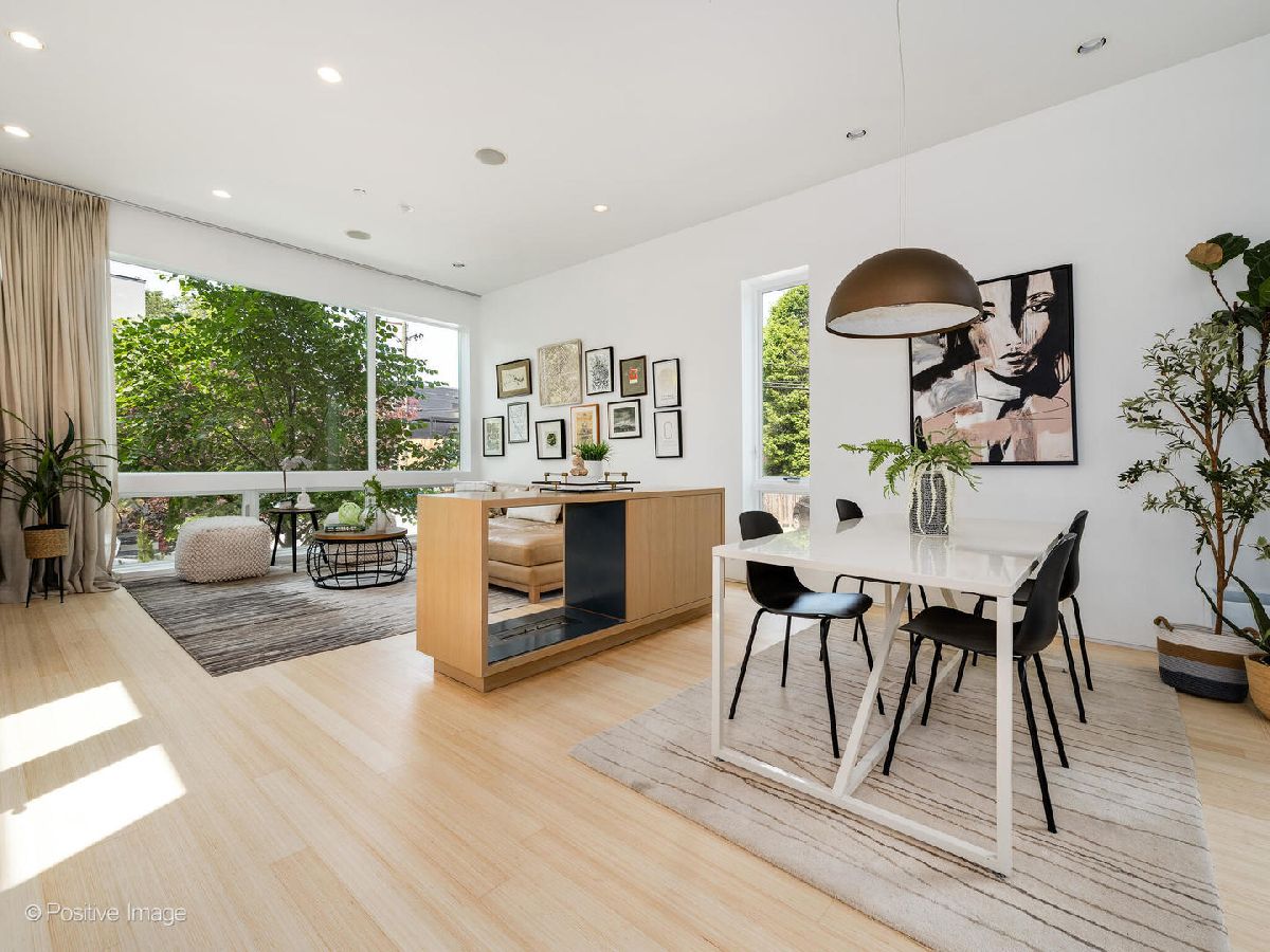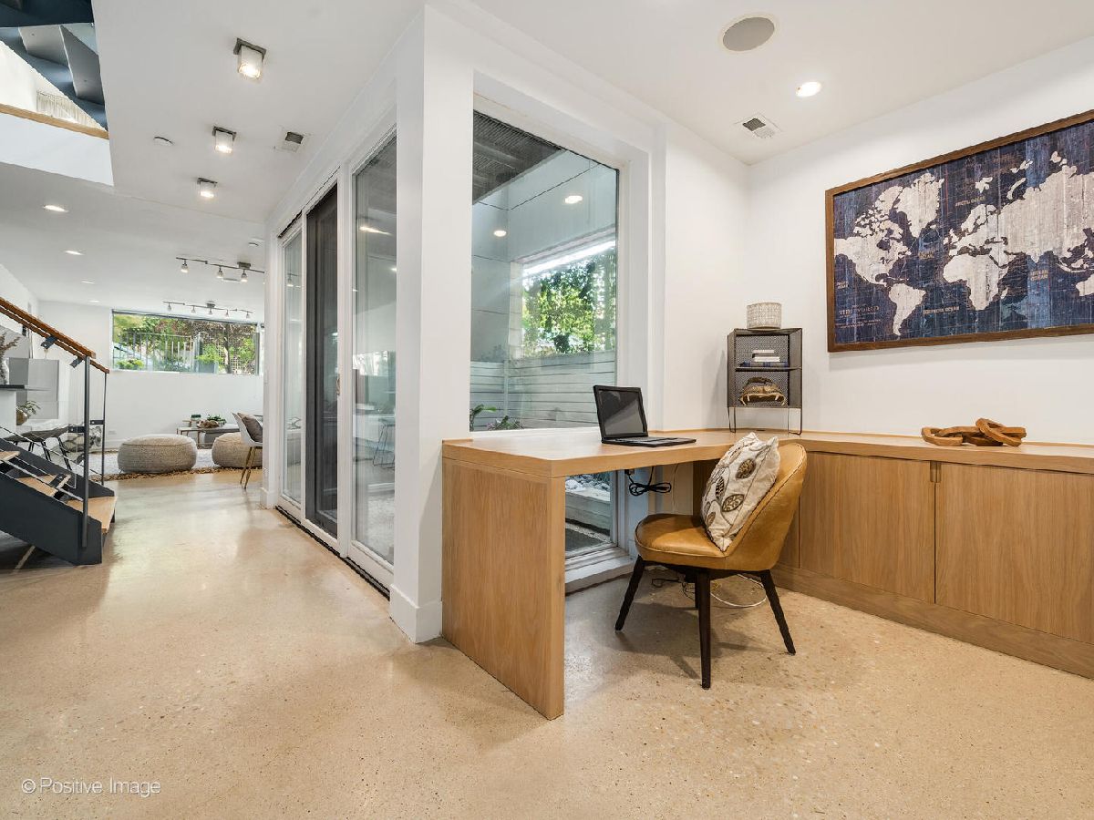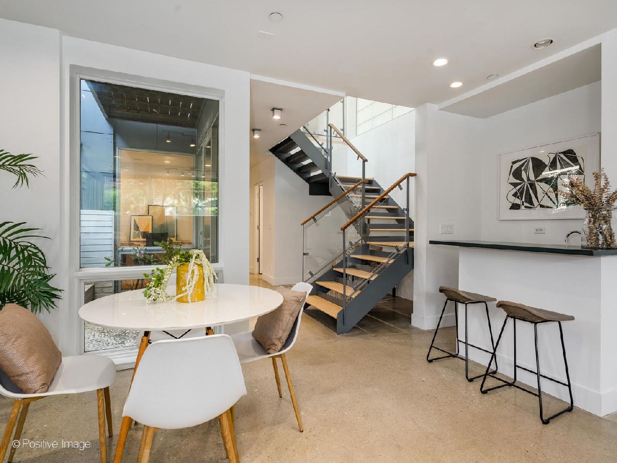 Architect-designed modern masterpiece in the heart of Wicker Park. This sun-drenched 5 bed, 4.1 bath home offers nearly 4,000 sq ft of custom luxury, wrapped in ten distinct outdoor spaces for unmatched indoor-outdoor living. Every detail is elevated: soaring 10'9" ceilings, walls of glass, radiant-heated concrete floors, and warm hardwoods throughout. The chef's kitchen is both sleek and functional, with Italian cabinetry, an oversized island with recycled aluminum countertops, and integrated Miele appliances-including a built-in coffee station and paneled fridge. Just off the kitchen, slide open the doors to a private rooftop deck above the attached two-car garage. The primary suite feels like a boutique hotel: a spa-style bath with dual vanities and a walk-in shower, and a jaw-dropping custom closet with built-in island. Upstairs, a sunlit flex room opens to three rooftop terraces with sweeping city views-perfect for lounging, working, or entertaining. The lower level is built for modern living, featuring radiant heated floors, a spacious media room, custom office space, a sauna, guest suite, and abundant light. Additional highlights include a mudroom entry, second-floor laundry, dual-zone HVAC, and updated decking throughout. Located on a quiet, tree-lined street just steps from Division, Milwaukee, and the Blue Line, this one-of-a-kind home delivers the perfect blend of architectural vision, privacy, and city lifestyle.