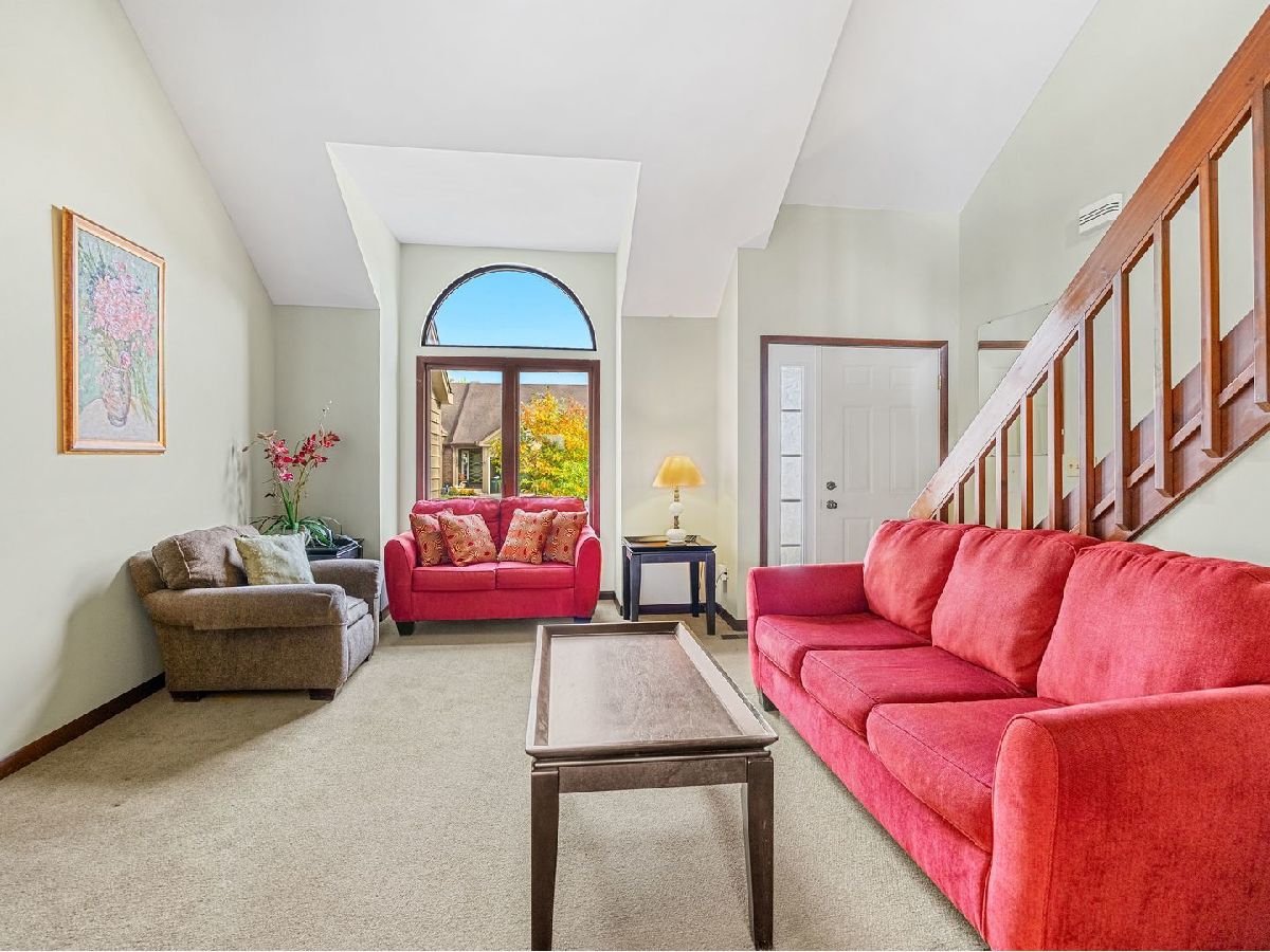 Welcome to this quaint and charming East Dundee community, where you will find an easy living style townhome tucked back on a private cul-de-sac location. As you step inside, you are immediately greeted by an open floor plan flanked by a large vaulted ceiling and a fireplace, perfect for cozy evenings. The spacious kitchen offers Corian countertops, generous cabinet space and a large, country style dining area with slider access to the deck. Rounding out the first floor you will find a powder room and the utility room with sink, providing access to the garage . Upstairs you will find the primary bedroom with a generous walk-in closet, a secondary bedroom, loft space and a shared full hall bath. A nice added feature is found downstairs with the full, finished english basement, providing additional living space. Conveniently located with easy I-90 access. Welcome Home!