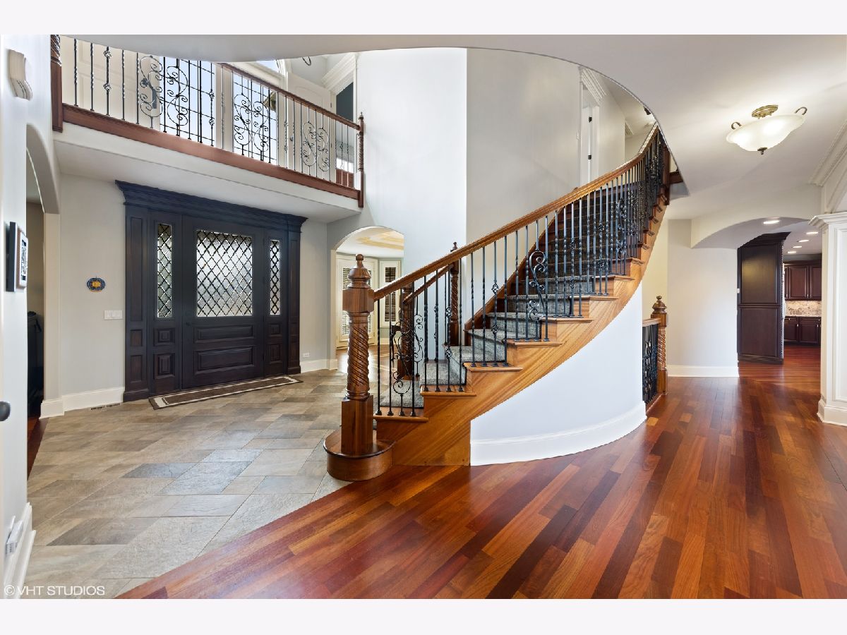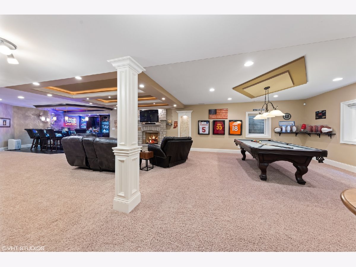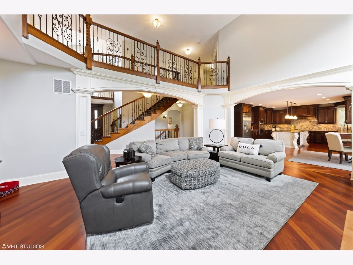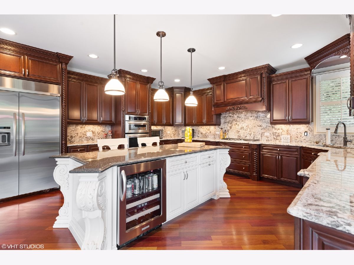 Isn't it time you now experience quality, comfort, & style at it's finest? This exquisite 2-story 5 bedroom, 5 bath brick and stone beauty offers over 7,000 sq/ft of finished living space and resides on a beautifully landscaped half acre lot. As you step through the doors, you realize you found something special while you begin to notice the incredible architectural detail of this home. You are immediately welcomed by a grand 2-story foyer with a dramatic curved stairway with Brazilian cherry hardwood flooring which flows throughout the main level. As you continue on past the dining and living rooms with their stunning tray ceilings, you enter the impressive great room which boasts a 2-story brick and stone fireplace which is sure to light a fire in your heart. As you look around, you're delighted by the smooth flowing floor plan which opens to a chef's dream of a kitchen with exquisite cherry cabinetry, granite counters, an abundant island (perfect for prepping or gatherings), with built-in wine fridge, and all stainless steel appliances. The main level also provides a picturesque view of the expansive backyard with an incredible stone patio featuring a built-in grill and firepit. The first floor also offers an office/5th bedroom with access to a 1st floor full bath. The 2nd level features a plush master suite you'll never want to leave with it's marvelous walk in closet (cherry organizers) and a master bath which is sure to delight the most discriminating tastes. The 2nd bedroom has it's own private bath and in addition to the 4 spacious bedrooms, you'll discover a 500 sq/ft bonus room which is perfect as a media room, library, or play room! The true bonus of this home is found in the spectacular finished basement which offers over 2,000 sq/ft of finished living space with 8 ft ceilings, gas burning fireplace, and a stunning bar area which has a high "wow" factor! The basement also offers an additional bedroom, a full bath, and an exercise room with it's own bottle filling station. Finishing off this home is a 3 car garage with epoxy flooring and entrances to both the main level and basement. This home is perfectly located near parks, schools, shopping, commuter train, and interstate access.