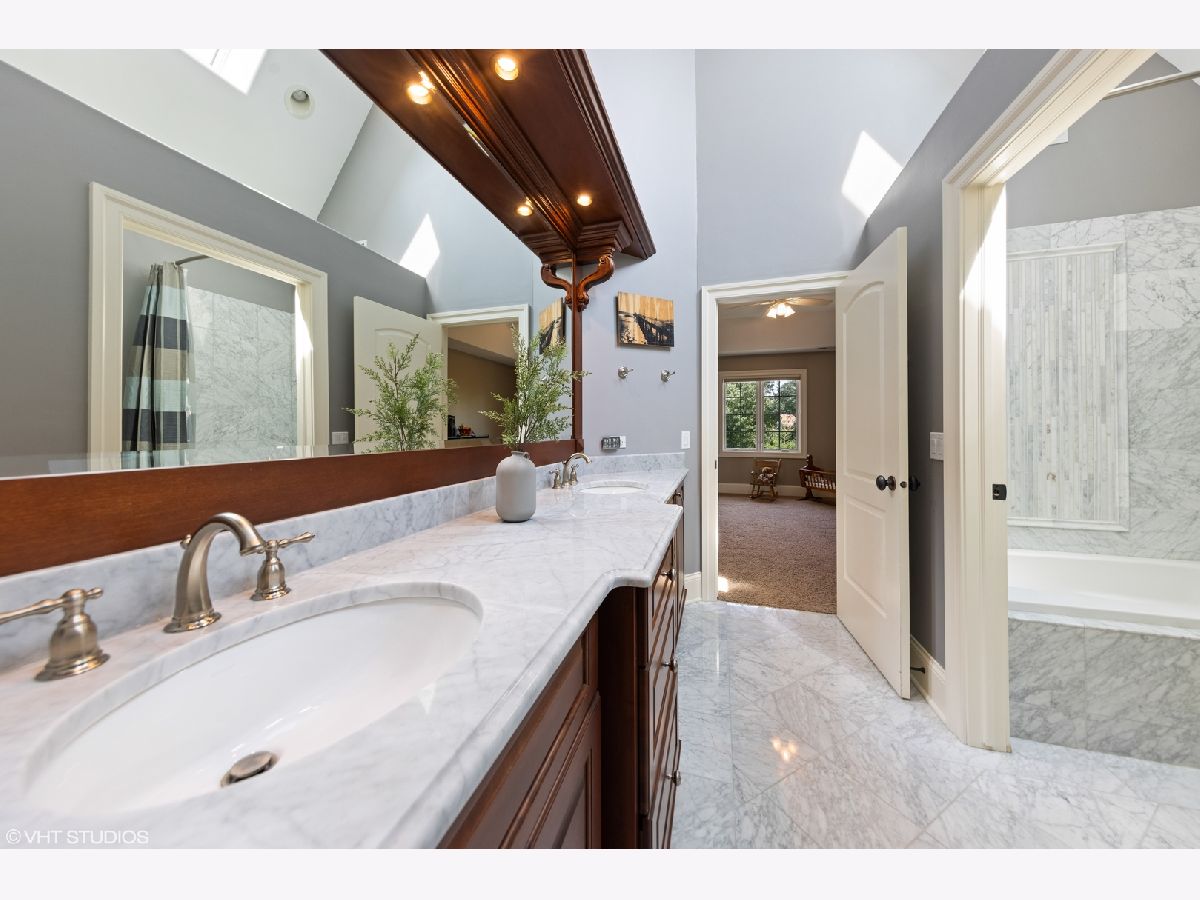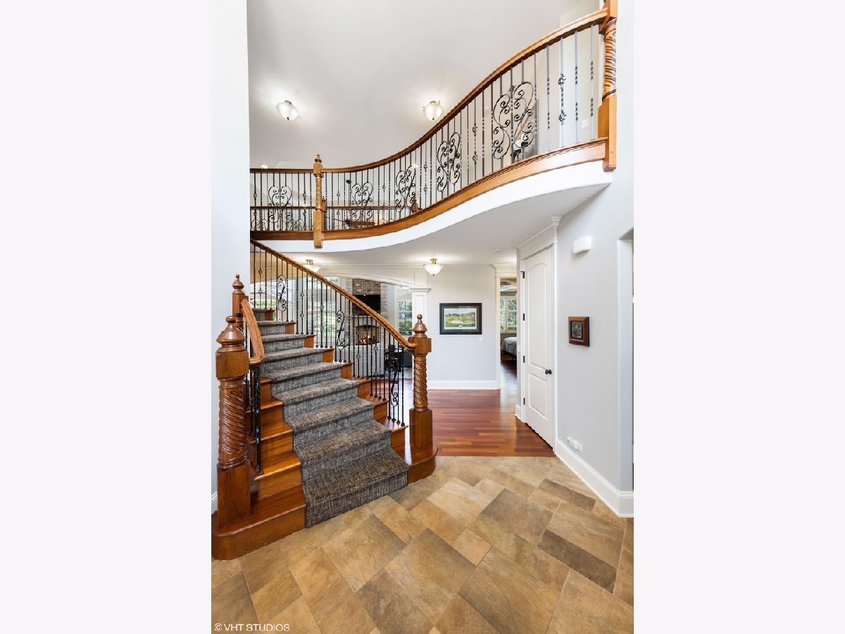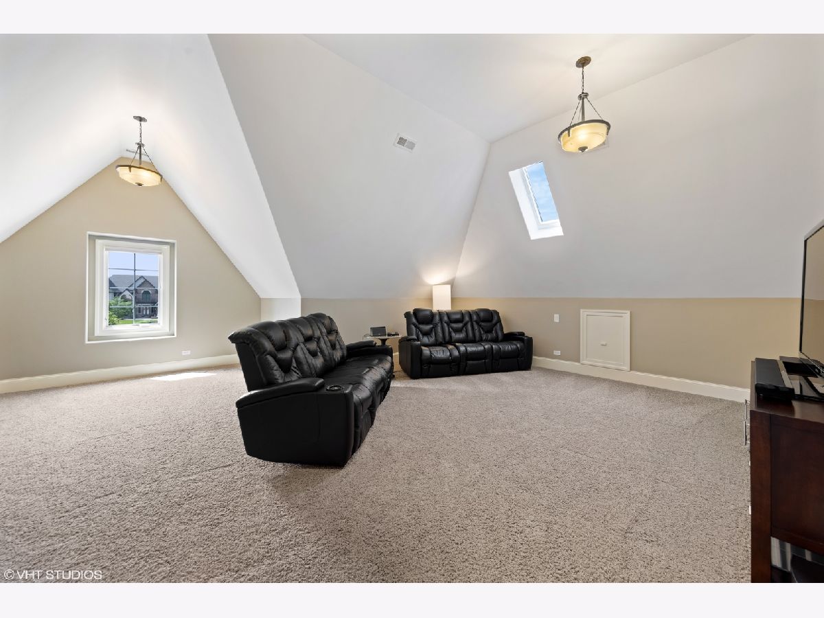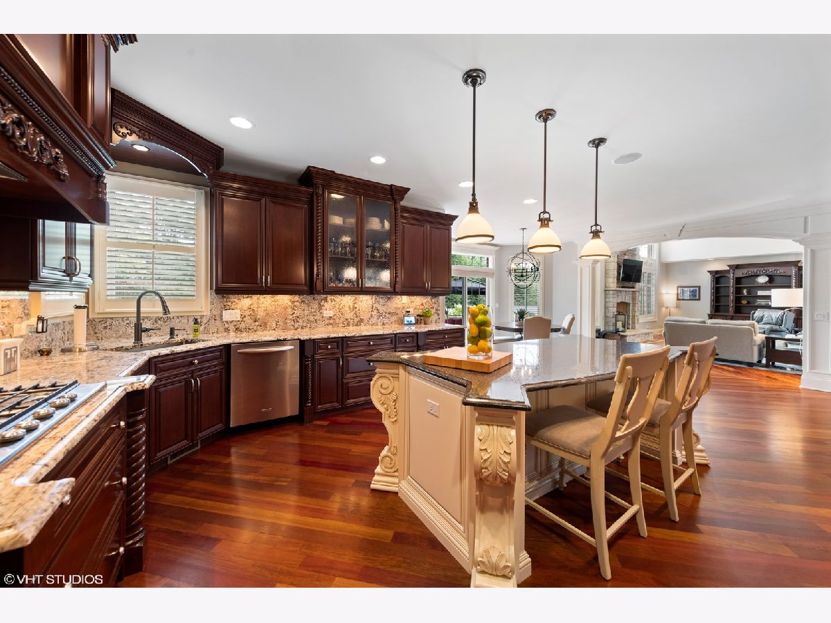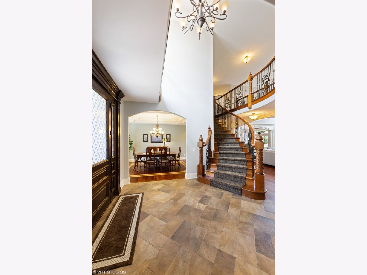 Isn't it time you now experience quality, comfort, & style at it's finest? This exquisite 2-story 5 bedroom, 5 bath brick and stone beauty offers over 7,000 sq/ft of finished living space and resides on a beautifully landscaped half acre lot. As you step through the doors, you realize you found something special while you begin to notice the incredible architectural detail of this home. You are immediately welcomed by a grand 2-story foyer with a dramatic curved stairway with Brazilian cherry hardwood flooring which flows throughout the main level. As you continue on past the dining and living rooms with their stunning tray ceilings, you enter the impressive great room which boasts a 2-story brick and stone fireplace which is sure to light a fire in your heart. As you look around, you're delighted by the smooth flowing floor plan which opens to a chef's dream of a kitchen with exquisite cherry cabinetry, granite counters, an abundant island (perfect for prepping or gatherings), with built-in wine fridge, and all stainless steel appliances. The main level also provides a picturesque view of the expansive backyard with an incredible stone patio featuring a built-in grill and firepit. The first floor also offers an office/5th bedroom with access to a 1st floor full bath. The 2nd level features a plush master suite you'll never want to leave with it's marvelous walk in closet (cherry organizers) and a master bath which is sure to delight the most discriminating tastes. The 2nd bedroom has it's own private bath and in addition to the 4 spacious bedrooms, you'll discover a 500 sq/ft bonus room which is perfect as a media room, library, or play room! The true bonus of this home is found in the spectacular finished basement which offers over 2,000 sq/ft of finished living space with 8 ft ceilings, gas burning fireplace, and a stunning bar area which has a high "wow" factor! The basement also offers an additional bedroom, a full bath, and an exercise room with it's own bottle filling station. Finishing off this home is a 3 car garage with epoxy flooring and entrances to both the main level and basement. This home is perfectly located near parks, schools, shopping, commuter train, and interstate access.