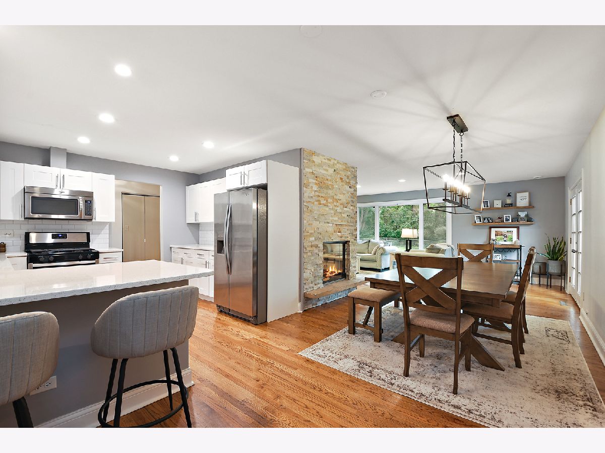 Gorgeously updated 3 bedroom 2 bath ranch home! This one is a beauty - set on a lovely half acre fenced lot, with 2 car attached garage. Walk up to the charming porch and into the space with gleaming hardwood floors throughout. The living room has a ton of natural light from the windows and door overlooking the serene back yard and spacious deck. The two sided fireplace, recently converted to gas for year round beauty, is a show stopper. The dining room with beautiful lighting connects the living room to the bright kitchen with breakfast bar and quartz counters and stainless appliances. The hall bath, servicing 2 of the large bedrooms, was just updated with beautiful curbless shower. There's a nice primary suite as well! New a/c unit, everything neat as a pin as well. Large 2 car HEATED garage with additional laundry hookup!
