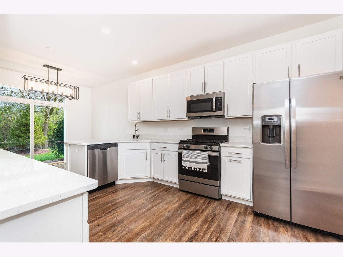 Step into this stunning END UNIT dream townhome in Prairie Commons! This gorgeous 2 BEDROOM + 2.5 BATH + LOFT built in 2020 can easily be converted to a 3 BEDROOM if preferred. The spacious OPEN-CONCEPT layout is sure to impress even the most discerning buyers! You will love the private entrance and as you step inside you will be greeted by an abundance of natural light that pours in through the additional windows available only on an end unit. This Wi-Fi certified SMART HOME is equipped with cutting-edge technology including a Ring video doorbell and a Honeywell smart thermostat, ensuring convenience and security at your fingertips. The OPEN-CONCEPT KITCHEN featuring plenty of modern 42" white cabinets, sleek Quartz countertops, a breakfast bar and a full set of GE stainless appliances is sure to impress any home chef. The adjacent dinette area with its large table space has a sliding glass patio door and offers easy access to the outdoors for grilling. The spacious living room featuring 9' ceilings, a show stopping view and luxury vinyl plank flooring throughout the entire main level provides a seamless flow for entertaining and everyday living. Beautiful staircase with designer select railing leads to the upper level with 2 generous bedrooms and a 2nd story loft - it is the perfect place to work from home! The primary bedroom suite is impressive with a walk-in closet and full bathroom including large walk-in shower and beautiful, modern fixtures. The second bedroom has easy access to a separate full bathroom. Laundry room is conveniently located on the 2nd floor and includes washer and dryer. This home is equipped with a fire sprinkler system to help keep your family safe. ATTACHED 2-CAR GARAGE with SMART enabled garage door and ample storage space. Maintenance free home - HOA includes lawn care and snow removal so you can spend more time enjoying the nearby pond, adjacent Illinois Prairie Path - a beautiful tree-lined walking/bike path and Peter Frieders Park where you can relax and enjoy the picnic area, pond and an abundance of nature! Located in sought after Prairie Commons community, just minutes from shopping and conveniently close to I-88 - this home offers the perfect blend of suburban tranquility and urban accessibility. Don't miss out on the opportunity to make this your home. Schedule a showing today and experience luxury living at its best!!
