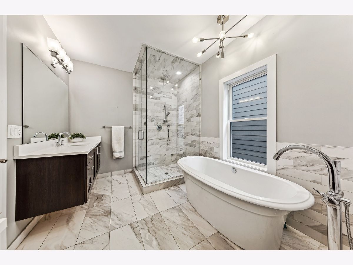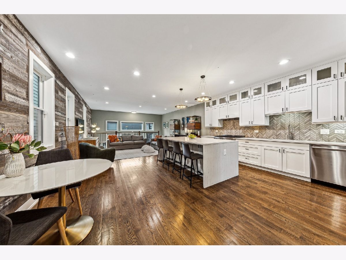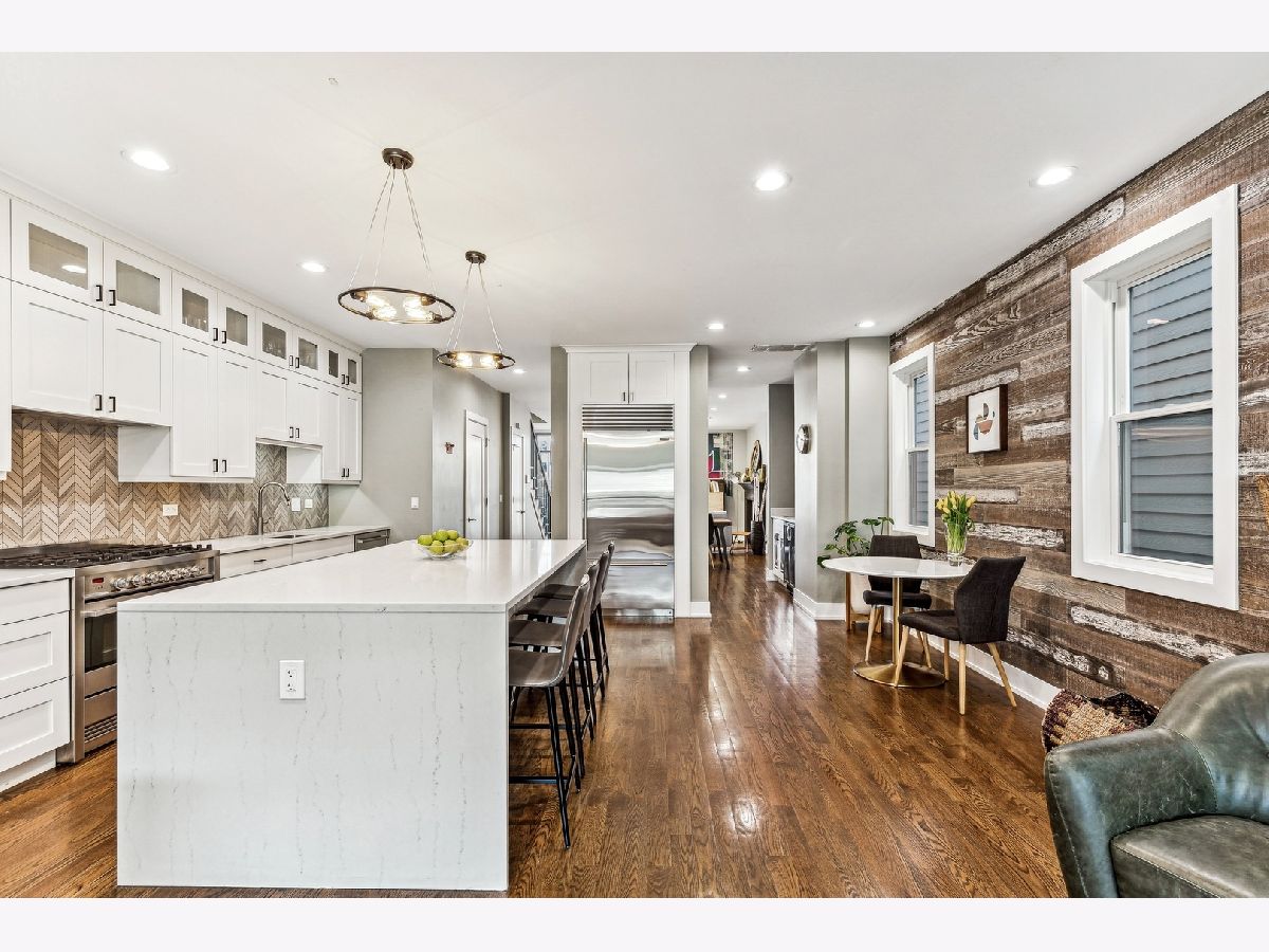 Located on the historic Humboldt Boulevard and just steps from the 606 trail, this home features an idylic park setting with mature trees juxtaposed with contemporary design. Centered in the Fibonacci series of homes, which refers to the facade's brick pattern, this home features five bedrooms and three and a half baths, with every feature you're looking for in your next home. A spacious & open layout abundant with light and oak floors throughout the main and second floor. It also has a fully finished rooftop deck and a lower level with high ceilings and radiant heat throughout. The kitchen has waterfall countertops, high-end appliances, a large island plus a breakfast nook, all opening to an ample family room which overlooks the fully landscaped backyard. Upstairs are 3 bedrooms and 2 baths. The huge primary suite includes a large walk-in closet, luxury bathroom with two separate vanities, heated floors, steam shower and soaking tub. This floor also features a side-by-side washer/dryer with storage and hanging space. The lower level has a large family room, a full bathroom, and 2 additional bedrooms. Abundant storage space throughout and all closets have been professionally built out. Many windows have Hunter Douglas motorized shades. Outside enjoy panoramic views from the fully built-out rooftop deck which has an outdoor kitchen and multiple lounge spaces. The front and rear fenced yards are professionally landscaped all the way to the 2 car detached garage. Chicagoans have coveted homes on the boulevard for over a century and today, being just steps to the 606 trail and two blocks to Logan Square's Armitage Ave dining and shopping corridor, it keeps getting better and better.