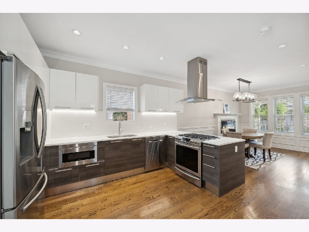 Charm meets convenience in this delightful 4 bedroom, 3 bath single-family home. Step into the world of warmth and comfort as you enter the open concept living space. Embrace the tranquility of the landscaped back yard oasis. Your own private retreat after a long day or a perfect place for summer barbecue with family and friends. This home offers the ideal blend of suburban living with urban accessibility. Home is close to "606" entrance, parks, running trails and restaurants. Unique features of this beautiful home are: Hardwood floors on the first and second levels, radiant heated floors in the lower level, welcoming foyer, wide staircases, custom millwork with panel molding, chair rail and crown molding. Modern kitchen boasts top-line stainless steel appliances high-tech refrigerator with LED screen, quartz countertop, under counter microwave and 4 burner stove with griddle opens to dining room with fireplace. One of the four bedrooms is located on the main level with french door entry, could be used as an office. Enjoy entertaining or just TV night in the great room with floor to ceiling tiled fireplace, vaulted ceiling with skylights and access to deck.The second level features large primary and second bedrooms, as well as a full bath with floor to ceiling tile, dual sink floating vanity and walk-in shower with rain shower head and handheld. The lower level has radiant heated floors throughout, a second family room equipped with a wet bar and beverage cooler, fourth bedroom and full bathroom. New in (2018) two car garage and side yard with walkway accessing the front yard. Your dream home awaits!