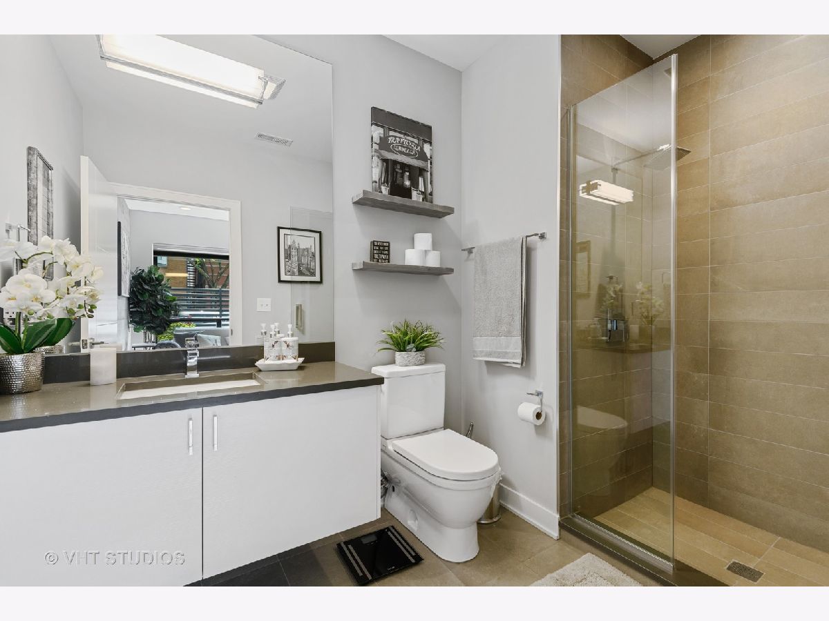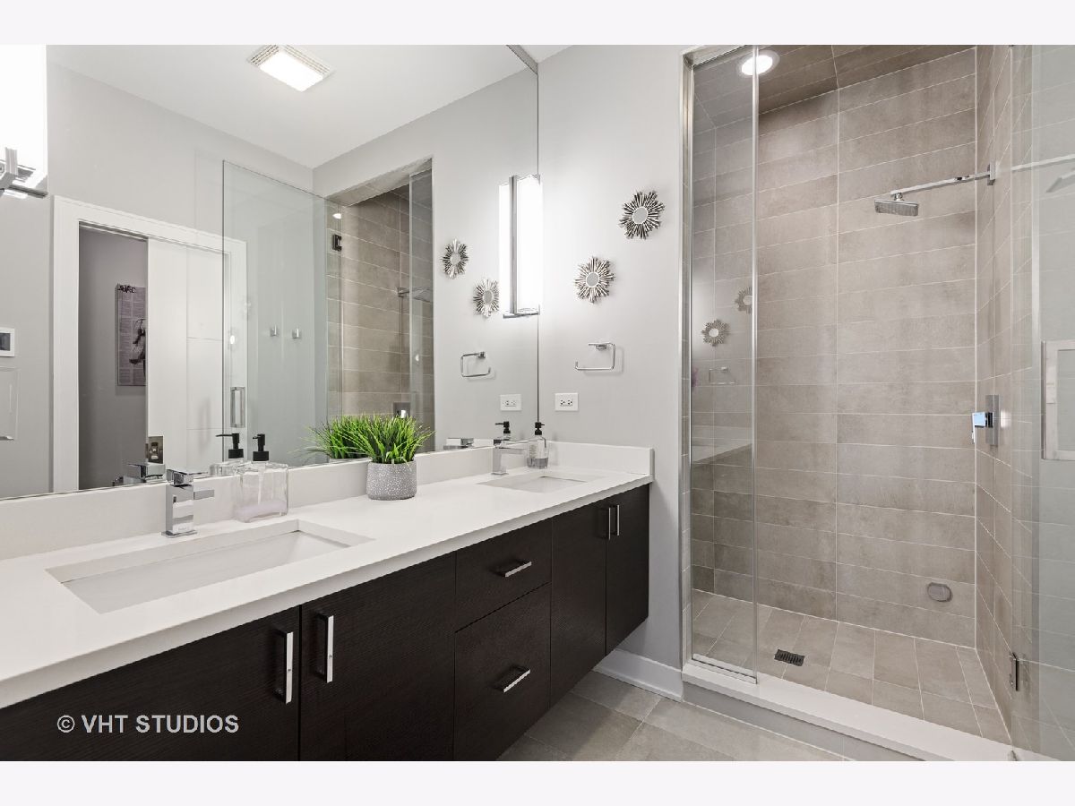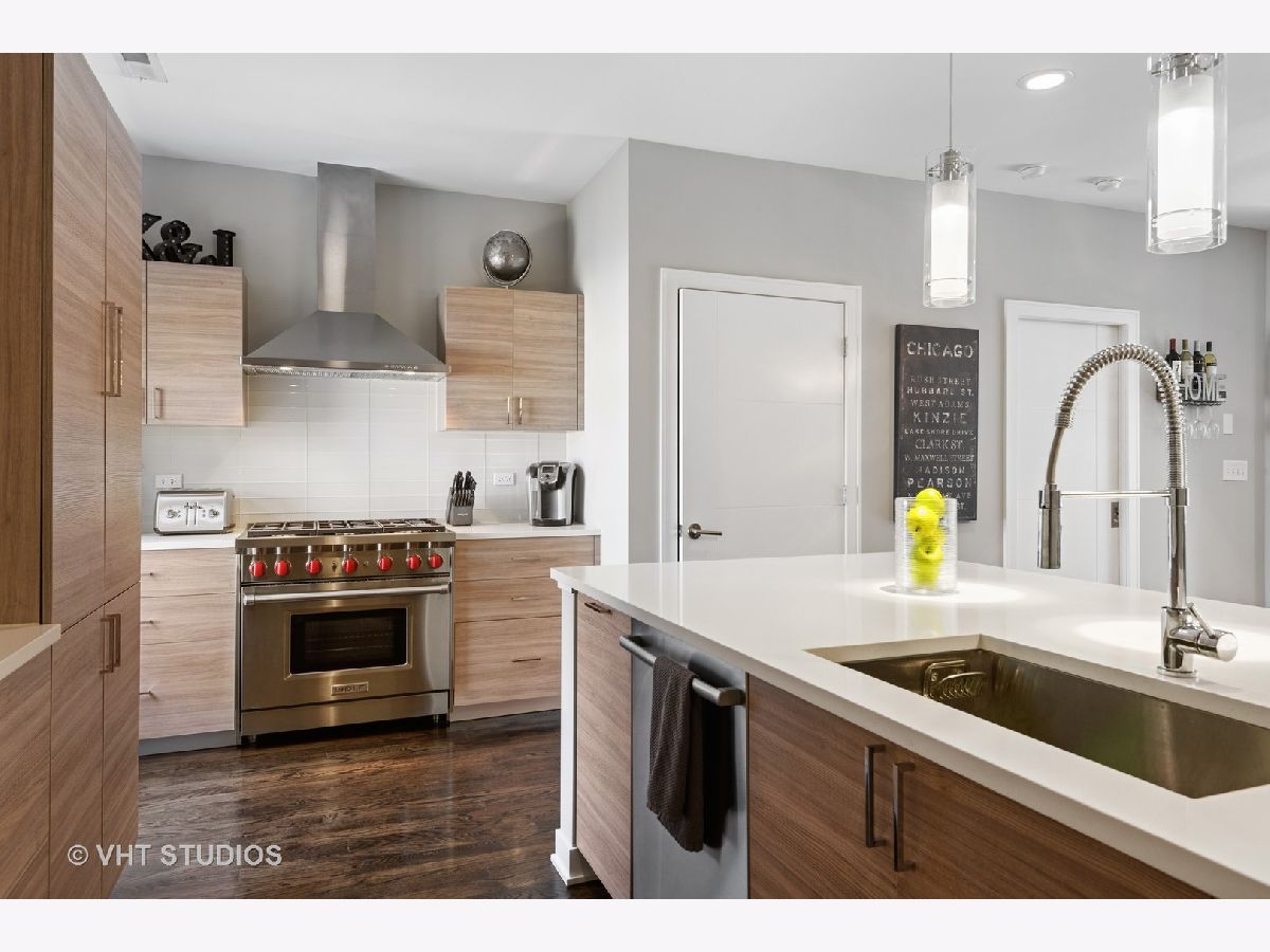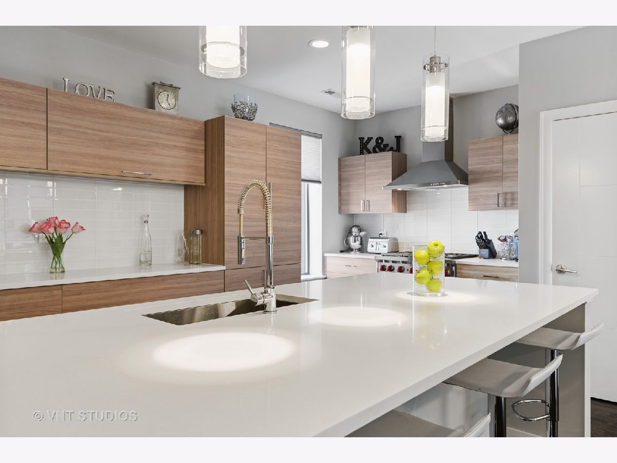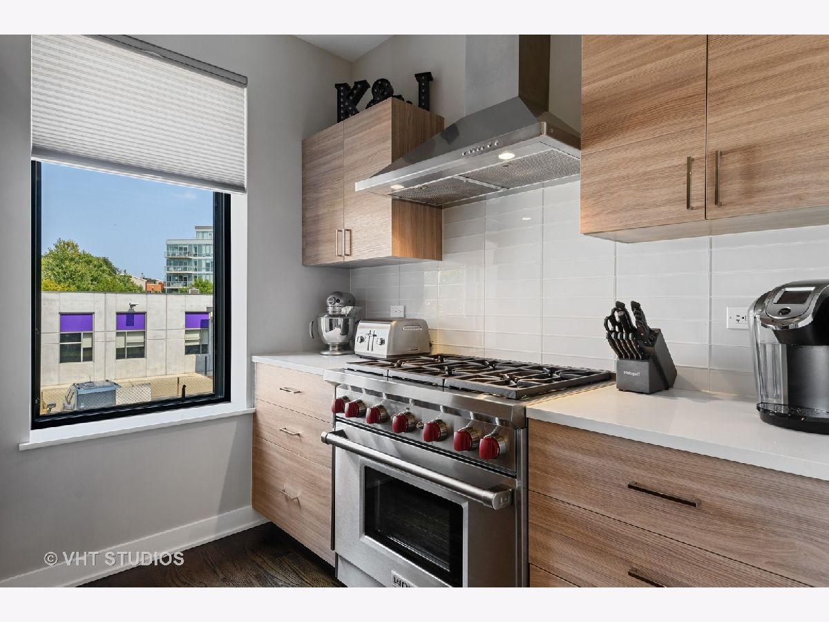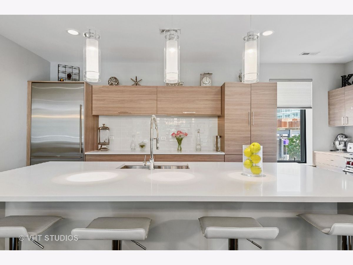 Welcome to The Row Bucktown, built in 2016. This home features four bedrooms, three full baths and a half bathroom on the main/ living room floor. With gleaming, real hardwood floors throughout every level. Your first floor consists of a full bedroom and bathroom along with plenty of closets for extra storage and an oversized two car garage with "Epoxy" floor coating and high ceilings, accessed via a private driveway. The front is inclusive of a 20x15 gated and turfed front yard. The second floor has your living room, dining, and kitchen that is open front to back. Appreciate wonderful amounts of natural light from your floor to ceiling windows that lead out to a 2nd floor balcony. The kitchen has loads of cabinets, ten-foot island, Sub-Zero refrigerator, 36" Wolf range, and a commercial grade hood. The third level has your Primary Bedroom Suite with even more floor to ceiling windows, a spa-like bathroom, with heated floors, and two sizable closets. The second and third bedrooms have custom closets and share a generously sized third bathroom. The roof is made of Trex decking and has sweeping unobstructed city views and a custom Pergola. Gas, water, electric, hook ups for grilling and entertaining. Low assessments and a healthy association.