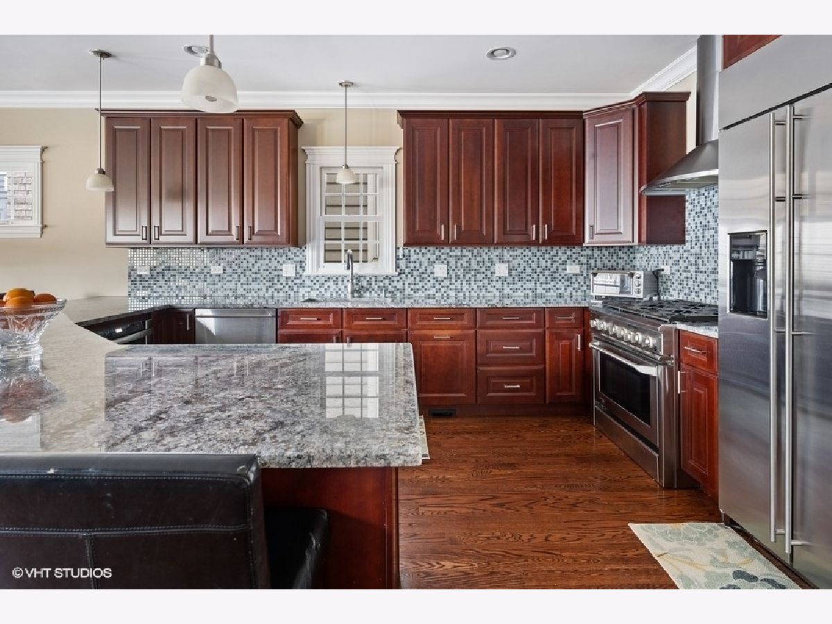 Pristine 5 bedroom, 3.5 bath custom-built home in awesome Andersonville neighborhood, on quiet, tree-lined, one-way street. Walking distance to Clark Street's restaurants and shops; Winnemac Park's 22 acres of trees, gardens, trails, tennis and sports fields; Ravenswood Metra Station; Mariano's, and so much more! Main level features living and dining room w/ fireplace, custom-built cabinetry w/ integrated lighting, picture window and marble top. Great room style kitchen, huge island w/ gorgeous Blue Ice granite counters, cherry cabinetry, GE Monogram stainless appliances and built-in desk. Mud room w/ custom cabinet bench leads to the private outdoor space galore! Second level includes 3 bedrooms w/ vaulted ceilings. Tons of natural light from 3 skylights. Laundry room w/ side-by-side washer/dryer and utility tub, cabinet, shelving, and central vacuum system. Spacious private master suite featuring vaulted ceilings and 2 walk-in closets. Spa-like master bathroom w/ heated floors, dual vanity, whirlpool tub, large walk-in steam shower w/ 2 Grohe shower heads, rain shower, hand-held and 3 body sprays. Lower level boasts 9 ft ceilings, second family room, wet bar, large guest bedroom w/ walk-in closet, 5th bedroom (used as home office/exercise room), and oversized storage room. Custom crown molding and millwork throughout. Dual furnace and commercial grade boiler for hot water and radiant heated flooring in lower level. Professional home audio speaker and security systems w/ HIKVISION cameras. Two home theater zones, w/ 19 interior and 2 exterior speakers. Rooftop deck w/ pergola, retractable shade panels, planters, and SYNLawn turf grass. Secluded paver patio for dining, and professional landscaping w/ lighting and irrigation system. New Trex front/rear stairs and 220 line in garage. Hurry - this won't last!!!