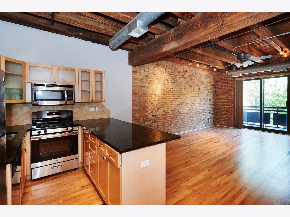 Rare 1 bedroom hard loft with exposed brick/wide plank timber and balcony in Lincoln Park. Click the 3D tour link and interactive floorplan right now for a walk through! This recently improved condo has old world charm with beautiful exposed wood and structural elements. Upgraded features include stainless steel appliances, kitchen backsplash, glass cabinets, fireplace, new paint, refinished floors and separate heat and central AC control. This home is located within in a quiet and convenient location and has a great neighborhood feel - steps from all Lincoln Park and Lakeview have to offer. Nearby Costco, i90, Target, Riverpoint Center, Jimmy Thomas Nature trail, Chicago River and so much more make this such an ease to navigate. The building has a very unique feel for the area and includes a large private dog run, elevator and workout room. The balcony allows gas grills. Washer/Dryer in unit Dedicated parking spot and storage locker included in price. 2 pets allowed.