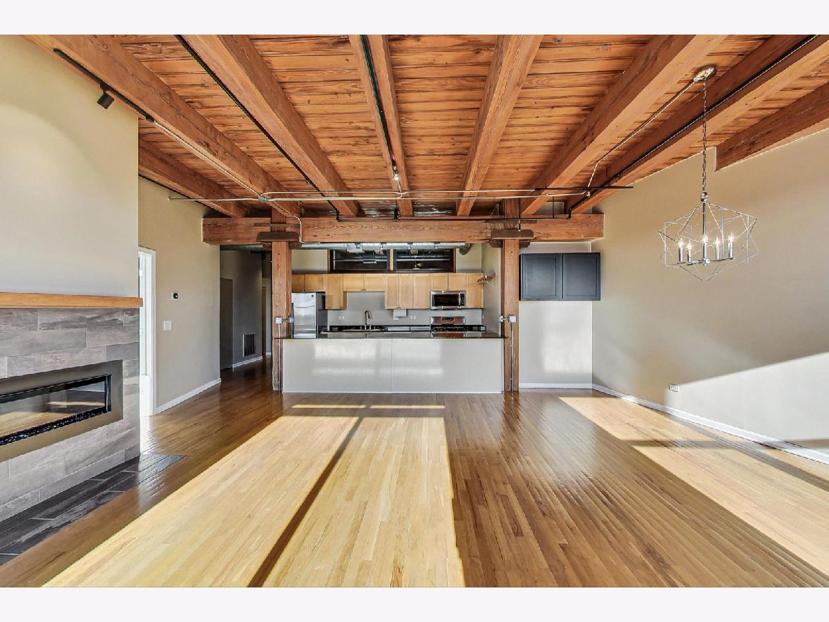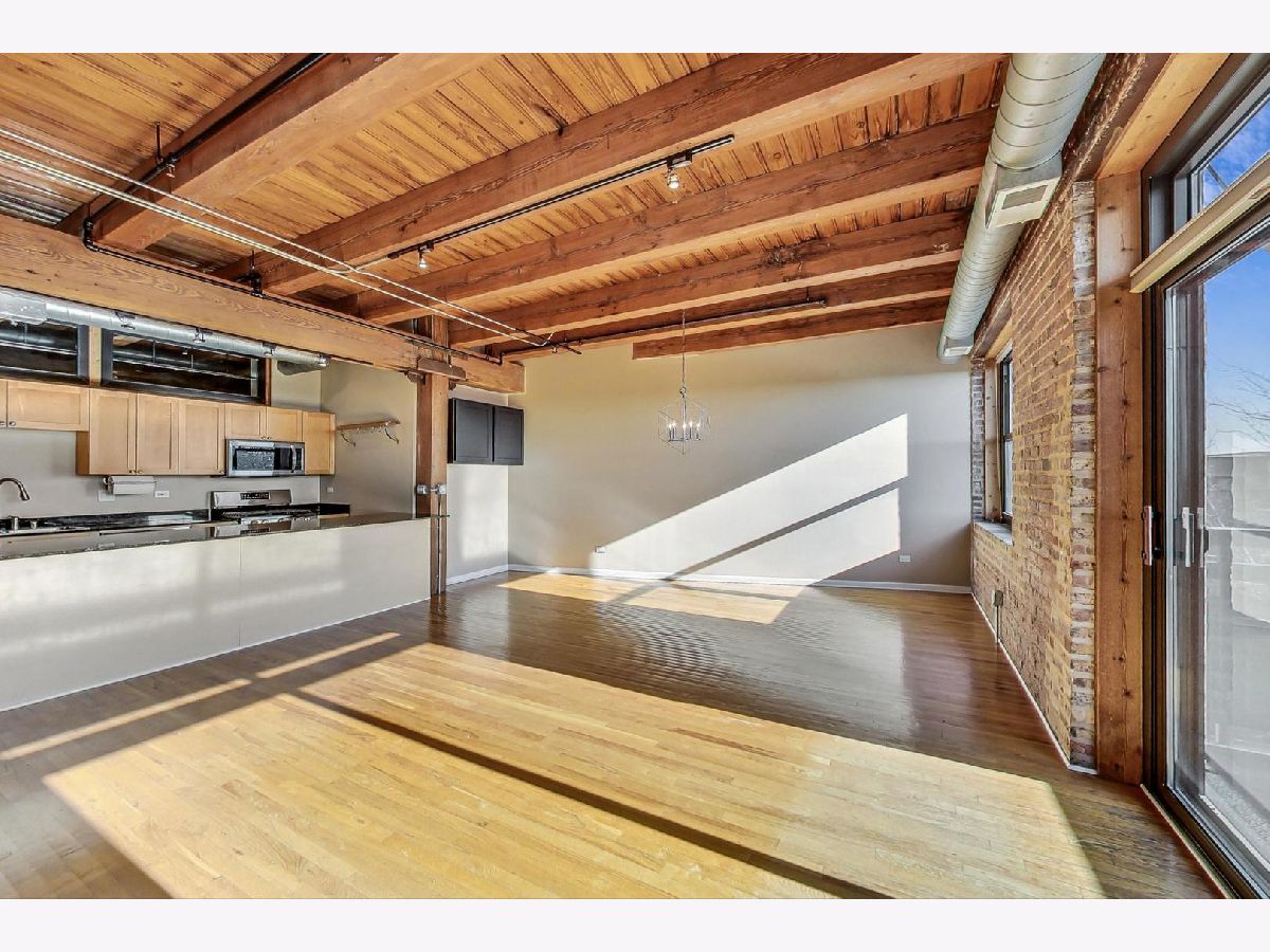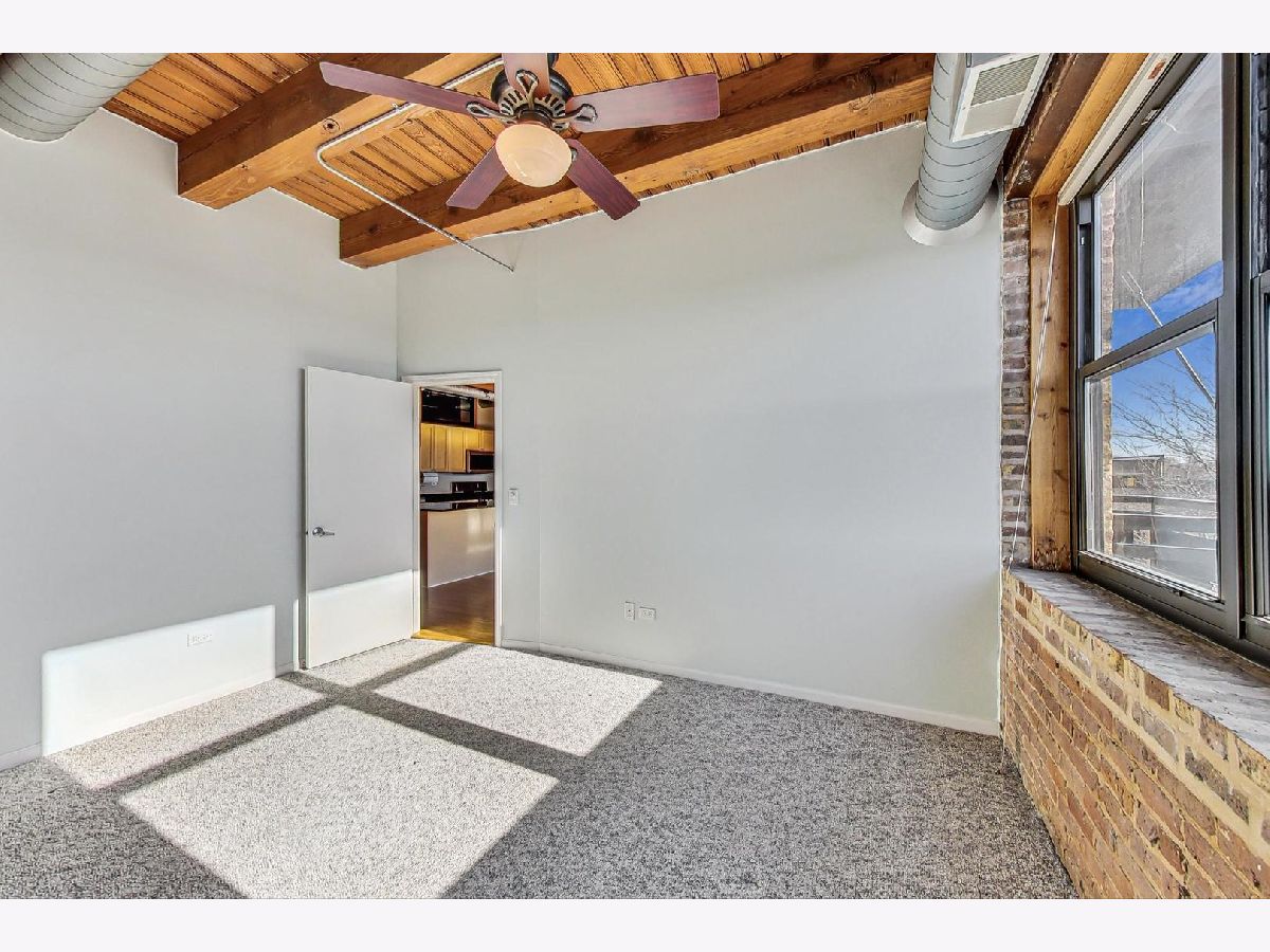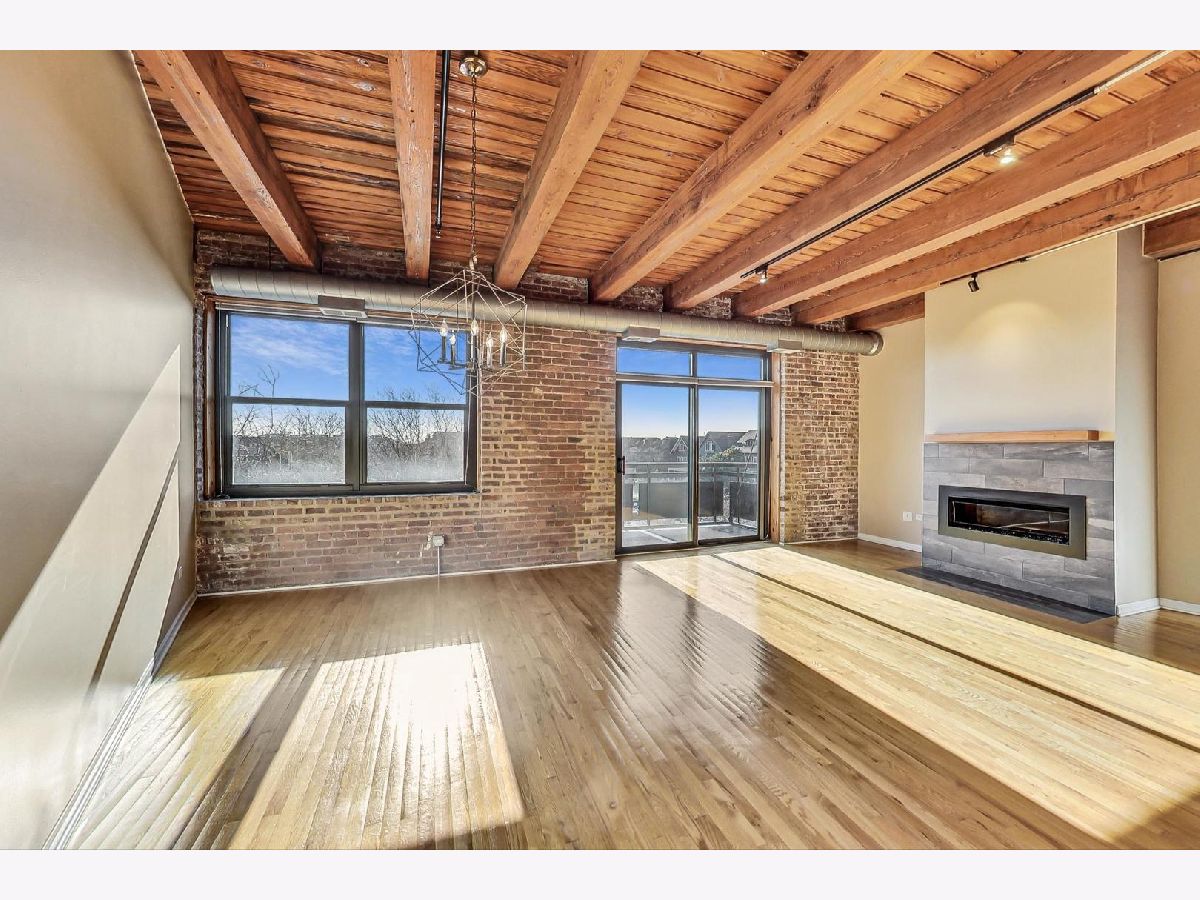 Welcome home to this rarely available south-facing 2 bed/2 bath brick and timber loft in the highly sought-after Regal Lofts in Lincoln Park! This coveted floor plan boasts an open-concept living space with hardwood floors, a chef's kitchen featuring newer appliances, ample cabinet space, granite countertops, and a spacious breakfast bar. The living room bathes in natural light from the southern exposure and showcases a newer remote starter gas fireplace. The living room effortlessly extends to the balcony, providing stunning skyline views that are also visible from both the living room and kitchen. The designated dining space features a newer light fixture and a nook with built-in cabinets perfect for a bar area or a small desk. The fully enclosed primary suite offers custom closets with Elfa-shelving and an en-suite bath with double sinks and a soaking tub/shower combo. The generously sized second bedroom is also fully enclosed with newer windows for ample natural light and custom elfa-closet. Both bedrooms also have newer carpeting. The second bath perfectly situated off the main hallway features a tub/shower combo. Additional amenities include a newer in-unit washer/dryer, linen closet, coat closet, and Nest thermostat. This home comes with one deeded exterior parking space in a secure gated lot, along with a storage cage in the basement. The well-run, pet-friendly, elevator building features an exercise room, dog run, Butterfly intercom system, and guest parking spaces. Nestled perfectly on the western perimeter of Lincoln Park, this residence is surrounded by top-rated schools, including the award-winning Prescott Elementary and Lincoln Park High School. A commuter's dream just minutes to 90/94 expressway and easy access to the bus and Diversey Brown line. The location is A+, offering proximity to Hamlin Park, Che-Chi Wang Park, Weibolt Park, Wrightwood Park, and Jahn Playground. Walk to Whole Foods, Jewel, Menards, Cost-Co, Midtown Athletic Club, Hexe Coffee, and the shops and restaurants of both Roscoe Village & Southport Corridor.
