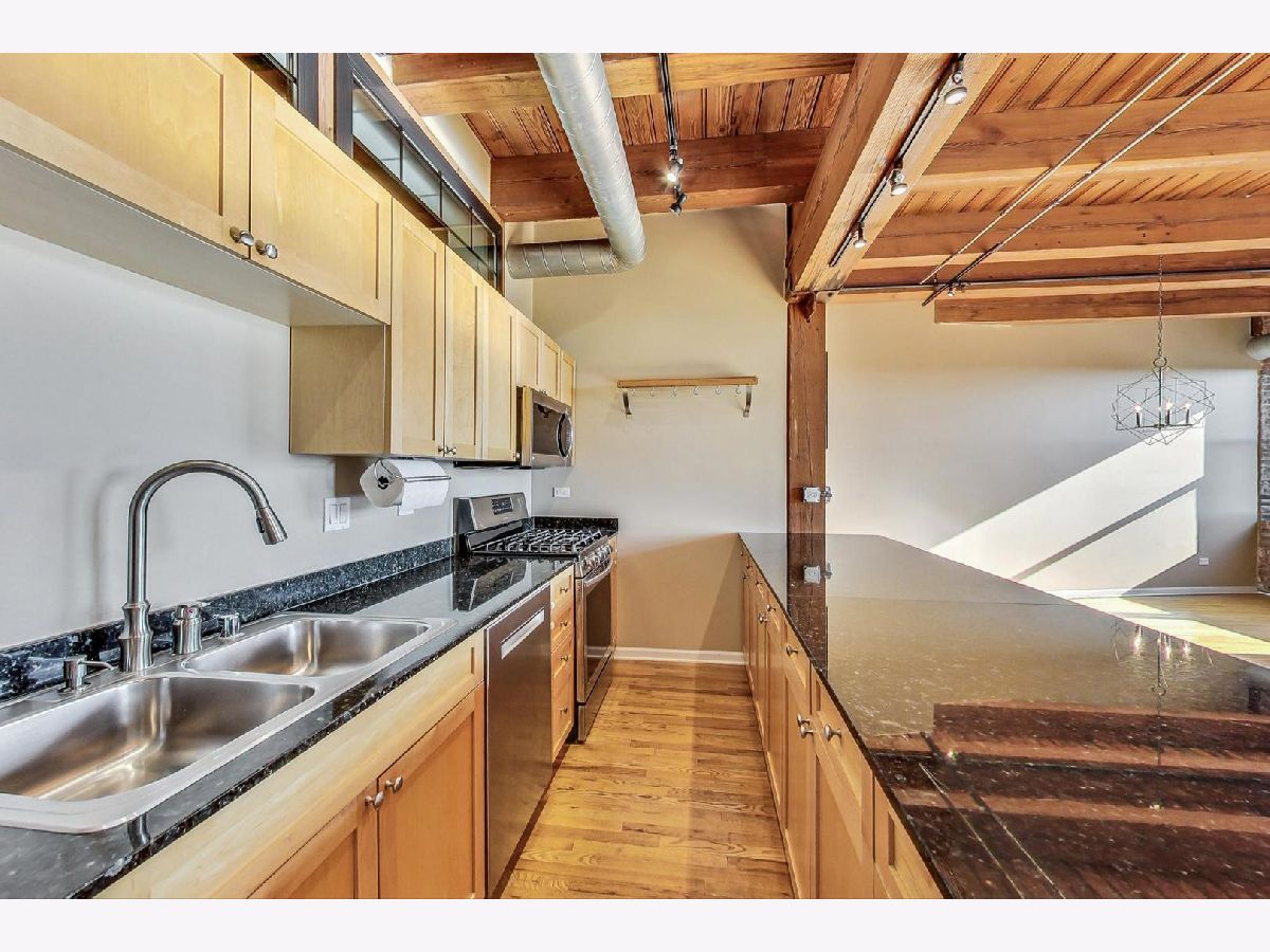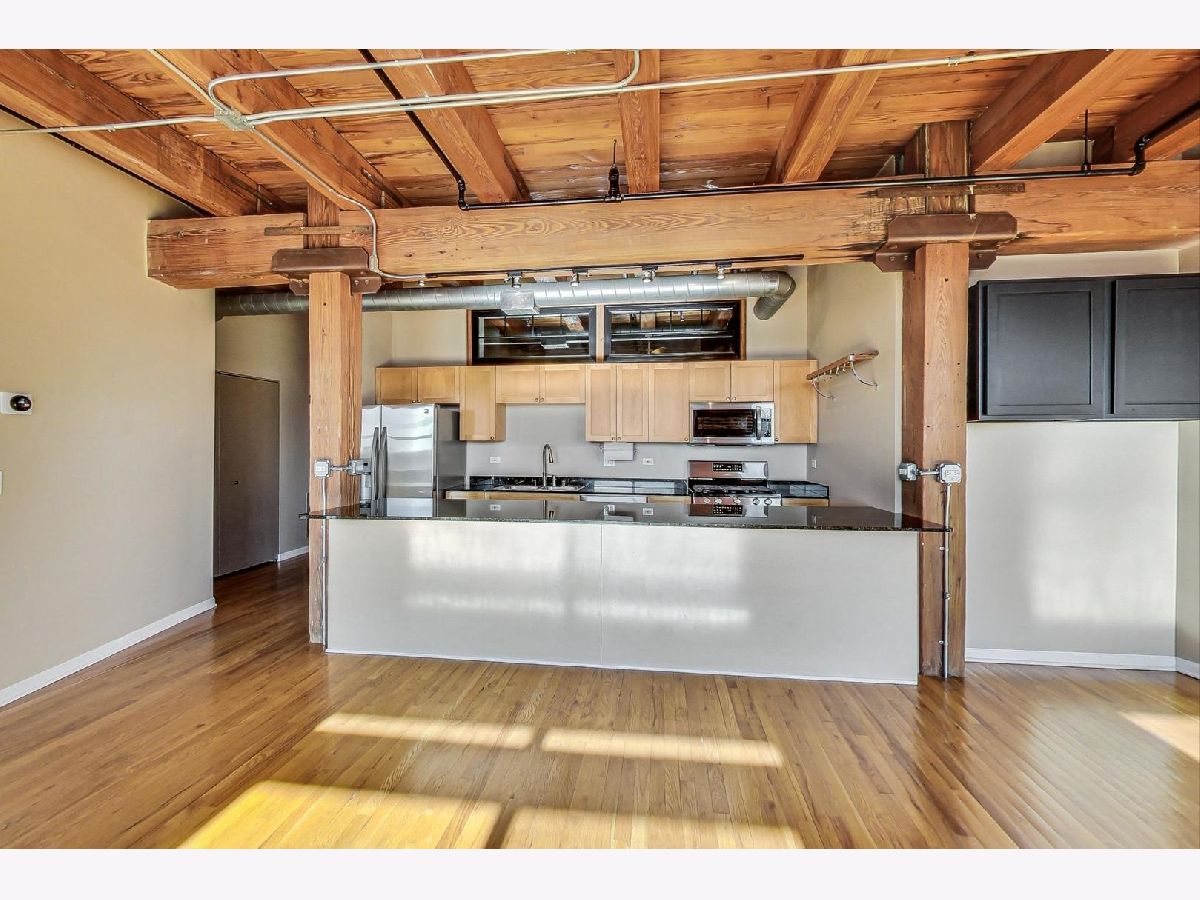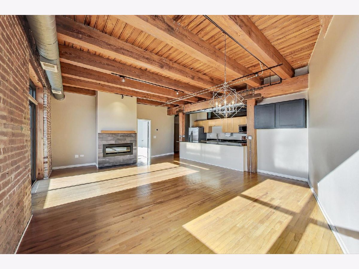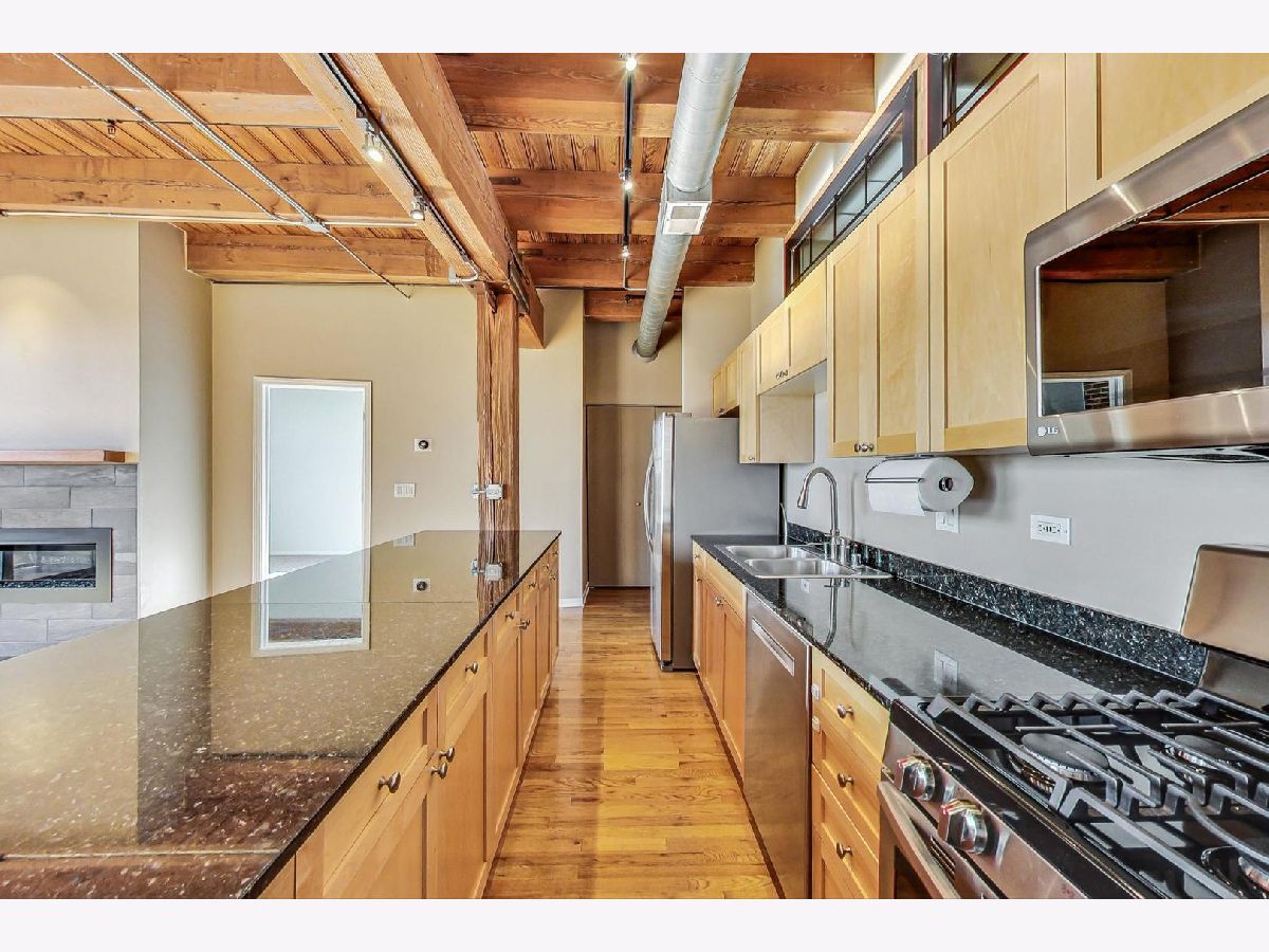 Welcome home to this rarely available south-facing 2 bed/2 bath brick and timber loft in the highly sought-after Regal Lofts in Lincoln Park! This coveted floor plan boasts an open-concept living space with hardwood floors, a chef's kitchen featuring newer appliances, ample cabinet space, granite countertops, and a spacious breakfast bar. The living room bathes in natural light from the southern exposure and showcases a newer remote starter gas fireplace. The living room effortlessly extends to the balcony, providing stunning skyline views that are also visible from both the living room and kitchen. The designated dining space features a newer light fixture and a nook with built-in cabinets perfect for a bar area or a small desk. The fully enclosed primary suite offers custom closets with Elfa-shelving and an en-suite bath with double sinks and a soaking tub/shower combo. The generously sized second bedroom is also fully enclosed with newer windows for ample natural light and custom elfa-closet. Both bedrooms also have newer carpeting. The second bath perfectly situated off the main hallway features a tub/shower combo. Additional amenities include a newer in-unit washer/dryer, linen closet, coat closet, and Nest thermostat. This home comes with one deeded exterior parking space in a secure gated lot, along with a storage cage in the basement. The well-run, pet-friendly, elevator building features an exercise room, dog run, Butterfly intercom system, and guest parking spaces. Nestled perfectly on the western perimeter of Lincoln Park, this residence is surrounded by top-rated schools, including the award-winning Prescott Elementary and Lincoln Park High School. A commuter's dream just minutes to 90/94 expressway and easy access to the bus and Diversey Brown line. The location is A+, offering proximity to Hamlin Park, Che-Chi Wang Park, Weibolt Park, Wrightwood Park, and Jahn Playground. Walk to Whole Foods, Jewel, Menards, Cost-Co, Midtown Athletic Club, Hexe Coffee, and the shops and restaurants of both Roscoe Village & Southport Corridor.