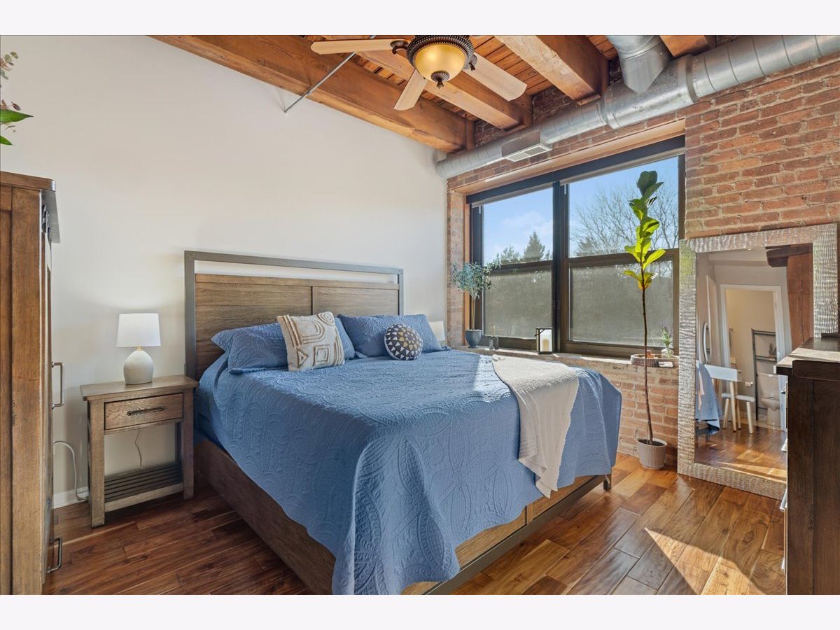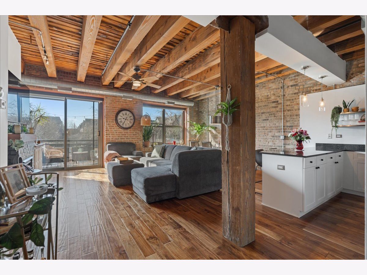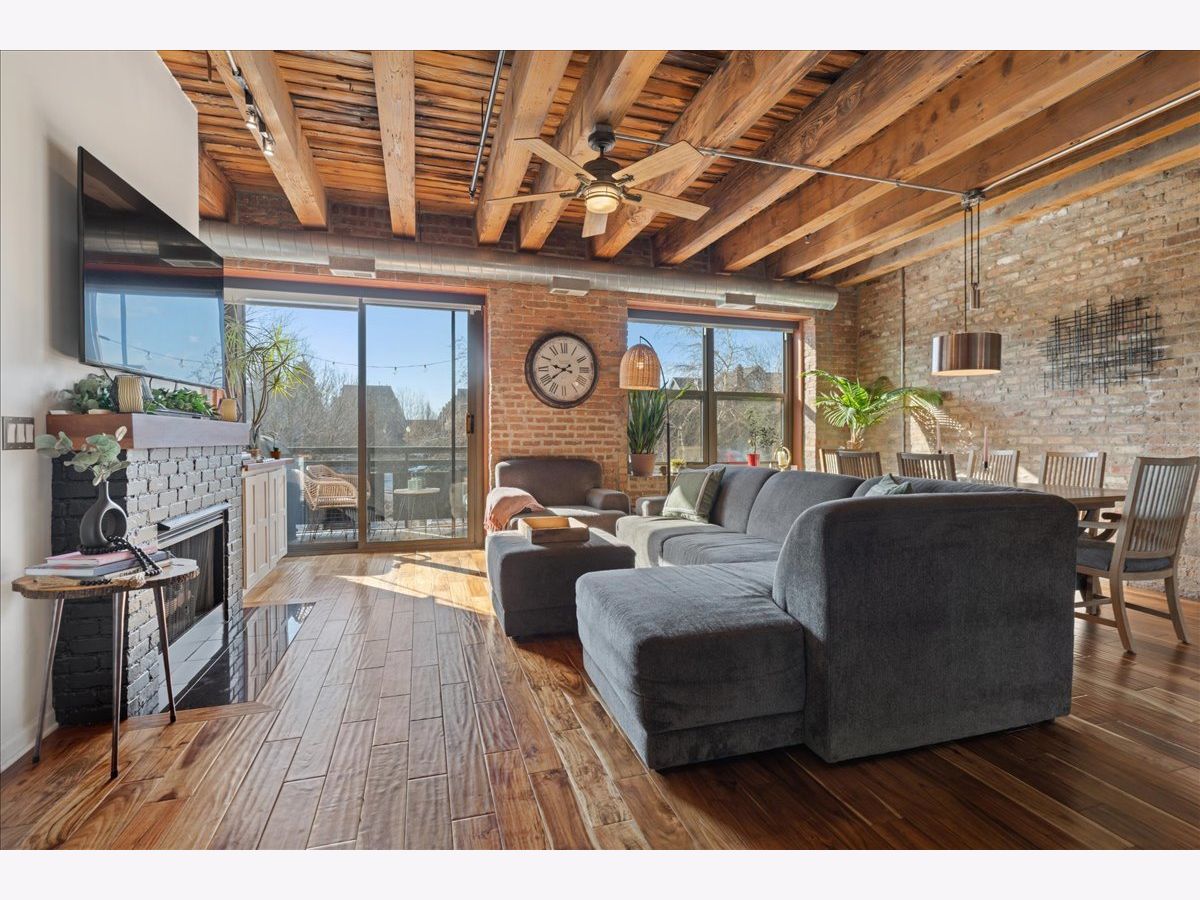 You won't want to miss this stunning 2-bedroom, 2-bath all brick-and-timber loft in the highly desirable Regal Lofts in Lincoln Park. Ideally situated on the southeast side of the building with minimal street noise, this home blends character and comfort with exposed brick and timber beams, exposed ductwork, hardwood floors throughout, oversized windows, and abundant natural light. The spacious open-concept living area is perfect for both living and dining, featuring a fireplace and a private walk-out balcony. The large kitchen offers granite countertops, stainless steel appliances, and an eat-in breakfast bar ideal for entertaining or everyday living. The fully enclosed primary suite includes an en-suite bath with double vanity and soaking tub/shower combo. A second generously sized bedroom and full bathroom are located off the main hallway. Additional highlights include linen and coat closets, a new in-unit washer/dryer, and a dedicated storage cage. TWO deeded parking spaces are included in the price; one heated garage space and one outdoor space in a secure gated lot. Regal Lofts is a well-managed, pet-friendly elevator building offering an exercise room, dog run, ButterflyMX intercom system, and guest parking. Conveniently located minutes from I-90/94, the Diversey Brown Line, and multiple bus routes, you'll also enjoy being steps from parks, Midtown Athletic Club, Whole Foods, Costco, restaurants and dining.