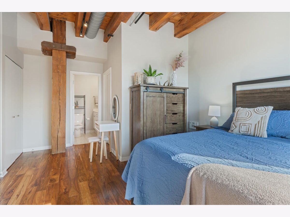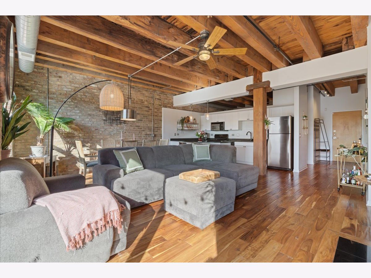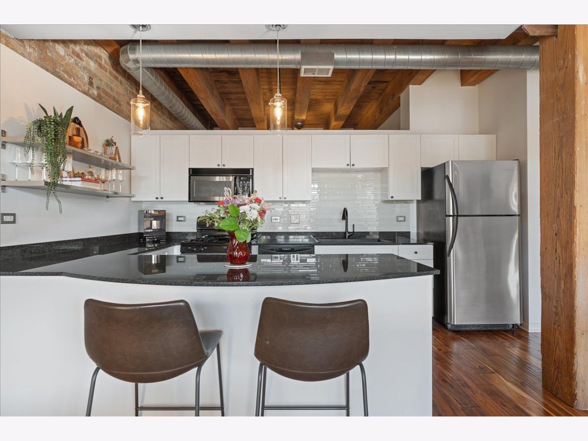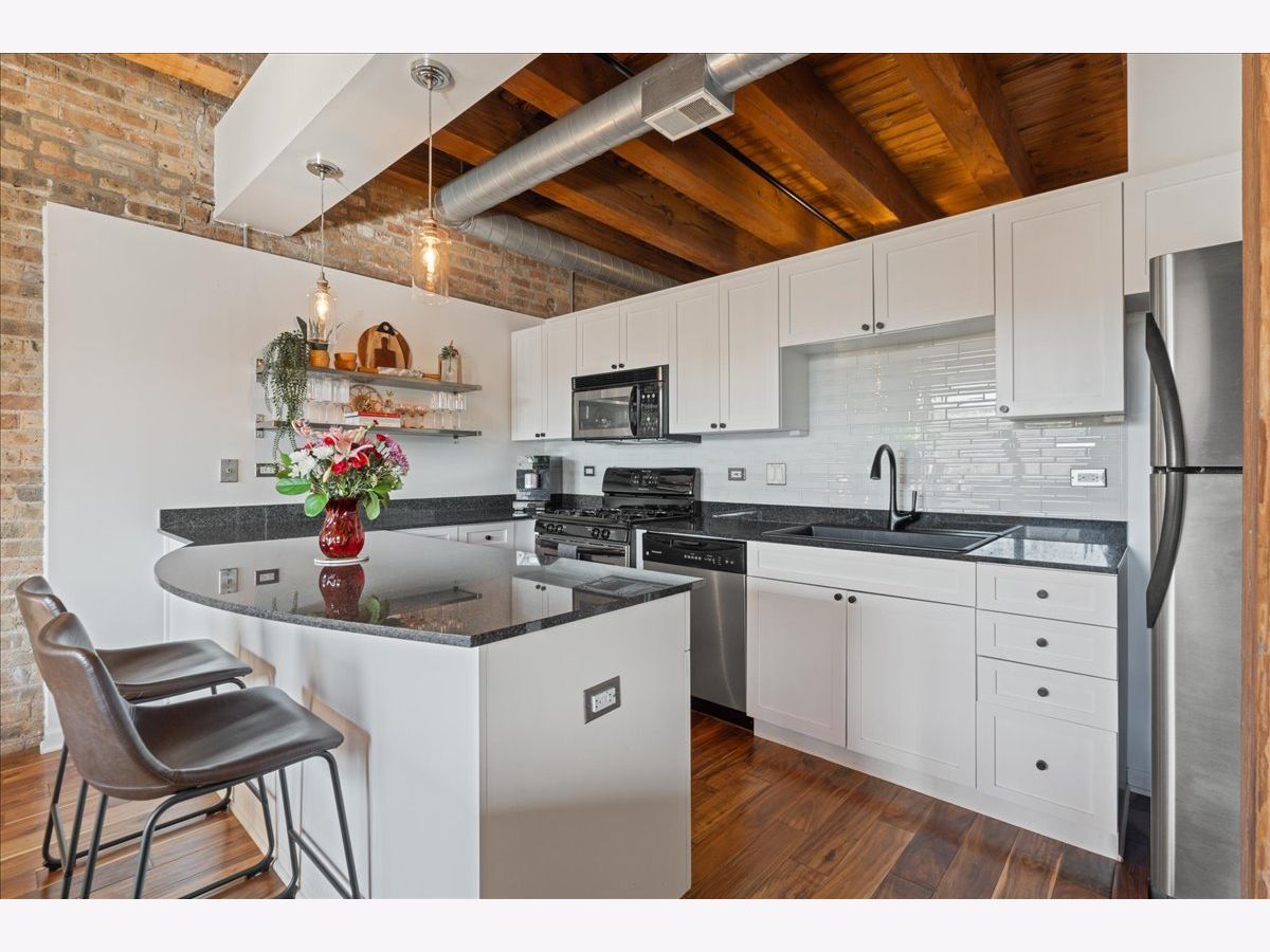 You won't want to miss this stunning 2-bedroom, 2-bath all brick-and-timber loft in the highly desirable Regal Lofts in Lincoln Park. Ideally situated on the southeast side of the building with minimal street noise, this home blends character and comfort with exposed brick and timber beams, exposed ductwork, hardwood floors throughout, oversized windows, and abundant natural light. The spacious open-concept living area is perfect for both living and dining, featuring a fireplace and a private walk-out balcony. The large kitchen offers granite countertops, stainless steel appliances, and an eat-in breakfast bar ideal for entertaining or everyday living. The fully enclosed primary suite includes an en-suite bath with double vanity and soaking tub/shower combo. A second generously sized bedroom and full bathroom are located off the main hallway. Additional highlights include linen and coat closets, a new in-unit washer/dryer, and a dedicated storage cage. TWO deeded parking spaces are included in the price; one heated garage space and one outdoor space in a secure gated lot. Regal Lofts is a well-managed, pet-friendly elevator building offering an exercise room, dog run, ButterflyMX intercom system, and guest parking. Conveniently located minutes from I-90/94, the Diversey Brown Line, and multiple bus routes, you'll also enjoy being steps from parks, Midtown Athletic Club, Whole Foods, Costco, restaurants and dining.