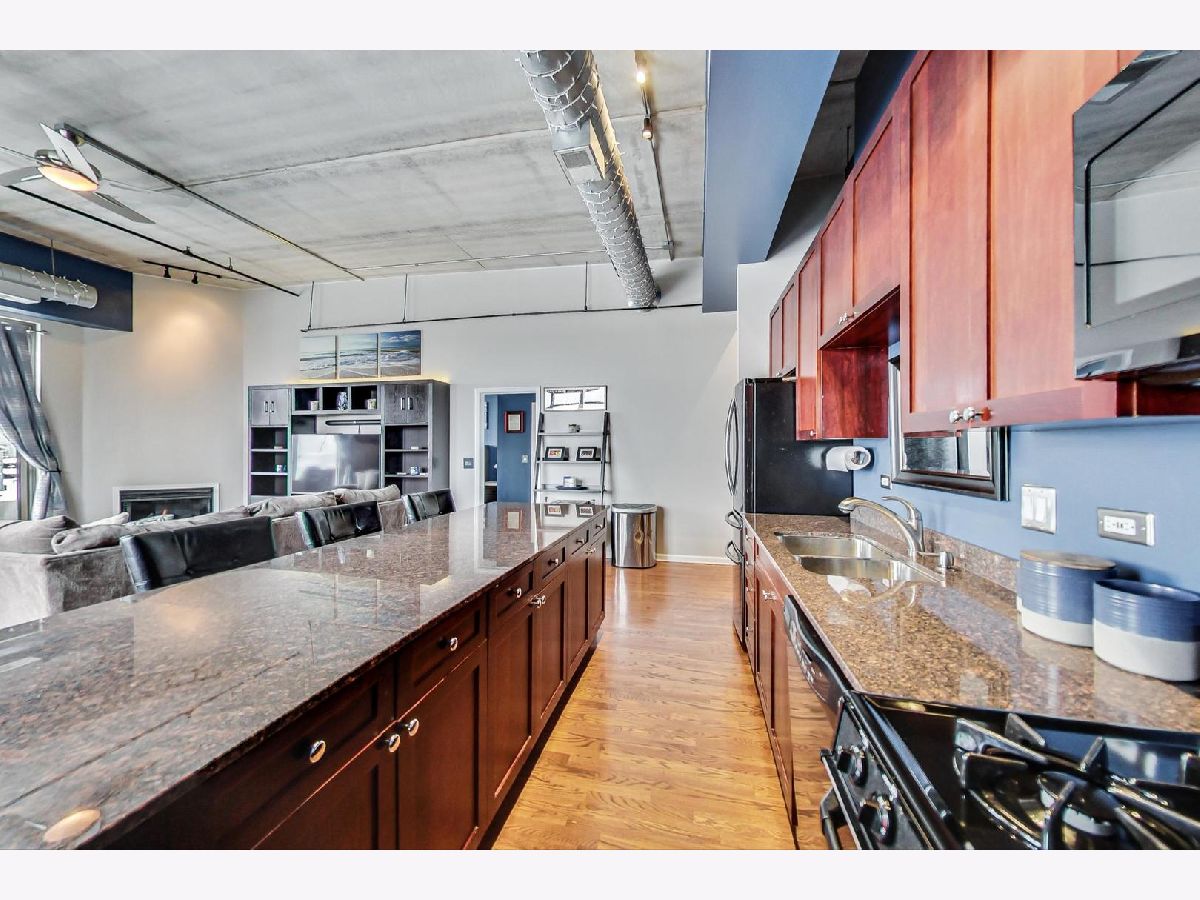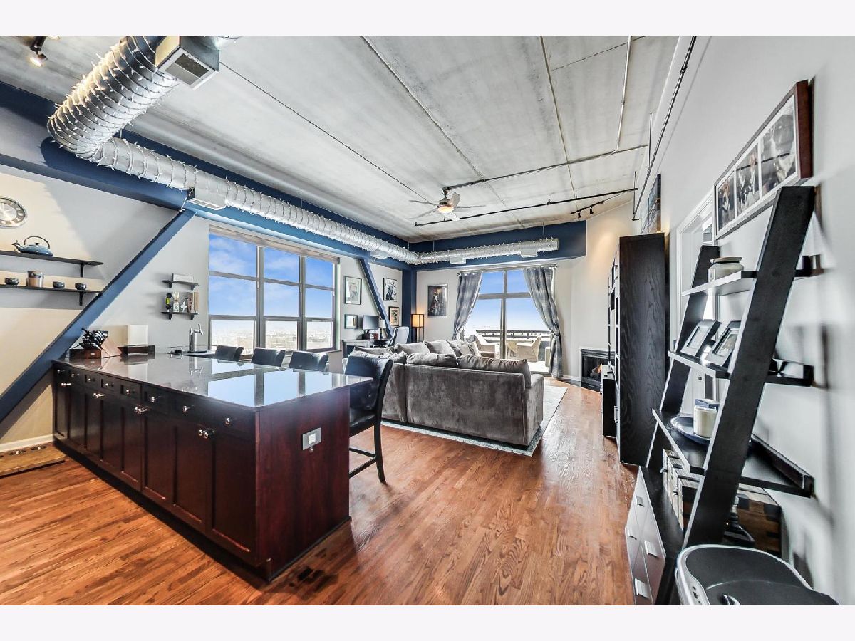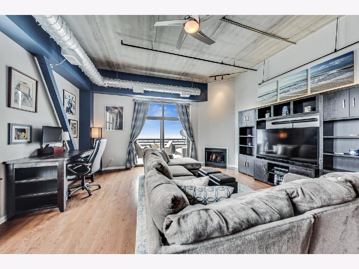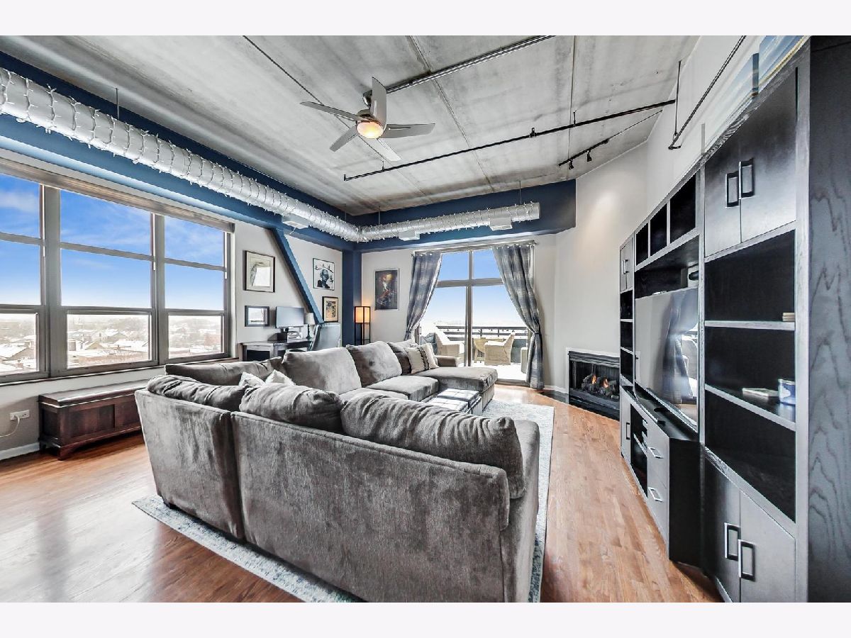 Breathtaking skyline views from this top floor 2bd/2ba condo. South and east exposures flood this condo with natural light. Spacious balcony, hardwood floors, high ceilings, large windows, custom paint, gas fireplace, maple cabinets, granite countertops, updated appliances including fridge, microwave, and garbage disposal, new in unit laundry, open floor plan, bedrooms have updated carpet, custom (California) closets, master bath includes double vanity and large tub, updated vanity in guest bath, and new hot water heater. The building has a fitness center with cable TVs and high speed internet for streaming during workouts, extra storage, bike rack, dog park, and updated security system. Deeded garage spot, best in the building, also available for $20k.