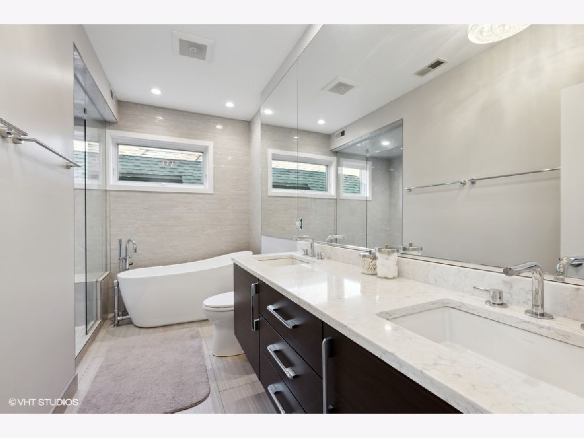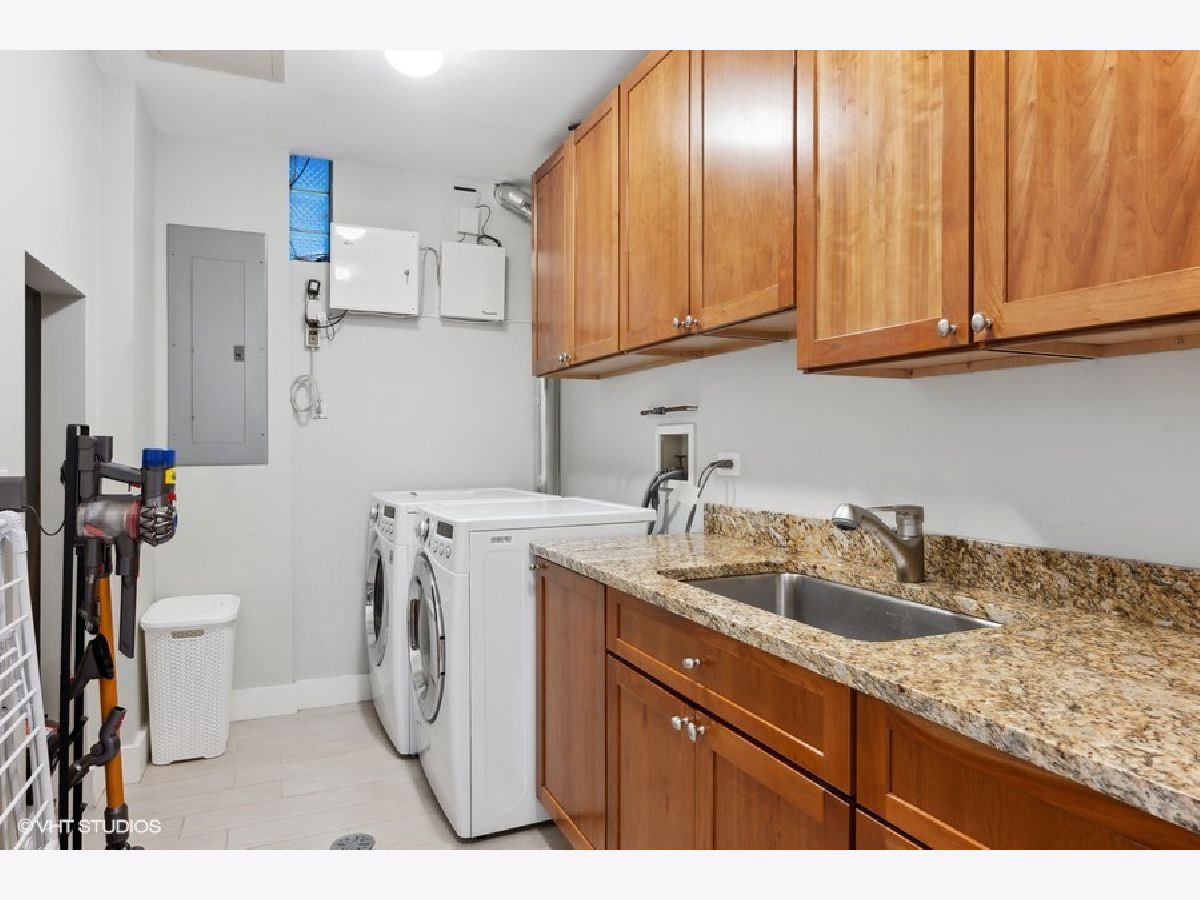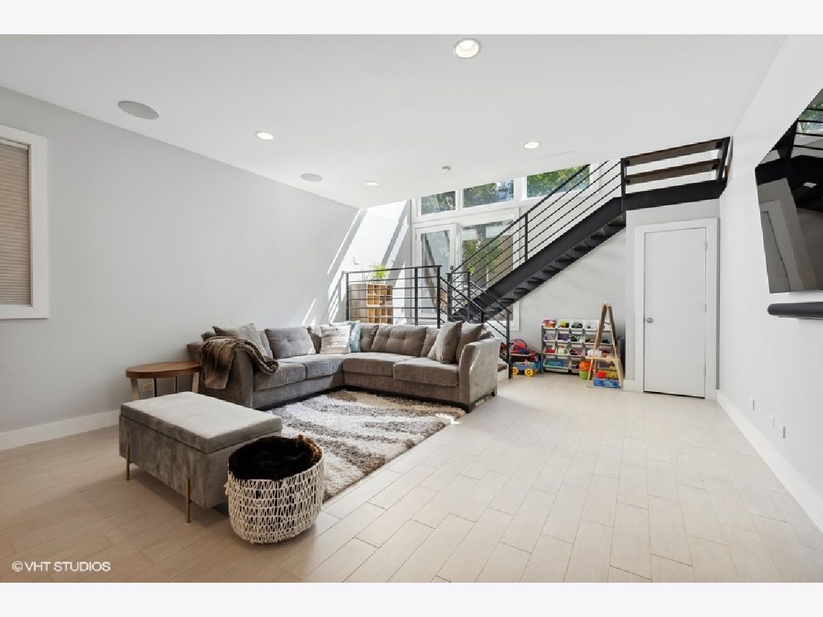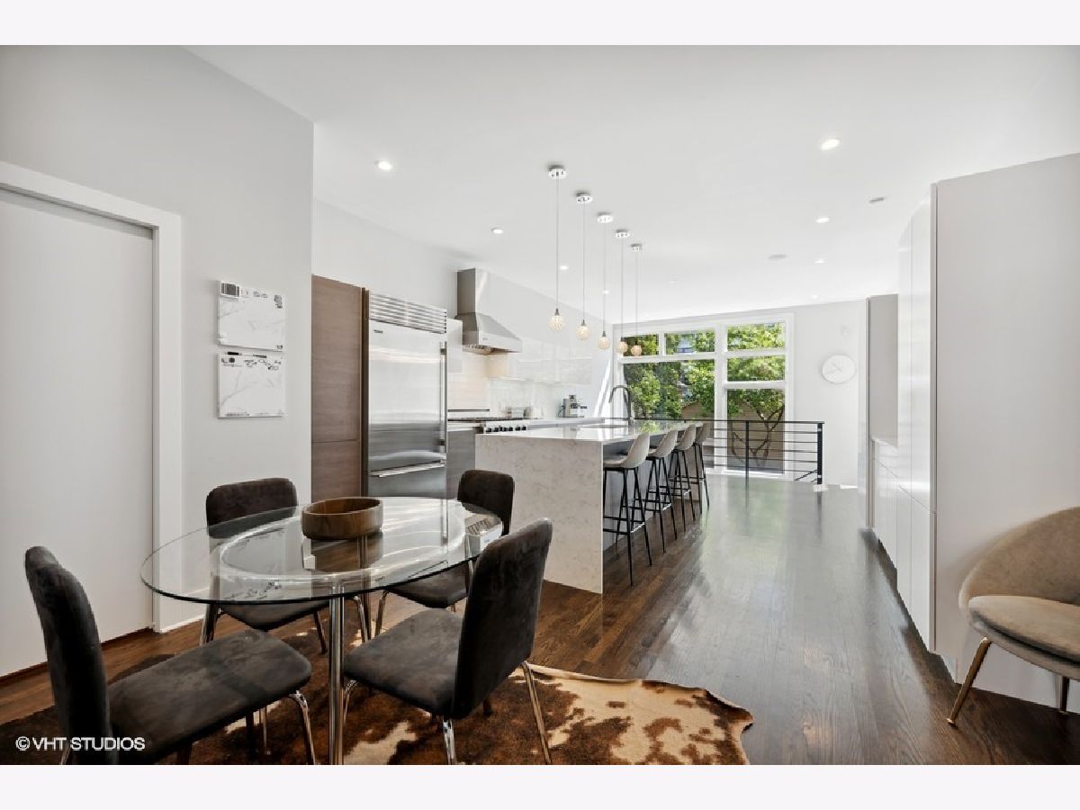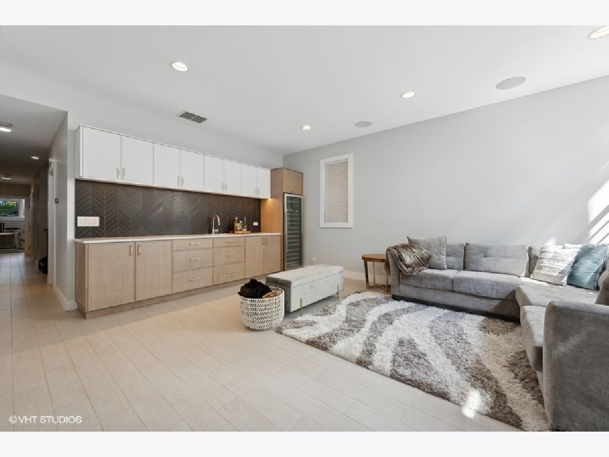 Beautiful, contemporary and well-maintained single family home in one of the best locations in Bucktown. This architecturally stunning 4 bed/3.5 bath with thoughtful updates, amazing staircase, high ceilings, gorgeous central skylight, roofdeck with skyline views and landscaped patio. The open floor plan flows easily from the warm living room to dining room and the beautifully updated chef's kitchen. The recently updated kitchen features custom European cabinets, high-end appliances including a Sub-Zero fridge, Viking gas stove, Miele dishwasher and Bosch drawer microwave with a 10-feet quartz countertop island and glass backsplash, perfect for entertaining. There is plenty of cabinet storage with additional pantry cabinets and countertop space. The upper level has 3 bedrooms, with a main bedroom that has a spacious walk-in custom closet as well as an additional closet. The main bath was recently updated with a walk-in steam shower, freestanding tub and radiant flooring. The other two bedrooms are spacious with custom closets, while the second bathroom is updated with Italian tiles. The lower level features radiant heat, and has a family room with a wet bar and large wine fridge, an additional bedroom, bathroom and large laundry room. Many storage closets and rooms in the lower level. Integrated speakers in the living room, dining room, kitchen, family room, rooftop and back patio. The newly refinished rooftop deck has a gorgeous skyline view with a complete irrigation system and there is an option to add another rooftop deck. The back patio also features an irrigation system and matured landscaping, perfect for grilling and entertaining. Close to the 606, parks, school and highway. Broker owned.