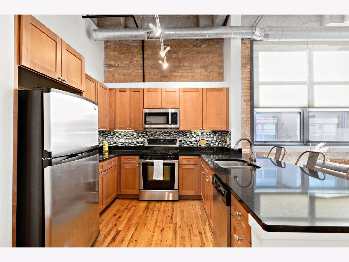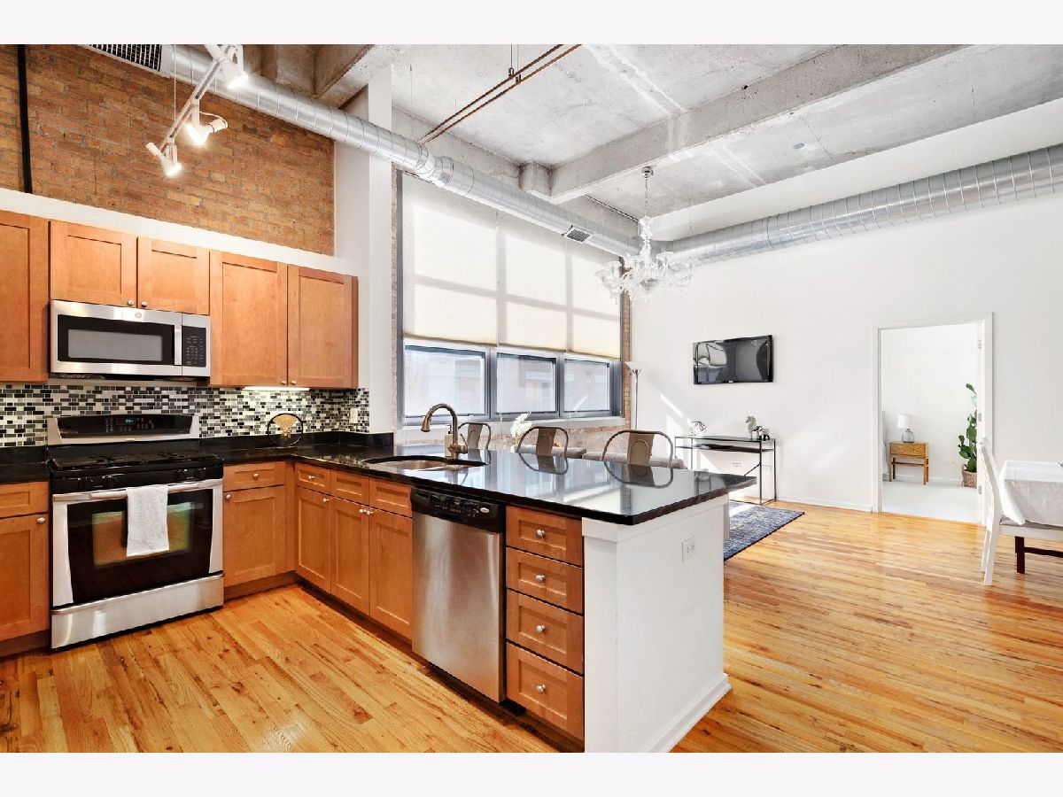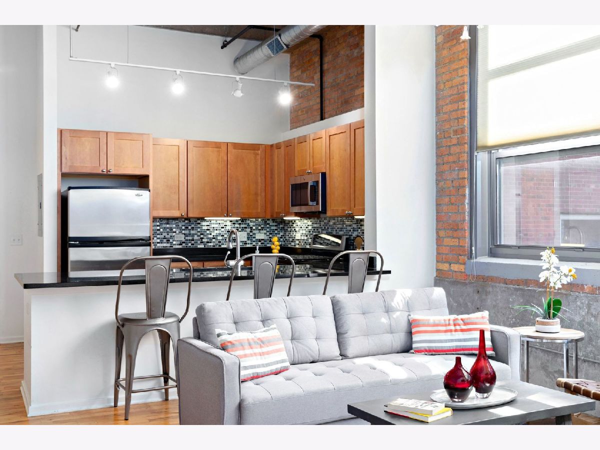 Welcome home to this gorgeous concrete loft with a dramatic ceiling and beautiful natural light that floods in from the courtyard-facing wall of windows. The 13ft+ ceiling height and large floor plan allow the space to feel open, yet homey and inviting. The unit features hardwood floors, an open living/dining layout, granite counters, maple cabinets with stainless steel appliances, a large primary suite with dual closets & a generous-sized master bath with a soaking tub & a separate shower. The building amenities include a lobby with Amazon locker, party room, courtyard, gym, and sundeck. The building's assessments also include your parking, cable & internet. Both the 606 Trail and Walsh Park are right outside the door.
