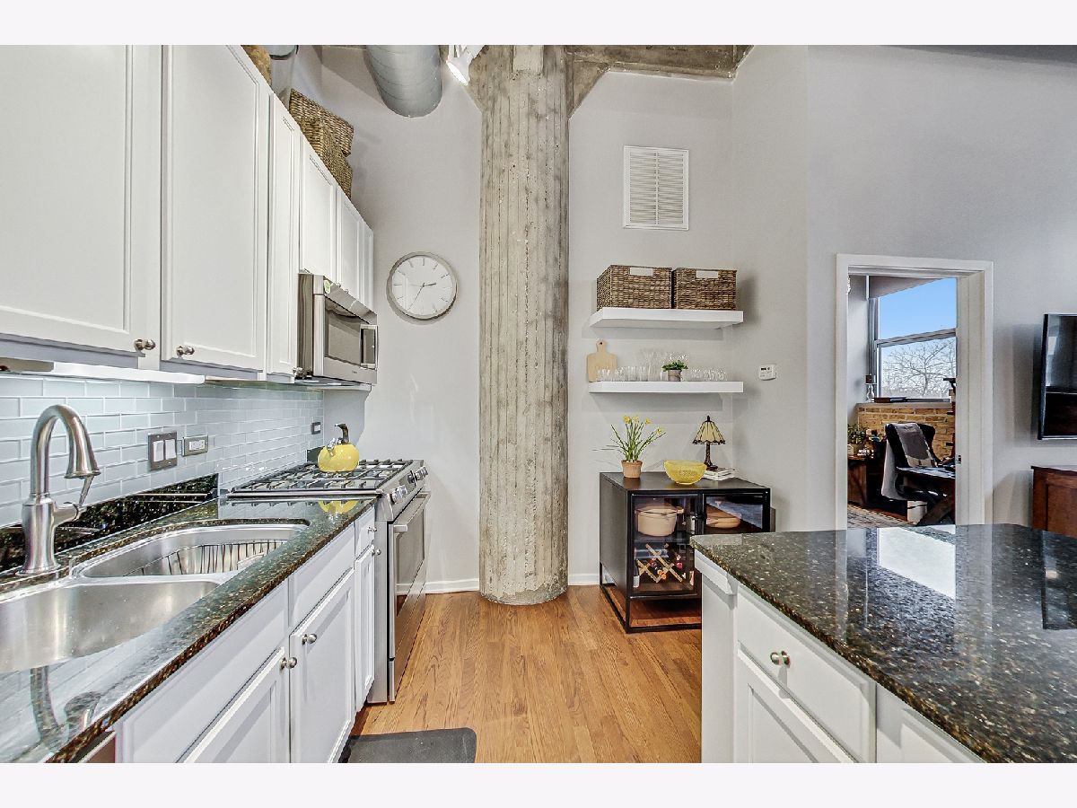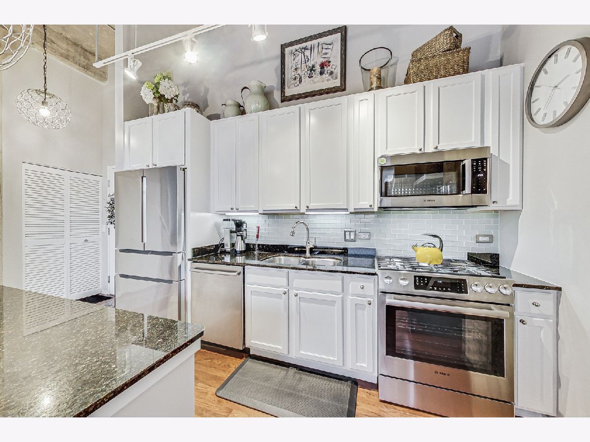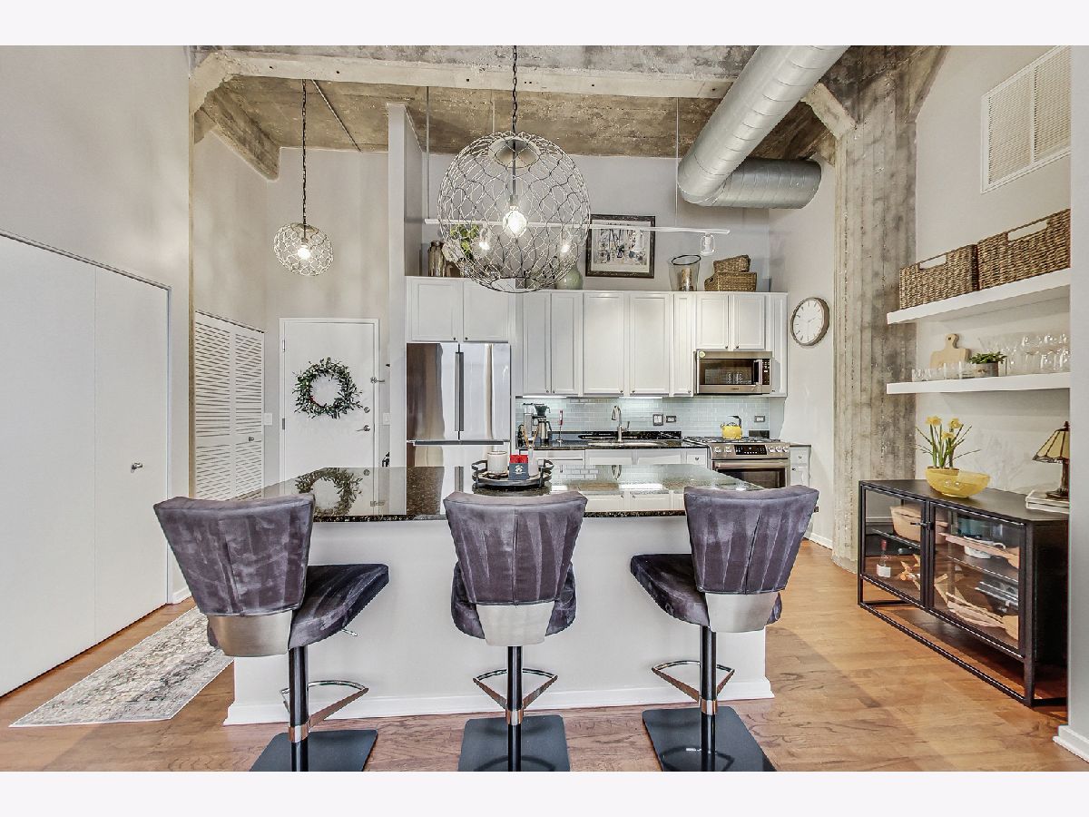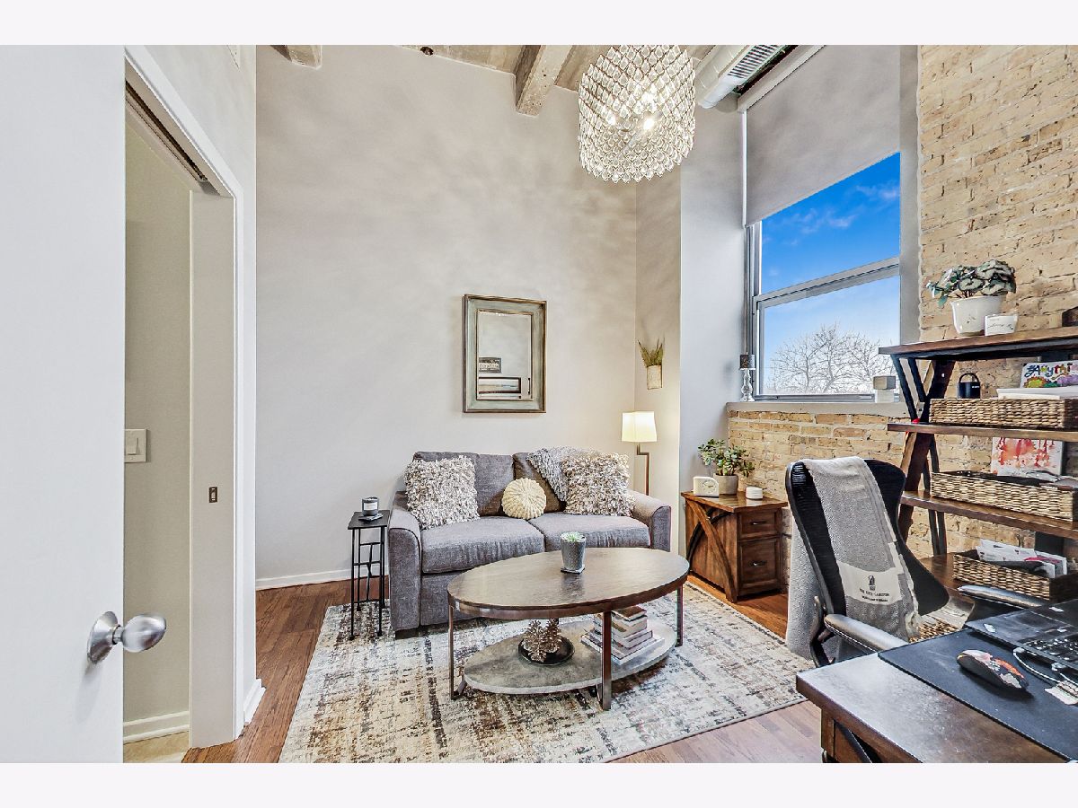 Welcome home to this thoughtfully updated and impeccably well-maintained 2 bed, 2 bath loft just off the 606. This home features 14-foot ceilings (!), charming exposed brick, large windows (in both fully-enclosed bedrooms!), a massive kitchen island (with room for 4... or more!), beautiful hardwood floors, and endless updates throughout the home. The kitchen has been thoughtfully designed, including a reconfiguration of the space to allow for additional storage.The primary bedroom features an updated en suite bathroom with double sinks, shower and separate tub, and a large walk-in closet outfitted with a custom Elfa closet system. The secondary bedroom, with its own en-suite bath, is perfect for a guest room, an office, a workout space... whatever you can imagine! Recent updates include: all new kitchen appliances, new washer/dryer, new AC condenser, newer high-efficiency furnace (5 years old), electric blinds, new quartz countertops in both bathrooms, updated kitchen cabinets and backsplash, new Pottery Barn light fixtures, and more! Pac Lofts is a high amenity building with a roof deck with grills and amazing city views, a gym, a party room with pool table, Amazon Hub and more. Step outside and you're a short walk to Walsh Park, the 606 (only a block away!), and the Damen Blue Line, as well as all the amazing Bucktown and Wicker Park restaurants and stores lining North Ave and Milwaukee Ave (Etta! Club Lucky! Piece! Big Star!) One exterior parking space and additional storage included in the price.