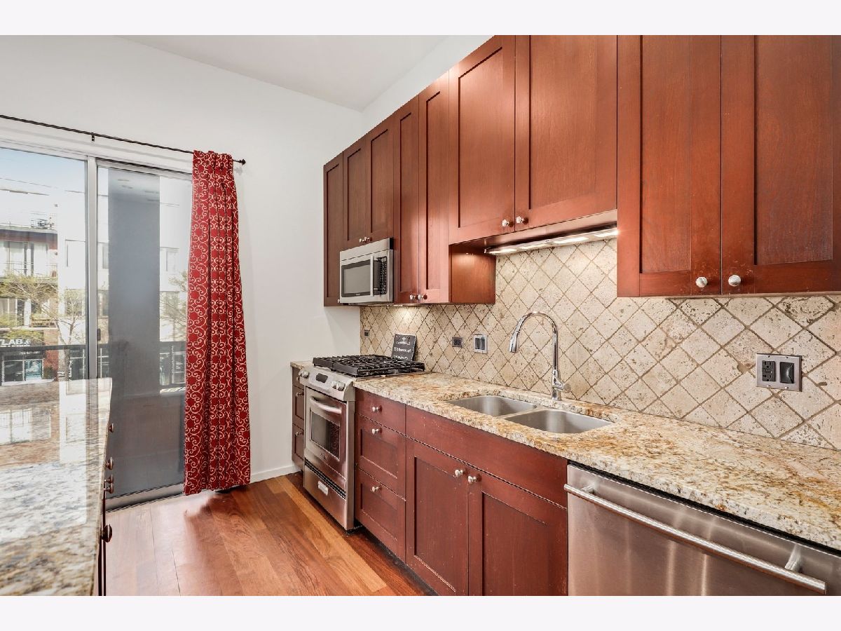 Great location and wonderful space inside! Home features great layout, all brick building, outdoor space off of kitchen and in master bedroom. Hardwood floors throughout , freshly painted and high ceilings. Well maintained and ready to move in. Garage parking included. Close to train, restaurants, shopping and all that Bucktown has to offer.