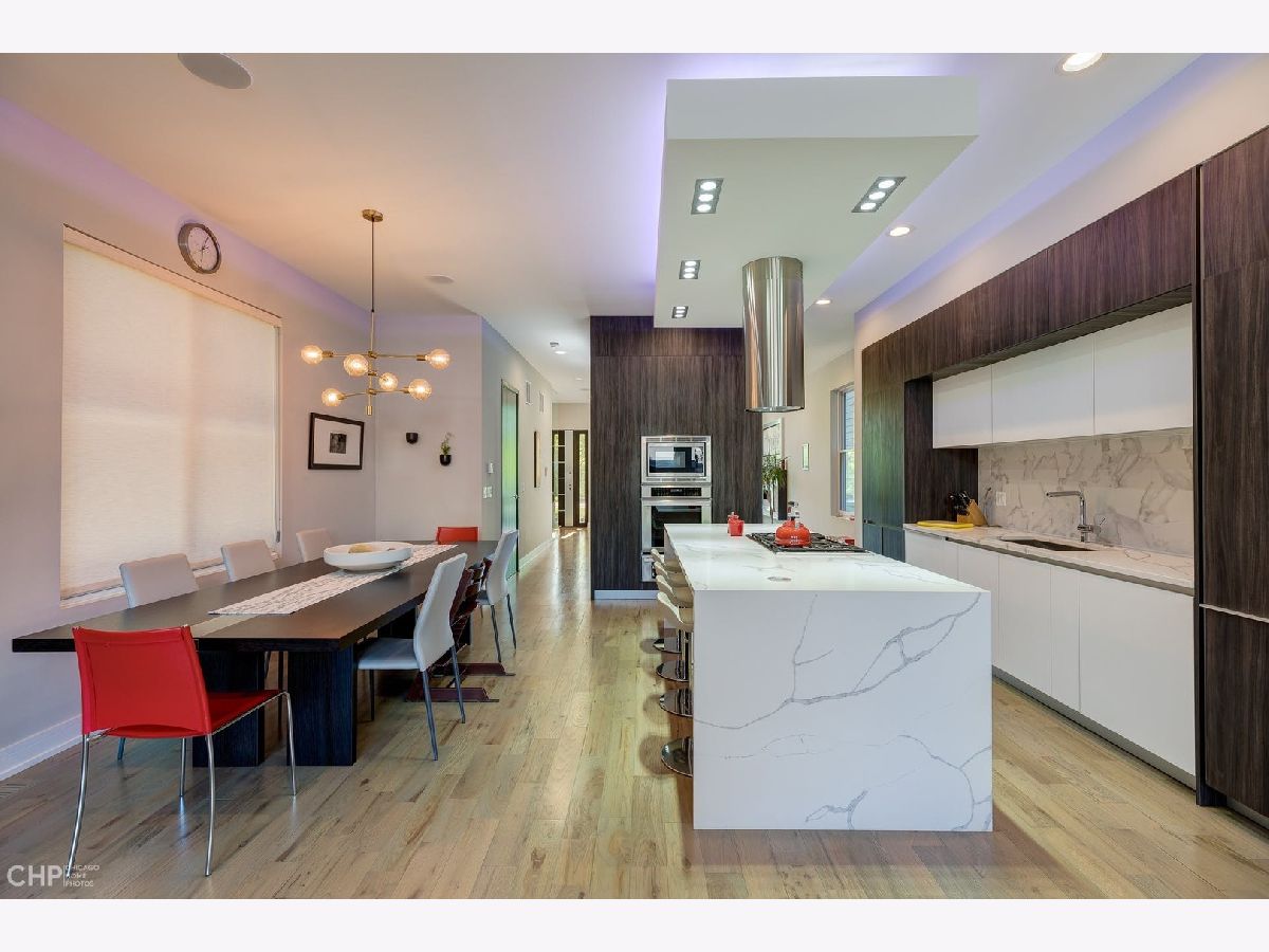 Spectacular Logan Square home on historic Humboldt Boulevard. This modern home offers luxury and comfort, entering the home you appreciate the open concept space. A dedicated dining room with satin brass lighting will be fantastic for dinner parties or family gatherings. A casual sitting space offers views out of your massive floor to ceiling east facing windows with views of the boulevard. A butler pantry is great for dinner prep or cocktails. Discrete 1/2 bath is located on the main floor as well as a coat closet. The contemporary kitchen is sure to please the casual chef and home cooks with custom Italian cabinetry and quartz counters. Upgraded Thermador appliance package including warming drawer, paneled appliances and range hood. Kitchen offers ample dining space and opens to your massive family room, great for relaxing and entertaining. 2nd floor offers 2 guest bedrooms with a sleek bathroom - tons of storage in this home including linen closet ad hall closet (2nd floor is ready for washer dryer, sellers opted to put in lower level). The Primary suite is luxurious with fantastic natural light and a walk-in closet. Primary bath will be a fantastic place to unwind with dual vanities and spa like bath and a discreetly placed commode and heated floors. Lower level offers 2 well sized guest bedrooms serviced by full bath with heated floors. Walk in laundry room with built in storage. Large family room with wet bar completes the lower level. Dual zoned for efficiency & speakers installed for whole home audio. Roof deck is private and offers gorgeous views complete with trex decking with gas line for potential outdoor kitchen. Rear entrance offers custom mud room with walk out to your landscaped yard. 2 car garage which is ready for a deck if you need more outdoor space. Amazing location walkable to transportation, parks, entertainment and a stone's throw away from 606!