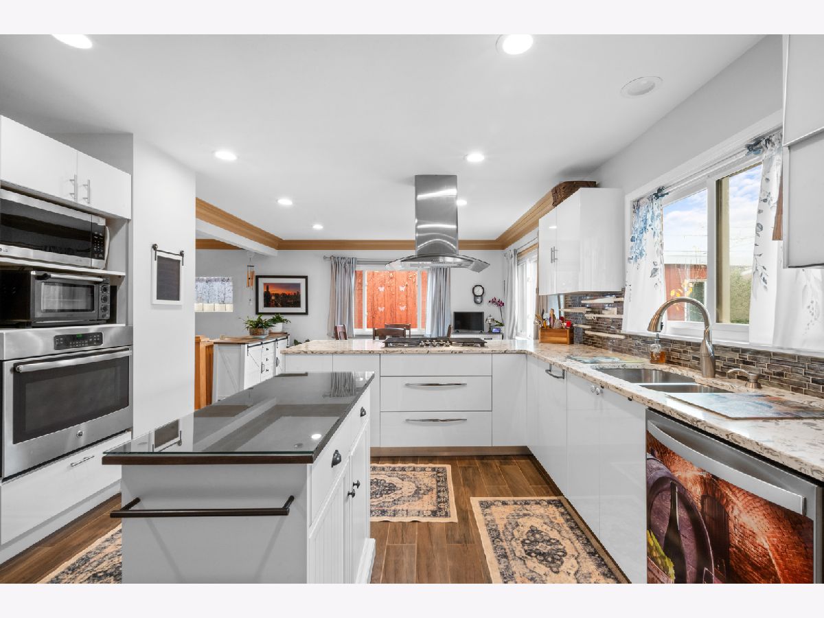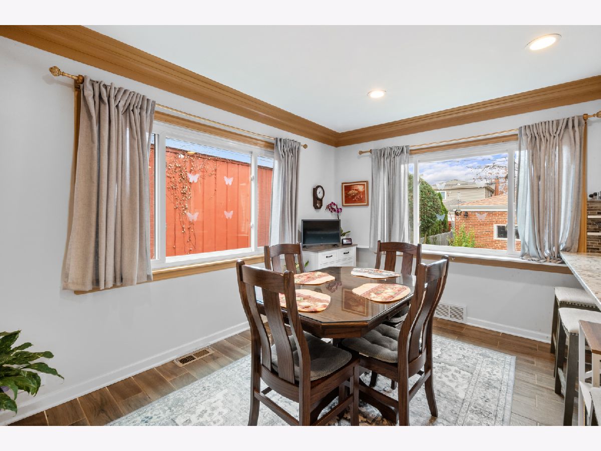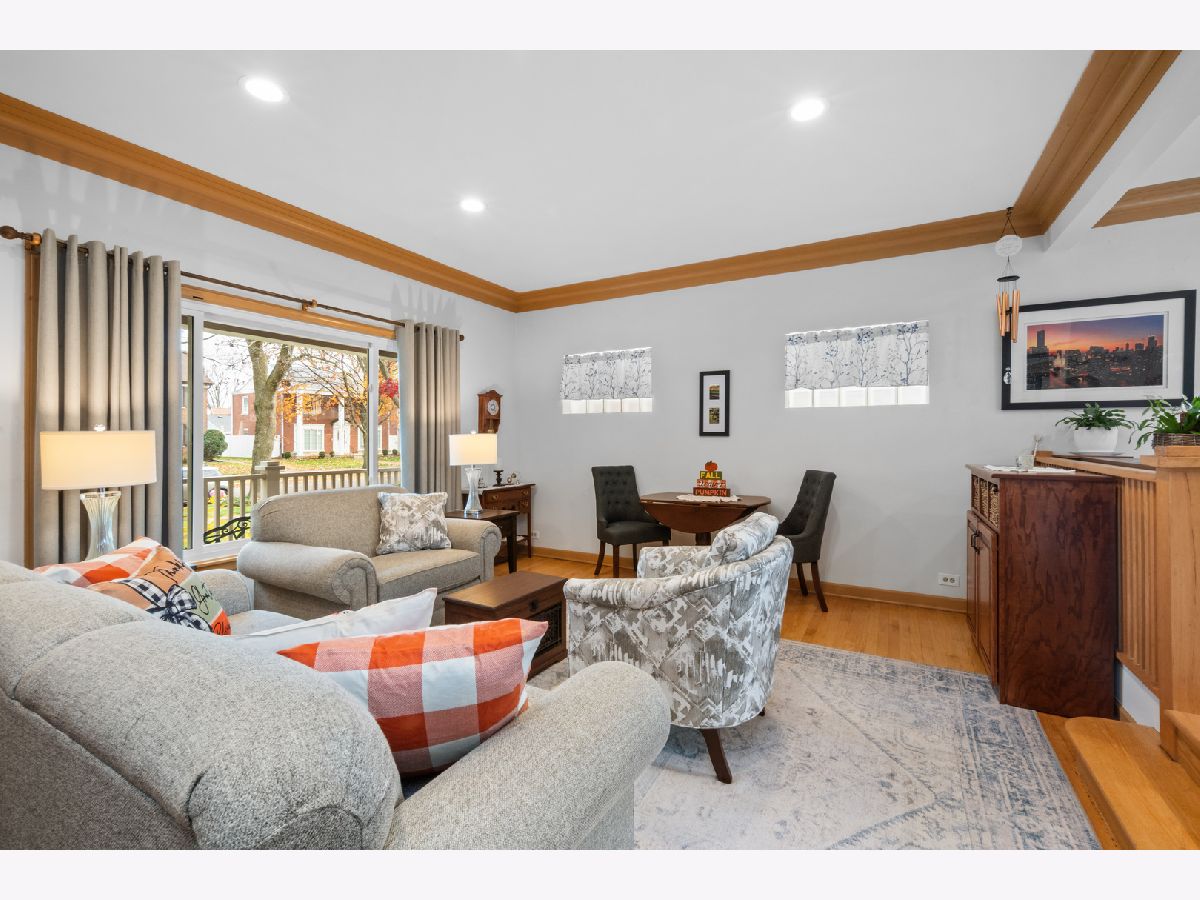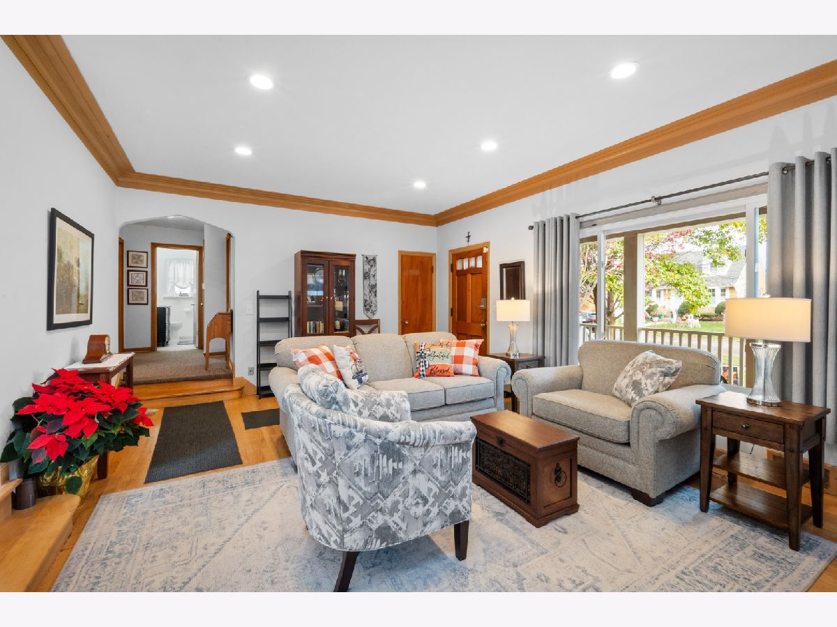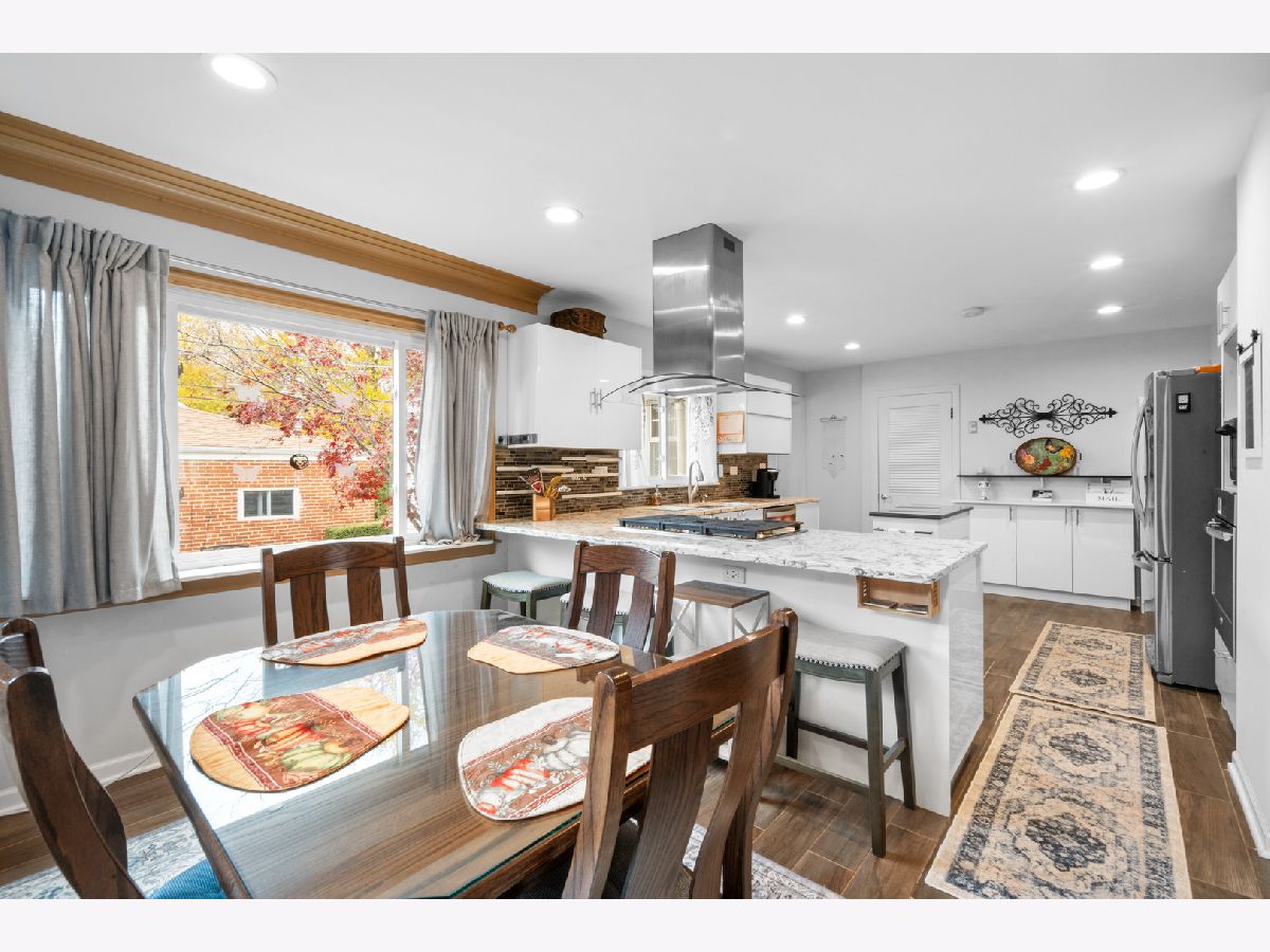 Rarely available ranch-style solid brick home in the highly sought-after Elmwood Park neighborhood! This charming home has so much to offer. As you approach, you'll be greeted by a beautiful front porch-perfect for enjoying a spring breeze. Step inside to a spacious living room featuring a large picture window overlooking the beautiful tree-lined street. The living room seamlessly flows into the dining area, where corner windows allow natural light to pour in. The kitchen has been thoughtfully remodeled with stunning countertops, high-quality white cabinets, and ample storage space. It's truly the heart of the home! The main floor offers three bedrooms, including a spacious primary suite with an en-suite bathroom. The primary bedroom is versatile and can also serve as a family room. Upstairs, you'll find a fourth bedroom that can be used as a home office, library, or private retreat. The basement is a fantastic space, offering additional living space that can be used as a family room, exercise area, or media room. Plus, there's plenty of storage in the utility area.The backyard is absolutely charming, featuring the perfect amount of green space and a brick-paved patio-ideal for outdoor seating, grilling, and a fire pit. Location is phenomenal! Enjoy easy access to downtown Chicago while living in a vibrant yet peaceful suburban neighborhood. It's just a 17-minute drive to O'Hare Airport, a short distance to grocery stores, fine dining on North Avenue, and conveniently close to St. Vincent School, Elmwood Park Elementary, and the middle school. Don't miss this incredible opportunity to own a beautiful home in Elmwood Park!
