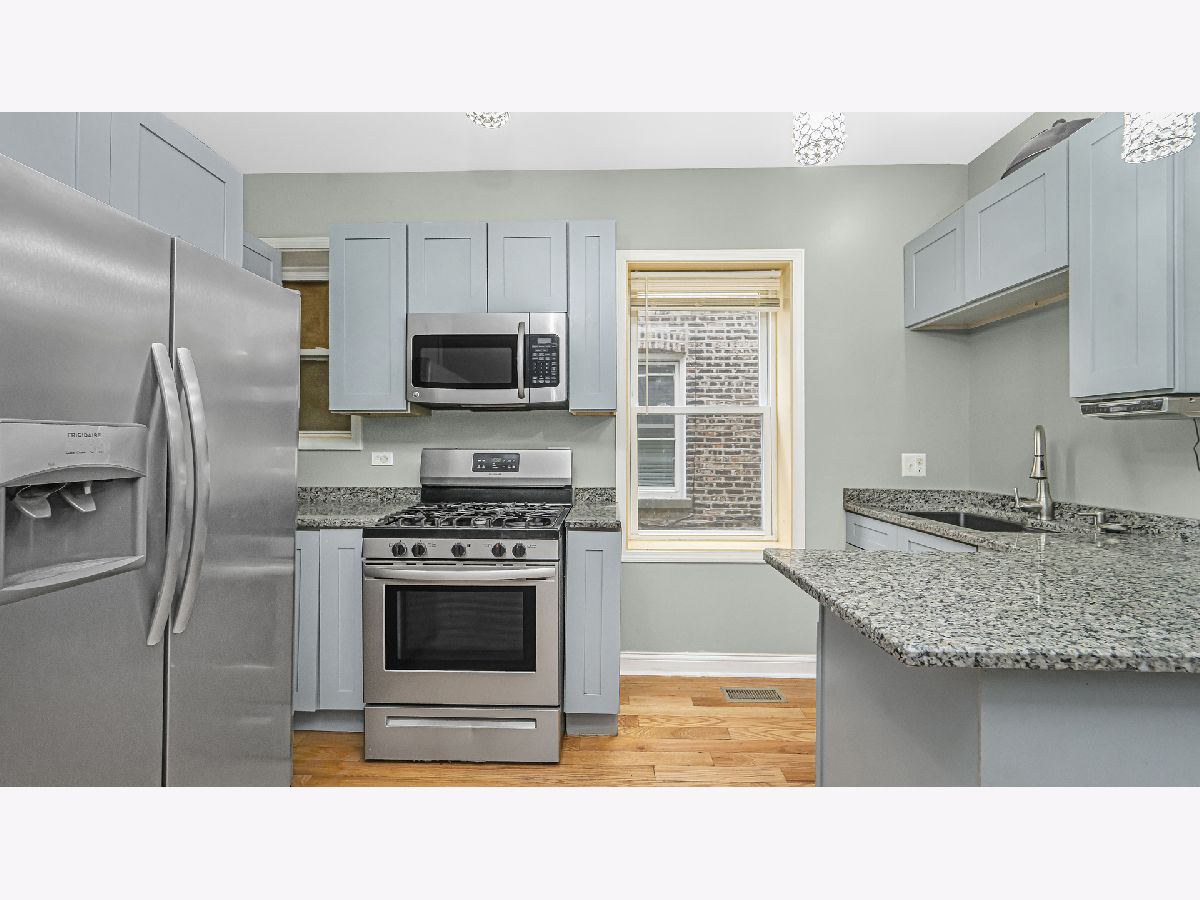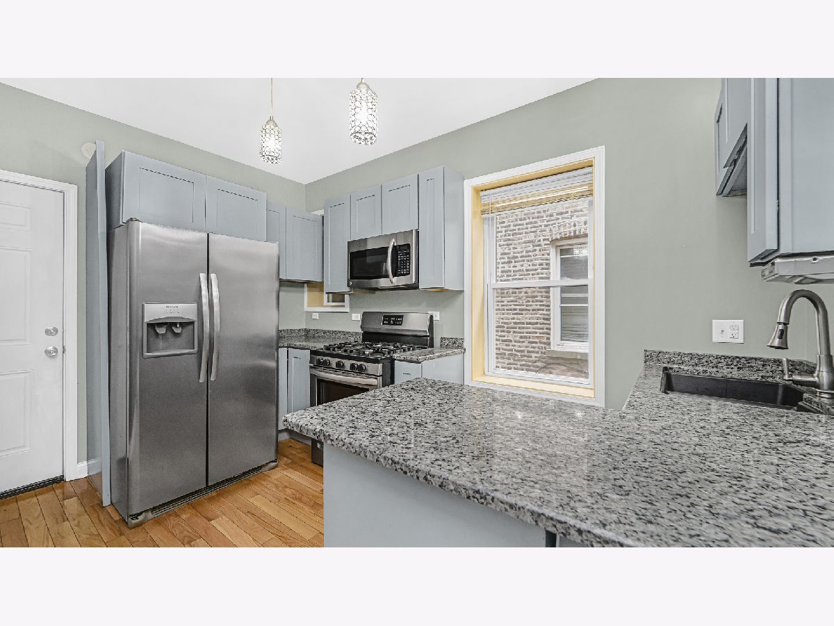 Traditional Chicago Brick 2-flat with 2bd/1bath units plus an additional den space off the second bedrooms. Each unit offers high ceilings, hardwood floors, and spacious living and bedrooms. Updated kitchen with SS appliances and granite countertops. Great sized backyard with 2 car garage. Excellent opportunity for investors and owner occupants.