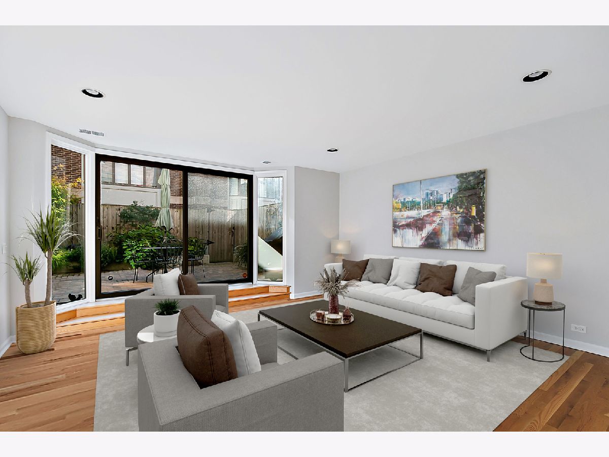 A chance to live in the heart of Old Town, across from Lincoln Park in the desirable Eugenie Terrace townhomes! Located in a serene and secure gated community, the home lives like a rowhouse with a fully landscaped patio garden. The entry foyer flows through French doors into an inviting family room, full bath and wet bar with a wall of sliding glass doors out to the lusciously landscaped patio, complete with an irrigation system, privacy fence and even a serenity fountain. The 2nd level of the home features an open kitchen, with a large island, quartz and granite counters, tile backsplash, new appliances, tons of storage. A full laundry is included and large breakfast area. The living room is flooded with south light from a wall of windows, can accommodate a dining area and overlooks the landscaped patio. A dramatic powder room on this level is finished with designer touches of granite and blue glass. The upper level includes three spacious family bedrooms with 2 skylights. 3rd bedroom also serves as a perfect at-home office. All the closets throughout the home include custom built-ins. High-end mechanicals installed in 2022. (See Features under 'Additional Information'). A heated, attached garage provides additional storage. This is a wonderful, friendly complex, well run and professionally managed. Residents have use of the outdoor pool in Phase I. Enjoy living across from the park with the Green City Farmers Market, Lincoln Park Zoo and great neighborhood restaurants...and surrounded by the charm of Old Town. (Assessment $705.74;Cable/Internet $90.93; Reserve Contribution $590.45. Capital improvements are funded from Reserve Contributions as opposed to the Association having to special assess. Check with agent for a list of past and planned projects.)