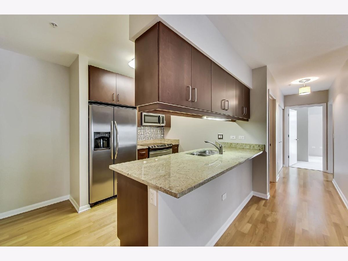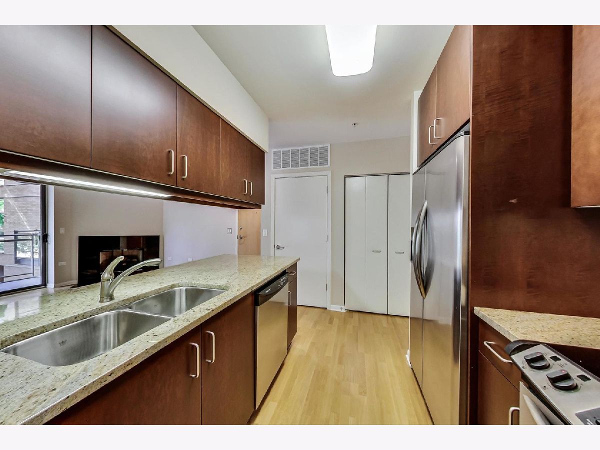 Peaceful views from the west-facing balcony of this spotless, 2 bedroom, 2 bath, corner-unit condo. This unit features hardwood floors, gas fireplace with granite surround, balcony, side-by-side, full-size washer/dryer, and attached heated garage parking. The entire condo has been freshly painted in a neutral tone. The kitchen has granite counter-tops and under-mount lighting. The primary bedroom suite has marble counter-tops in the full bathroom and a double sink. The spacious guest bathroom has granite counter-tops. Both bathrooms have back-saver height counter-tops and freshly cleaned carpet. The balcony is spacious and can accommodate a grill, small table and chairs. Heat and water are included in the assessment. Take the elevator down to the heated garage. Access the work-out room through the heated garage. Storage is on the same floor. Walk to both Metra and CTA EL trains, restaurants, shops, NWU, and all downtown Evanston has to offer! Owner may rent after one year. Pets welcome!