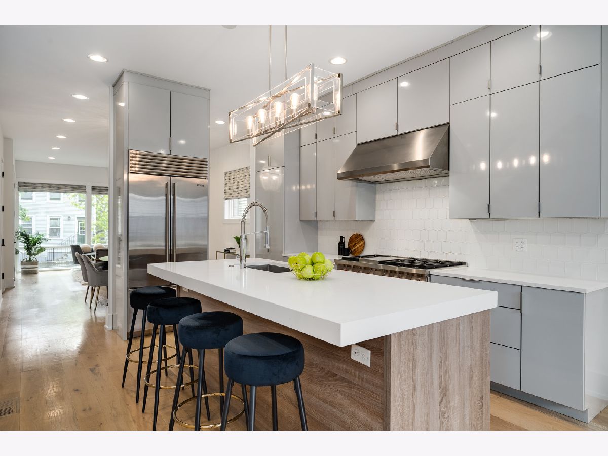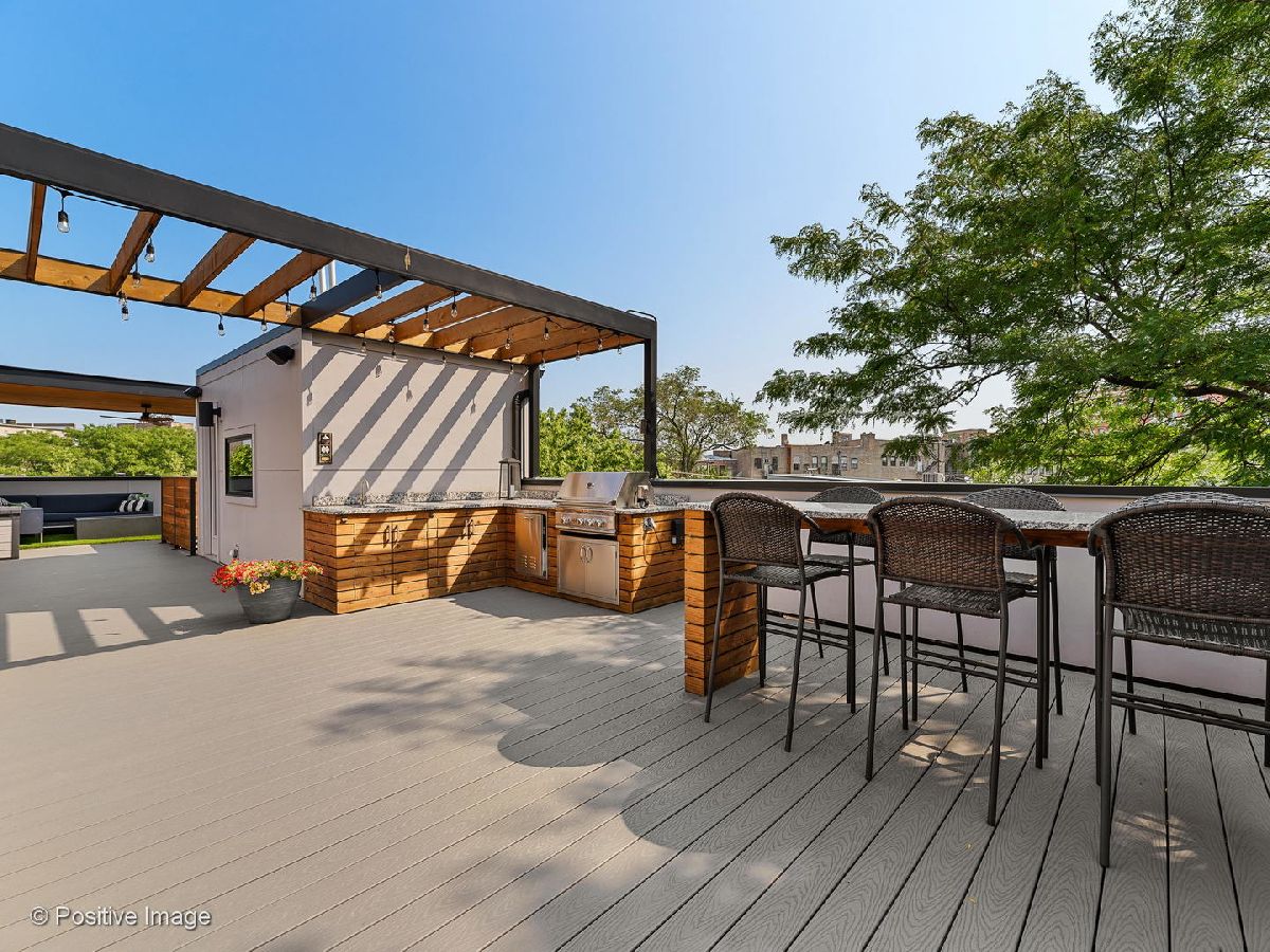 A true urban oasis, this stunning single-family home boasts like-new finishes nestled on a serene, tree-lined block in the beloved Wicker Park neighborhood. Enter into the sun-drenched living level which features a spacious living and dining room area with gorgeous floor-to-ceiling Pella windows. The chef's kitchen is the heart of the home, an entertainer's dream, equipped with a Wolf Sub-Zero appliance package and custom cabinetry and large eat-in quartz island. The statement kitchen opens to the cozy family room space complete with fireplace and doors out to the first of the home's incredible outdoor spaces! The upstairs bedroom level boasts a luxurious primary suite complete with a custom walk-in closet and dazzling bathroom featuring a large steam shower with bench and gorgeous Ann Sacks marble tile. Two additional bedrooms connected by a chic jack-and-jill bathroom. Additional, side-by-side laundry located on this level! The lower-level features great ceiling height, a spacious family/recreation room with a wet bar, amazing storage and two additional bedrooms perfect for guest rooms, home offices, exercise rooms and more! What is certain to make this home stand out are the incredible outdoor spaces including a terrace off the living room, garage roof deck which is connected to the terrace for ease and the truly amazing top floor roof deck with sweeping views of the Chicago skyline. Custom build out by Urban Rooftops with new Trex decking, planter boxes and lighting. The unbelievable rooftop is the perfect place for outdoor relaxation and entertaining with two pergolas, gas grill, wet bar, bar table and gas fire pit. Two car garage complete this incredible home.