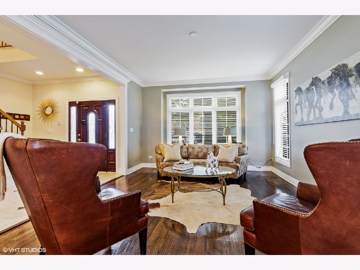 Stunning newer construction brick home just a short walk to town, the Metra train station, shops, and schools. Beautiful 2-story entry foyer with dark hardwood floors and Schonbeck crystal chandelier. The living room with dark hardwood floors, crown moldings, and neutral paint flows into the formal dining room with matching decor and a Schonbeck chandelier. Amazing hub of the home begins with a huge kitchen with white cabinets, granite counter tops, and high-end appliances. Center prep island, eating area with additional cabinetry, and a huge peninsula breakfast bar with room for 6 stools is wide open to the family room which features a floor to ceiling stone fireplace and lots of windows and doors out to the paver patio overlooking the deep backyard. 4 bedrooms and 3 full bathrooms upstairs including a master suite with large walk-in closet, tray ceiling, and an en-suite with double sinks, whirlpool tub, and separate shower. Large finished basement with another bedroom and bathroom.