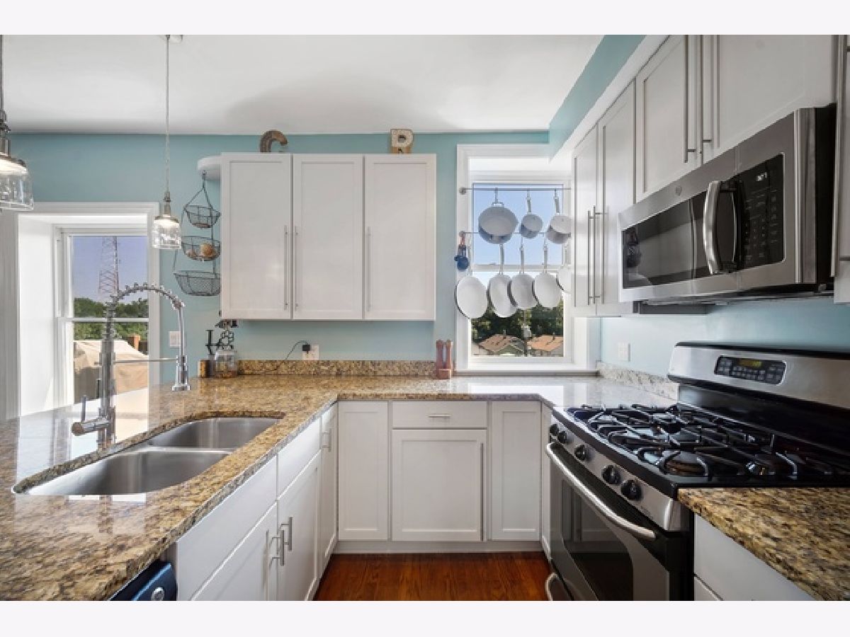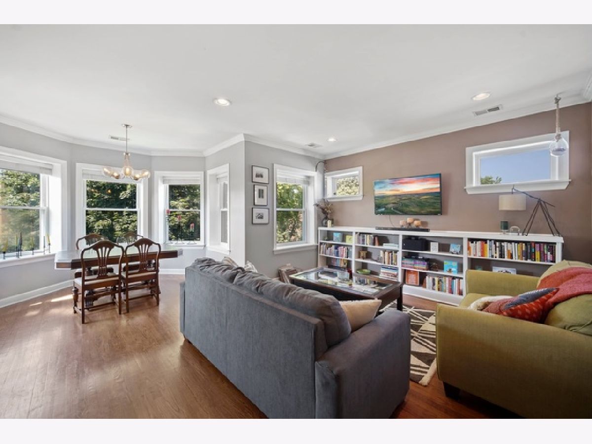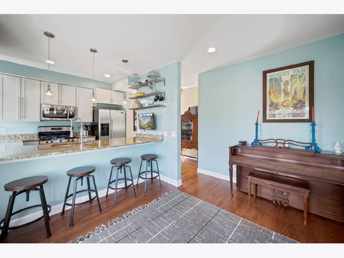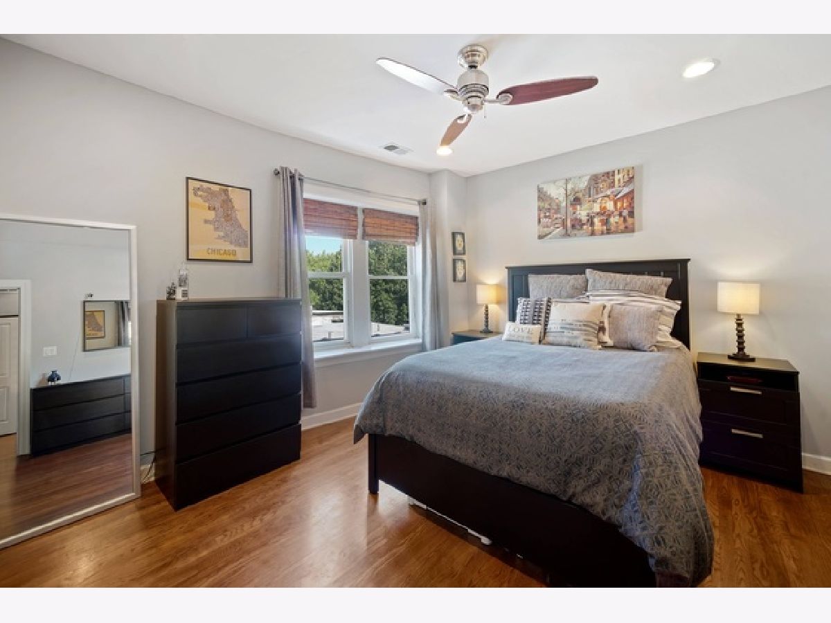 There are tons of updates in this beautiful top floor unit located in a boutique building. Enjoy the sun on the amazing deck off of the family room with idyllic views. Enjoy a light filled chef's kitchen with stainless steel applinaces, custom cabinetry, granite counters, and breakfast bar. Master suite with tons of closet space and on suite bath. The home features hardwood floors throughout, tall ceilings, in-unit washer/dryer, 1 parking space included in price and additional storage. All this plus impeccable wide open vistas from your own huge deck showing mature trees, city views, gorgeous sunrises and sunsets. Well maintained building with easy walk to Metra Station, CTA, parks & Clark Street, Devon Avenue & Andersonville restaurants, shopping & nightlife!