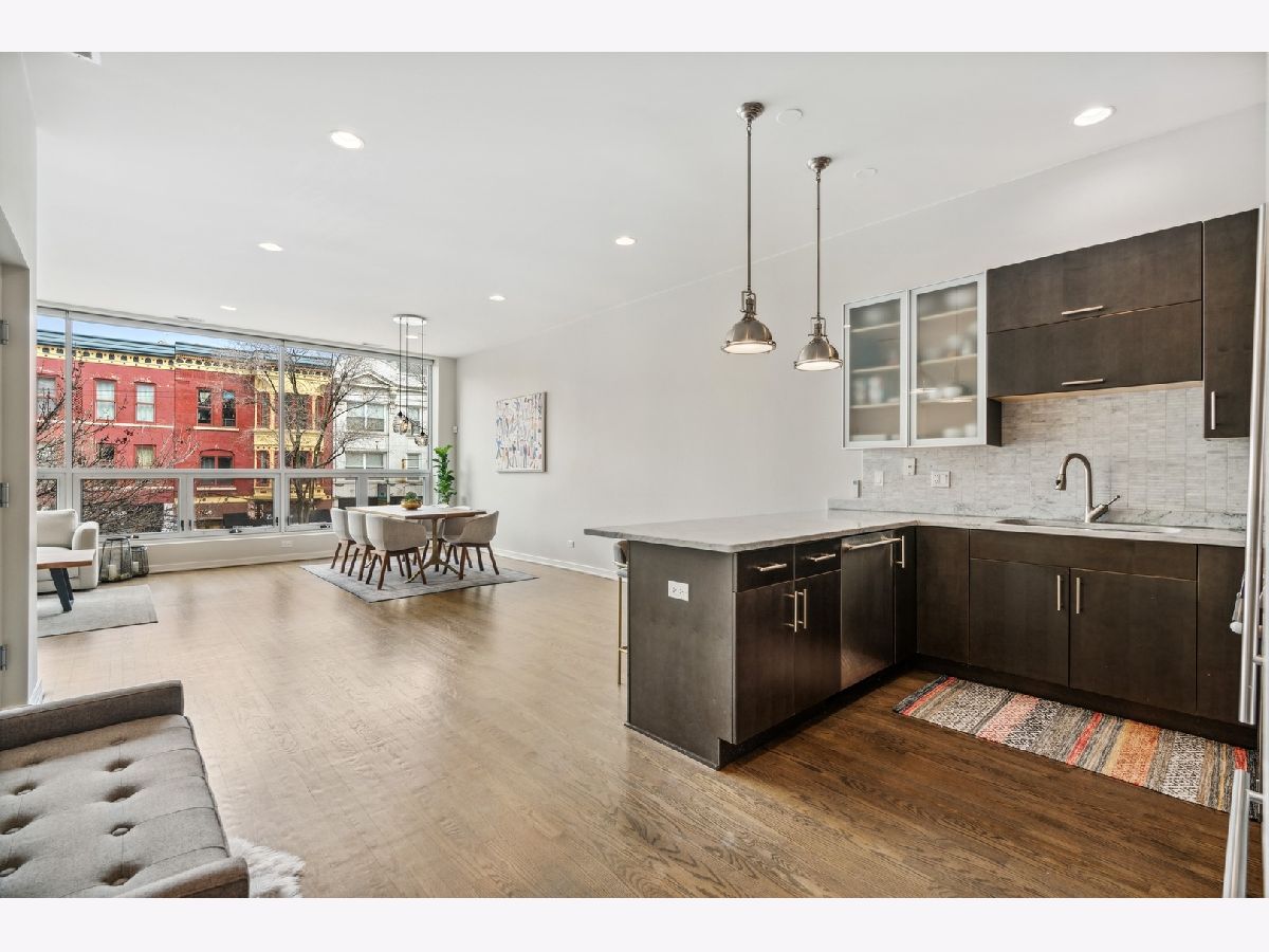 WALK TO EVERYTHING ON DIVISION FROM THIS SUNNY & SPACIOUS EXTRA WIDE 2 BED 2 BATH CONDO W/ OVER 20 FEET OF FLOOR TO CEILING WINDOWS! PLENTY OF SPACE WITH THIS GREAT OPEN LAYOUT FEATURING LARGE LIVING ROOM / DINING ROOM COMBO OPEN TO CHEF'S KITCHEN. KITCHEN FEATURES JENN-AIR APPLIANCES, GRANITE COUNTERTOPS, CUSTOM CABINETS & BACKSPLASH! SPACIOUS LAUNDRY ROOM, UPDATED GUEST BATH & NEW HVAC. GREAT PRIMARY SUITE W/ PROFESIONALLY ORGANIZED WALK IN AND REACH IN CLOSETS, LARGE PRIMARY BATH W/ DBL VANITY & SEPARATE TUB AND GREAT SUNLIGHT. SECOND BEDROOM W/ CUSTOM CLOSETS & LEADS OUT TO NEWLY REPLACED TREX PRIVATE DECK. BOUTIQUE STYLE BUILDING W/ ONLY TWO UNITS ALSO HAS EXTERIOR COVERED PARKING SPACE & BONUS STORAGE UNIT. RECENTLY REFINISHED HARDWOOD FLOORS & HIGH CEILINGS THROUGHOUT, RESTORATION HARDWARE / ROOM & BOARD LIGHT FIXTURES AS WELL AS MOTORIZED BLINDS ON THE FRONT WINDOWS COMPLETE THIS UNIT! BOTH UNIT AND BUILDING ARE METICULOUSLY MAINTAINED. STEPS TO RESTAURANTS, BARS, BUS AND EL, SHOPPING, EXPRESSWAY AND MORE!