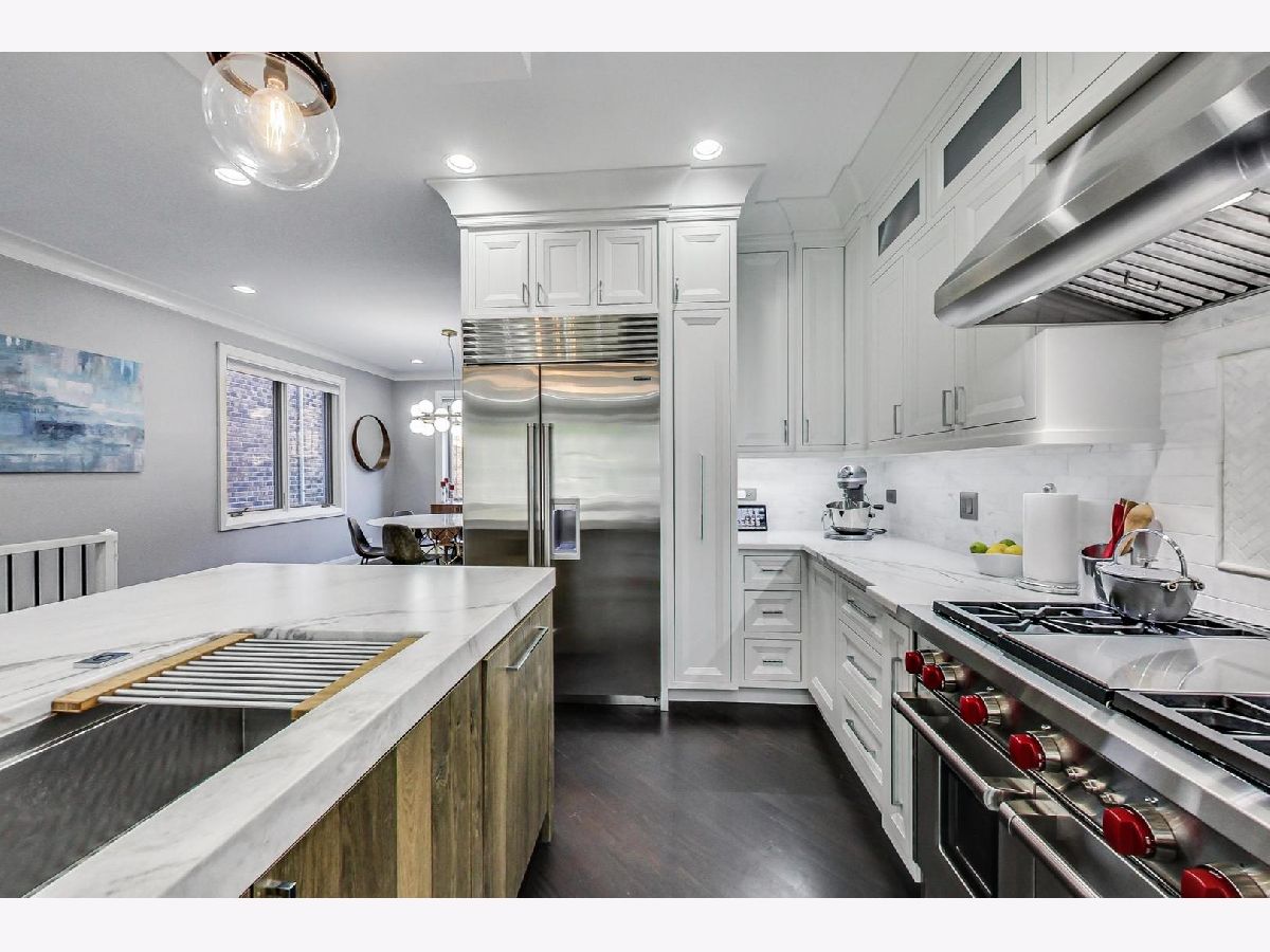 Stunning 4 bed + 3.1 bath single family home on one of the most desirable streets in the heart of Bucktown. Completely renovated and upgraded chef's kitchen with no expenses spared - top of the line Sub-Zero & Wolf appliances, floor to ceiling custom in-set cabinetry, marble countertops, a massive island with seating and a 4' Galley sink. Bring your wine collection - Custom Sub-Zero Wine storage and an additional beverage center round out this entertainers space. Brazilian Cherry wood floors through the entire home. Huge master suite with dual vanity, massive jetted tub and a rain shower with full body jets. Spacious walk-out lower level with 12' ceilings features two additional bedrooms and bathrooms - a large bedroom with ample storage and on-suite bath (with jetted tub). Additional bedroom (currently a fabulous home gym with floor to ceiling mirrors and rubber flooring) leads out to a decorative stone patio. Get ready to enjoy two amazing outdoor spaces - a full garage deck with pergola and rooftop deck with built in seating, concrete tables and stunning city views, day or night. Easy access to 90/94 and walking distance to both the Blue Line and Metra rail stop (Clybourn). Enjoy all the shops and restaurants along North, Damen and Milwaukee or discover new neighborhood gems. Broker owned