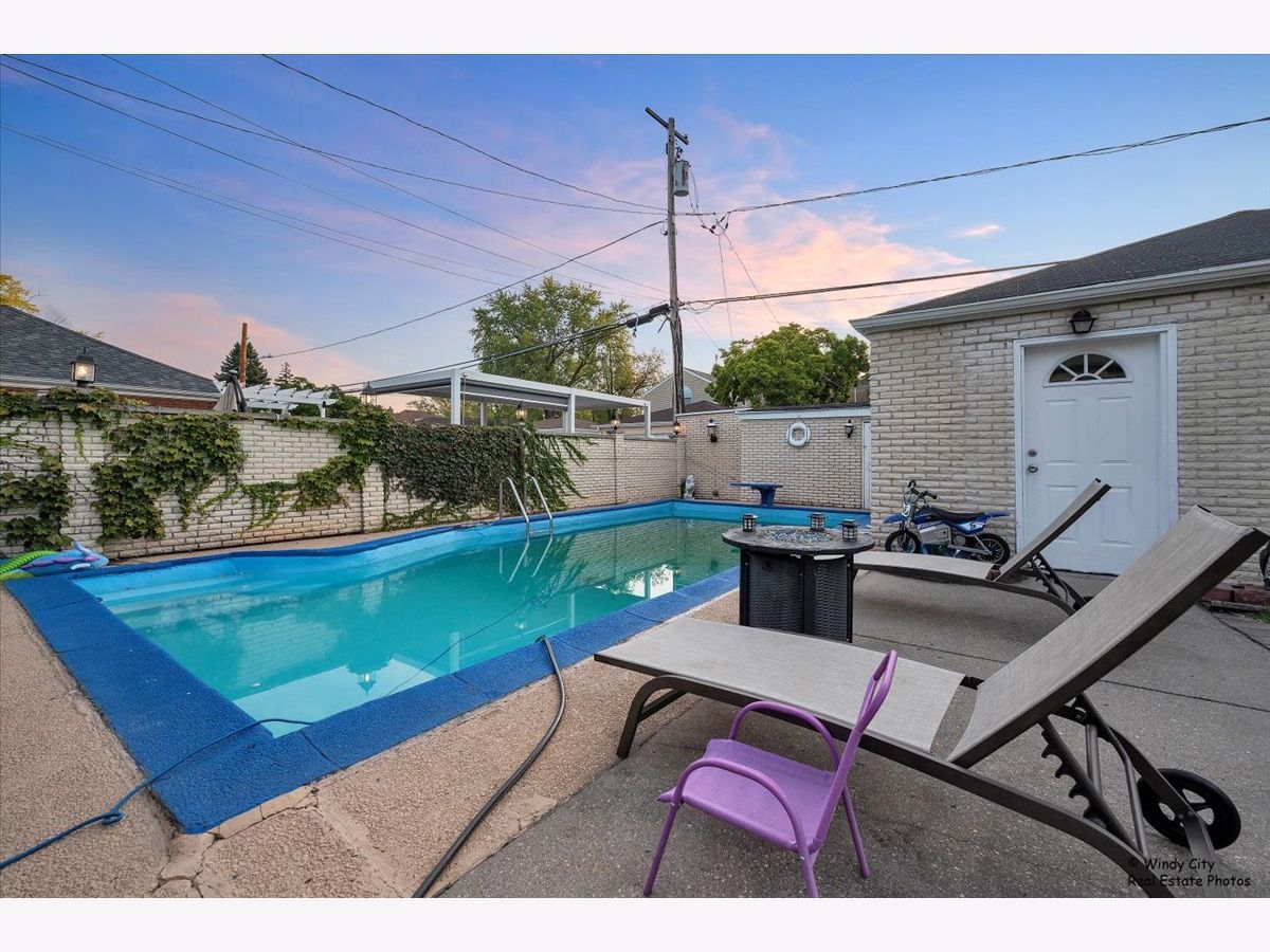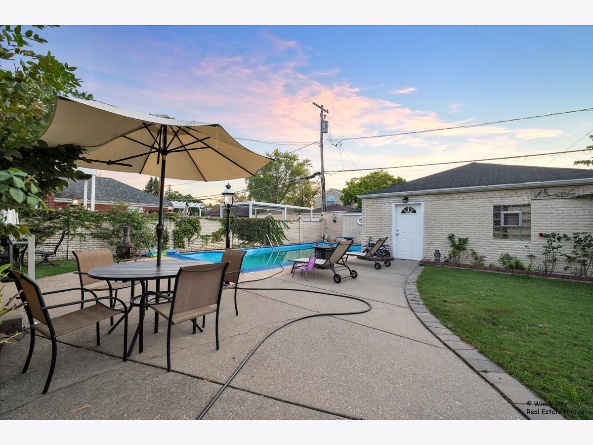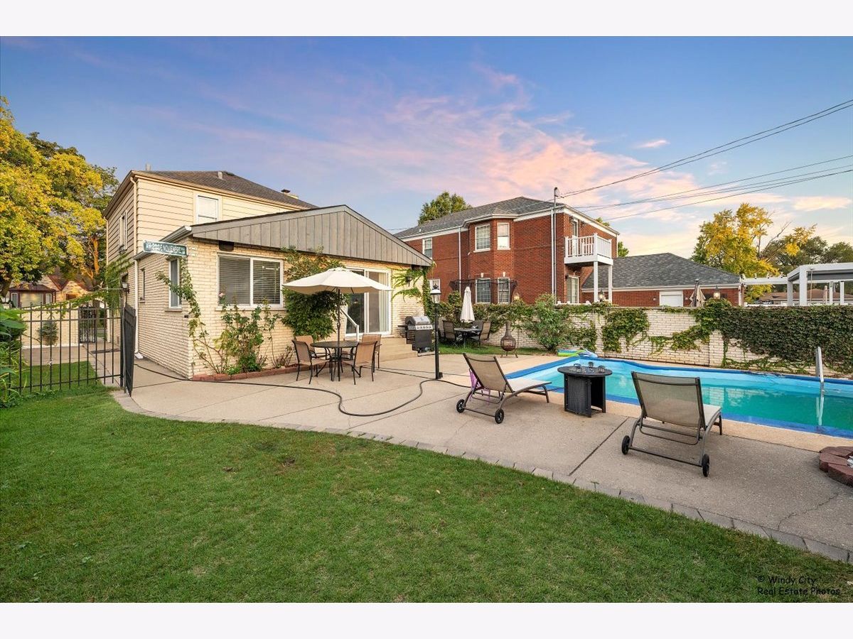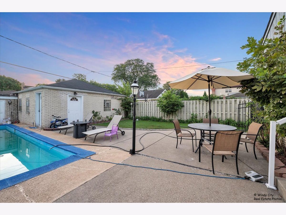 Welcome to this charming home in beautiful Elmwood Park, just two blocks from fantastic restaurants on North Avenue. This house has a lot to offer. It features Italian-inspired white brick side patios and an in-ground pool and has great potential for someone to add personal touches. The spacious kitchen has granite countertops, and the living room, dining room, bedrooms, and staircase all have hardwood floors. The finished basement includes a rec room, office, full bathroom, and laundry area. The house has updated circuit breakers, a newer central air system, and a furnace. What makes this home truly an entertainer's dream is the inground swimming pool, oversized yard with a beautiful side patio, your own side Garden, and you're Two and a Half Car brick garage. This home can truly be amazing with some updates or enjoy it in its current glory.