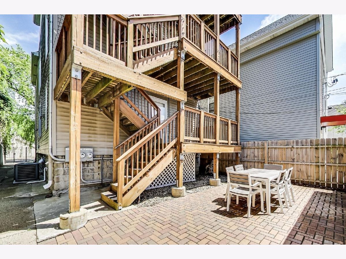With lots of free flowing space immersed in light coming in from all angles, this 4 bedroom, 3 bath duplex up condo is a great place to stretch out or grow into. With views overlooking the popular 606 trail from 2 private decks and a trail access point a 2 minute walk away, the location can't be beaten. The property, located in the middle of Francisco Avenue, provides privacy and quiet solitude making for relaxing evenings that almost make you forget that you live in the middle of a popular Chicago neighborhood with top notch restaurants, fun breweries, parks and playgrounds less than a 10 minute walk away. The huge main level features an open floorplan and hardwood floors making it perfect for dining, entertaining and relaxing. With this much open space, you can figure out how to configure the space to best meet the needs of your family . The picture window up front provides views of the 606 and a large, mature tree that provides additional privacy. The kitchen features granite countertops, stainless steel appliances and plenty of cabinet space that will make cooking delightful. Rounding out the main level is a bedroom (or office) and a full bathroom. Upstairs features 3 full bedrooms with a master in suite bathroom and an additional full bathroom. With generous space in each bedroom, hardwood floors and plenty of closet space, this is ready made to welcome your family. The upstairs also features a long, extended hallway that includes a separate laundry room with side by side washer and dryer and large storage closet that leads to the back deck. In addition to the ample amount of indoor space, this unit features 2 private decks. The main floor deck is attached to the back entrance off the kitchen making for convenient al-fresco dining. The top deck offers unencumbered 360 degree views including extended views of the 606 and ample space for sunrise yoga or private conversations under the stars. The shared brick patio and paved side yard, plus a cul de sac at the alleys end provide more outdoor space than most suburban homes offer whether you want to use the space for additional outdoor dining, throwing bags with friends, playing catch or gardening. In addition to one space in an oversized garage with plenty of storage, the brand new heating and air conditioning unit (installed in 2020) will keep you comfortable in your new home.
