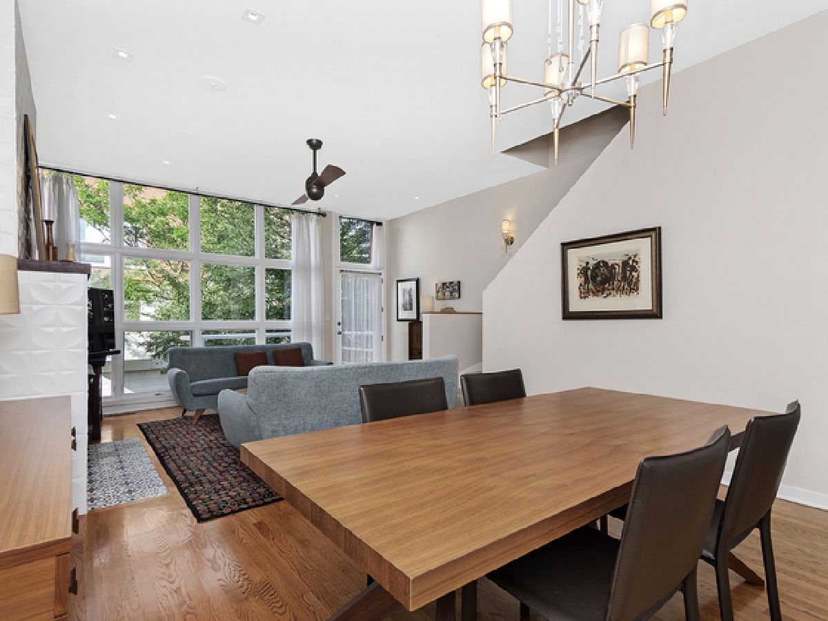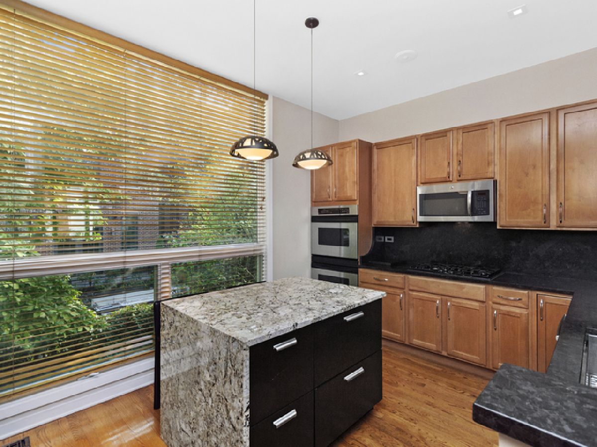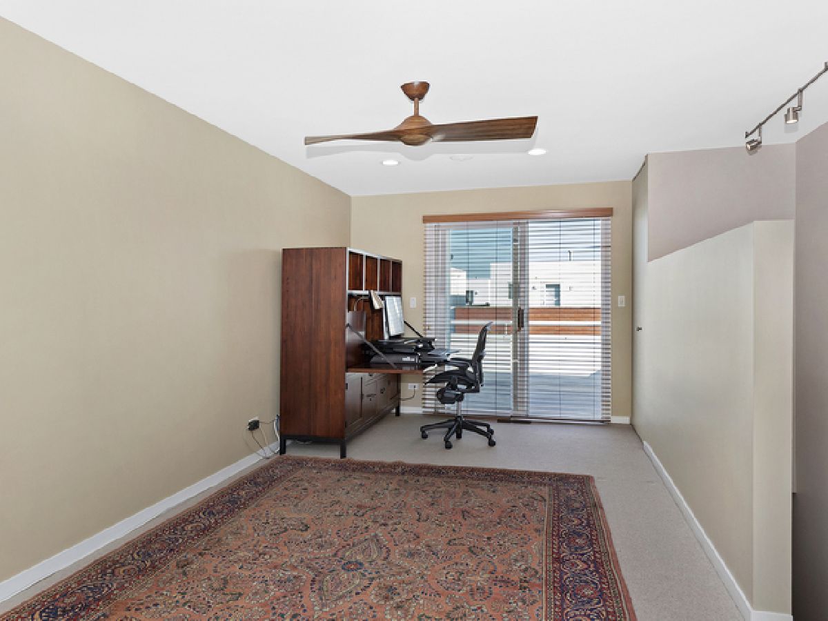 This well appointed Wellington Park townhome is a short walk to BURLEY ELEMENTARY SCHOOL. Enjoy 4 levels of expansive living with bonus roof deck, high end decorative light fixtures, and parking for 2 cars. Entry level features Brazilian wood floors, beautiful chandelier, family room with custom built-in cabinets, wet bar, speaker system and wall mounted TV. Sliding doors lead to a brick paved patio perfect for entertaining. Full bath recently gut rehabbed with walk in shower and heated floors. Second floor is open concept with large living/dining room, kitchen open to dining area, hardwood floors, front deck for grilling. Kitchen has 42" cabinets, center island with waterfall edged granite, pantry storage, washer/dryer. Fireplace has gas logs, new surround tile and hearth. Third level features large master bedroom, full wall of closets, attached bath with double sink granite top vanity, deep whirlpool soaking tub with body spray. Second bedroom has its own adjacent granite bath. The top floor features a large open 19 X 10 room converted to a large home office but could be configured to bedroom 3 and a home office. Recessed LED lighting and decorator propellor ceiling fan. The roof deck is great for large gatherings with water spigot installed for summer gardening. Dual zone HVAC system. Close to Chi Che Park, Jewel, Whole Foods, Target and the EL.