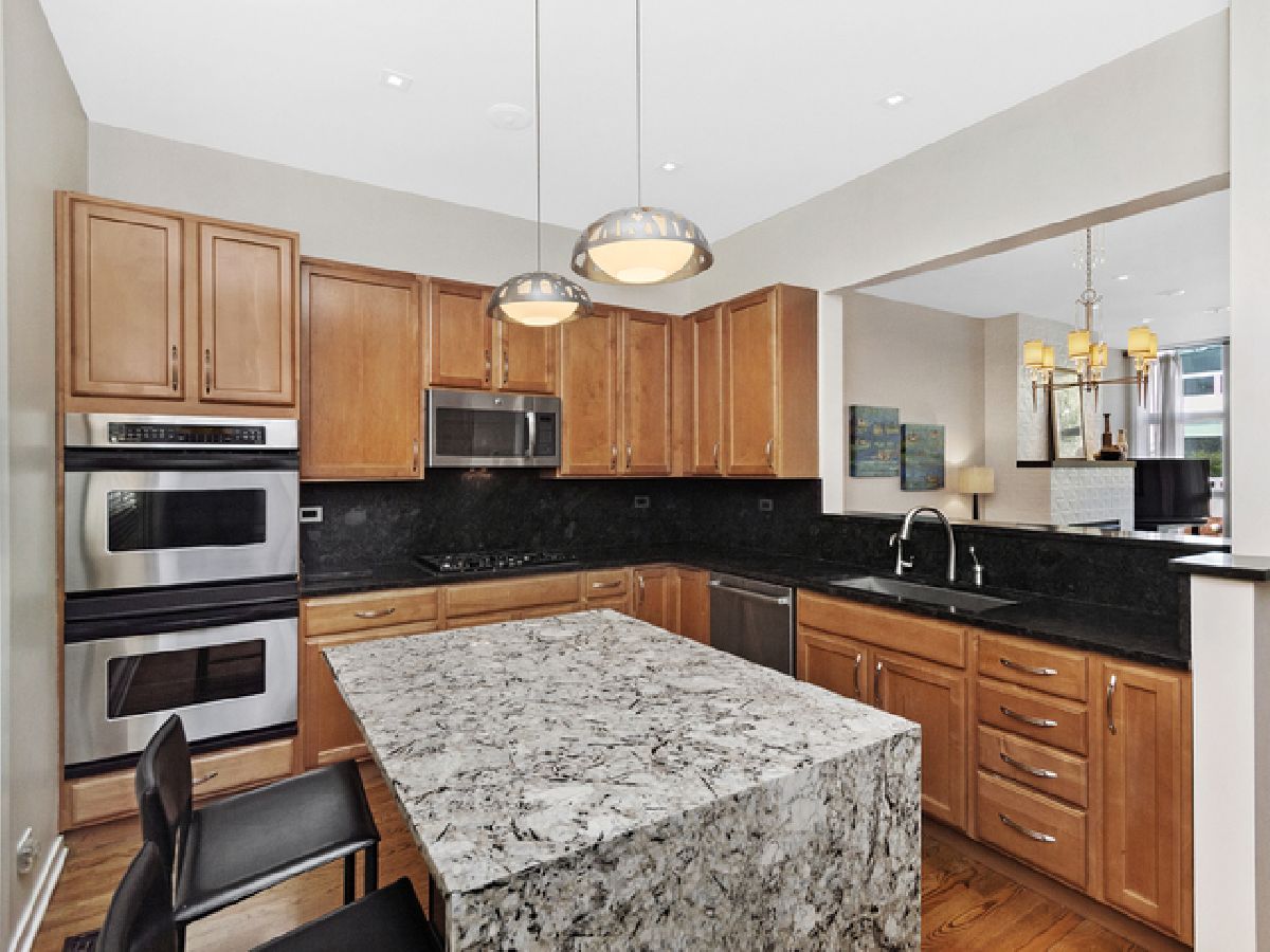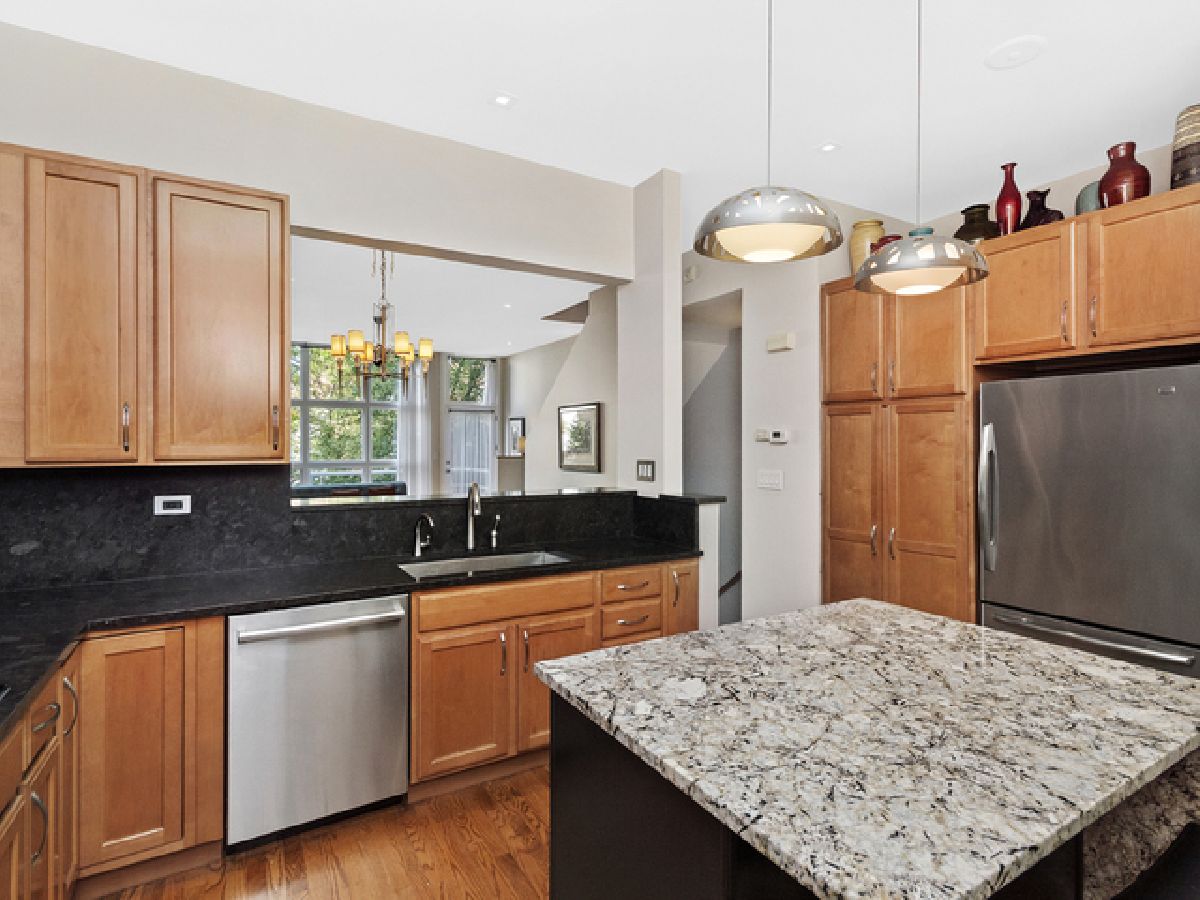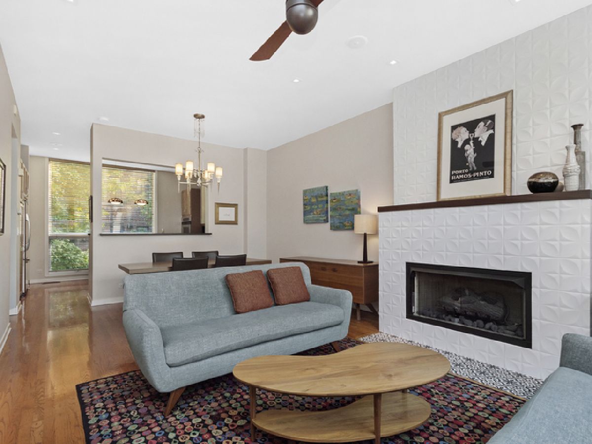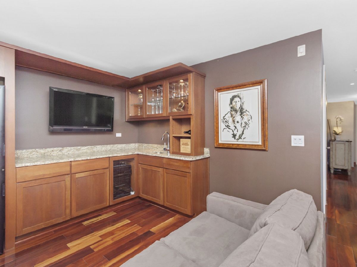 This well appointed Wellington Park townhome is a short walk to BURLEY ELEMENTARY SCHOOL. Enjoy 4 levels of expansive living with bonus roof deck, high end decorative light fixtures, and parking for 2 cars. Entry level features Brazilian wood floors, beautiful chandelier, family room with custom built-in cabinets, wet bar, speaker system and wall mounted TV. Sliding doors lead to a brick paved patio perfect for entertaining. Full bath recently gut rehabbed with walk in shower and heated floors. Second floor is open concept with large living/dining room, kitchen open to dining area, hardwood floors, front deck for grilling. Kitchen has 42" cabinets, center island with waterfall edged granite, pantry storage, washer/dryer. Fireplace has gas logs, new surround tile and hearth. Third level features large master bedroom, full wall of closets, attached bath with double sink granite top vanity, deep whirlpool soaking tub with body spray. Second bedroom has its own adjacent granite bath. The top floor features a large open 19 X 10 room converted to a large home office but could be configured to bedroom 3 and a home office. Recessed LED lighting and decorator propellor ceiling fan. The roof deck is great for large gatherings with water spigot installed for summer gardening. Dual zone HVAC system. Close to Chi Che Park, Jewel, Whole Foods, Target and the EL.