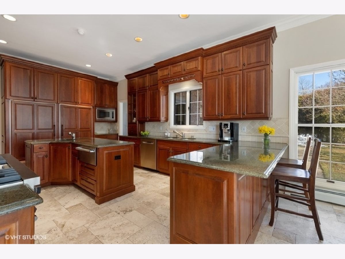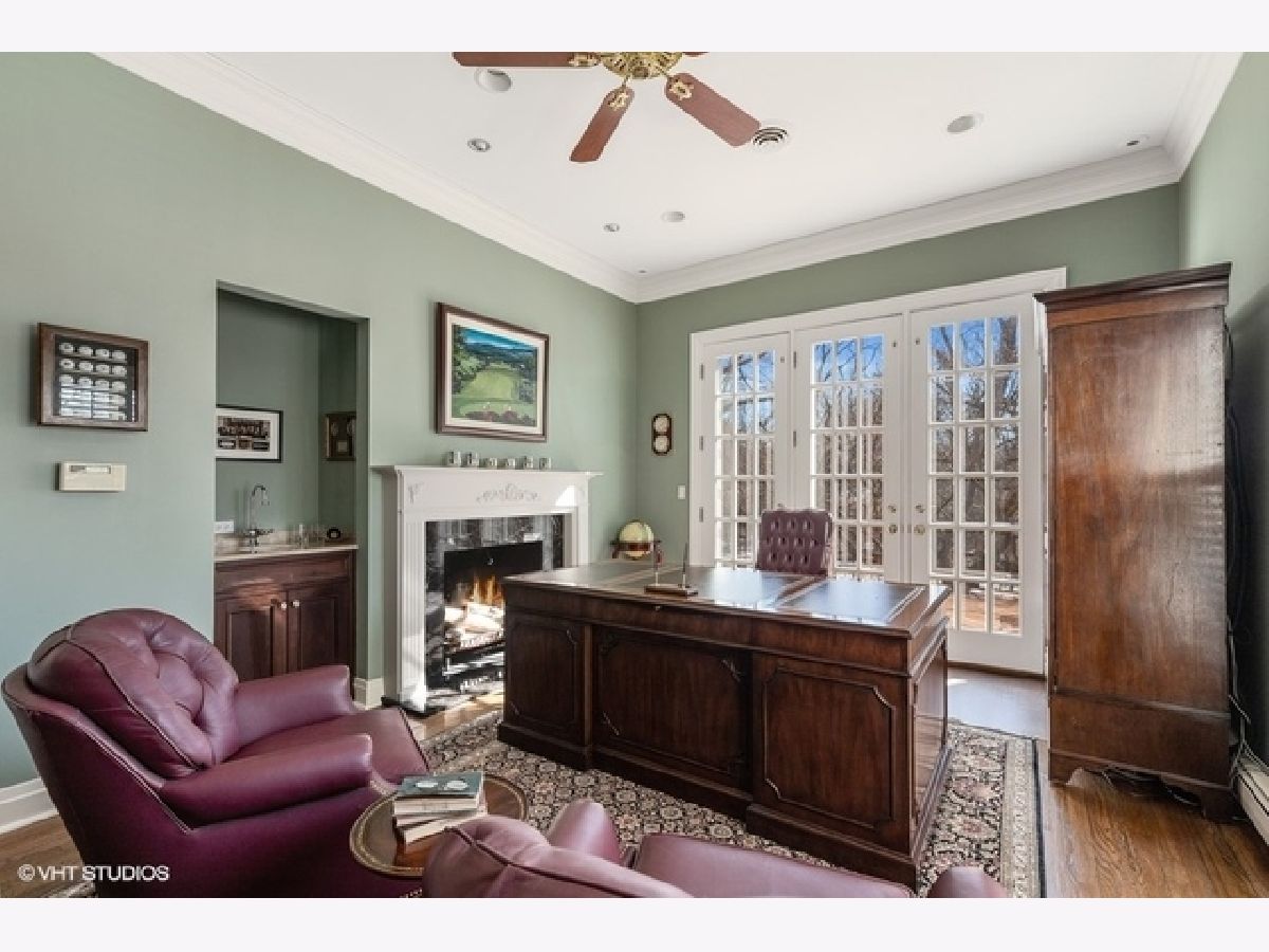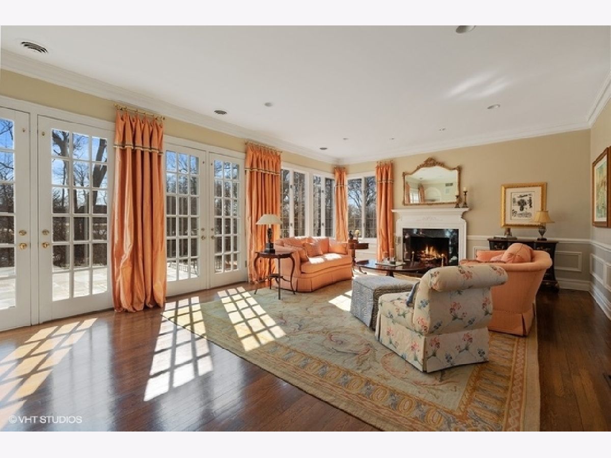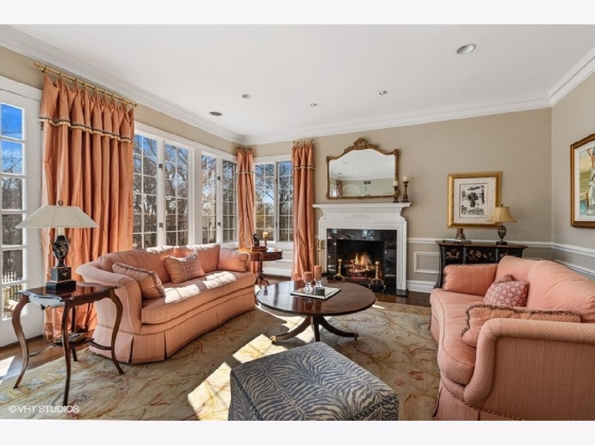 This elegant Colonial home sits on a beautiful 1.4-acre lot in one of Lake Forest's premier in-town locations. Built in 1980 and extensively updated by the current owners the home features a floor plan that flows seamlessly between the formal living spaces, the casual living and the outdoor entertaining spaces. Highlights include herringbone floor in entry hallway, volume ceilings, beautifully appointed formal living room with fireplace, dining room with decorative fireplace, plus first floor study with fireplace, wet bar, lovely bookcases and millwork. The stunning custom kitchen features cherry cabinets, limestone floors, Sub Zero, Viking 6 burner range, functional island, and large eating area adjacent to 3-season sunroom. The inviting family room has fireplace, wet bar, built ins and French doors to one of the bluestone patios. The main floor also includes a lovely guest suite, a nanny suite, and mudroom/laundry room and 2 staircases .The master suite has 2 separate full bathrooms and closet areas, fireplace, beautiful decorating and access to nursery or sitting room and cedar closet. The second floor also features 4 bedrooms, 2 full baths, and an expansive bonus room. The walk out basement has a recreation room, gathering room with fireplace, exercise room, full bath, large storage room, and 2,000 bottle wine cellar. Exterior highlights are a 4-car heated garage, additional parking, an exceptional tennis court, bluestone patios, and meticulous landscaping.