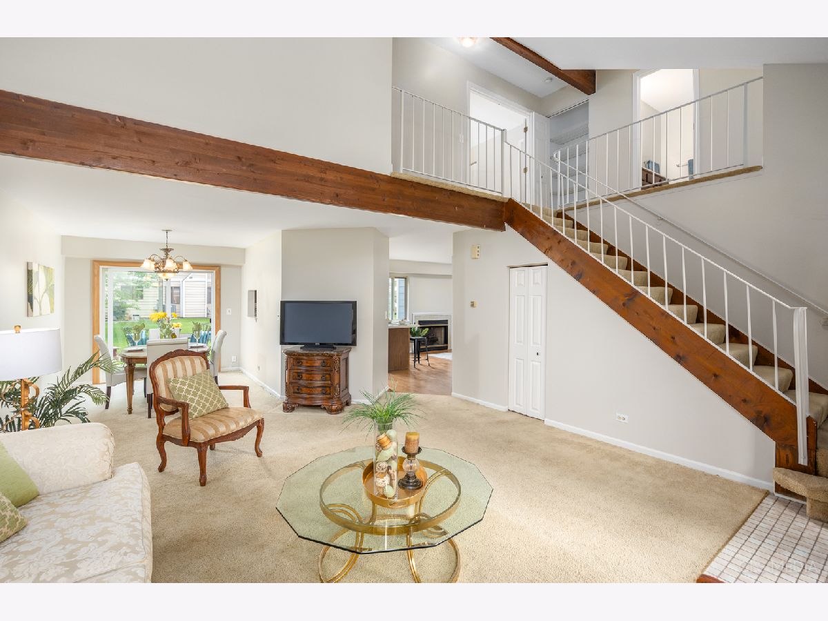 Rarely available 2 story, 3 bedroom townhome with 2.1 baths. Freshly painted throughout in Edgecomb Gray with white woodwork. Soaring ceiling in the living room, light and bright dining room with newer sliding door to the patio. Kitchen features breakfast bar and versatile family room with fireplace or it could be used as an extra eating area. Convenient 1st floor laundry room leads to the garage. The 2nd floor boasts 3 spacious bedrooms and 2 full baths. Master suite has double doors, a huge walk-in closet and full bath with shower. Two additional bedrooms and a guest bath, great closet space and extra deep storage closet under the stairs. Enjoy your summer nights out on the patio. Prime interior location close Songbird Slough Park and walking paths, Itasca dog park and softball complex. Close to 390, shopping and restaurants. See it today and make it your own.